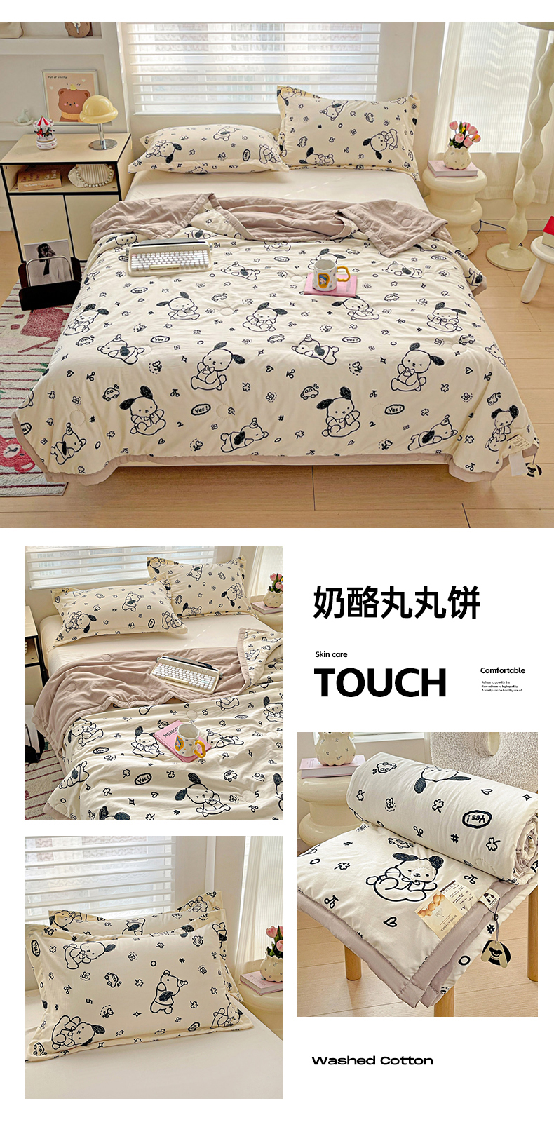富艺隆 2025新款水洗棉印花夏被 奶酪丸丸饼