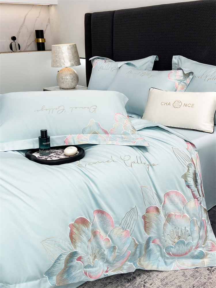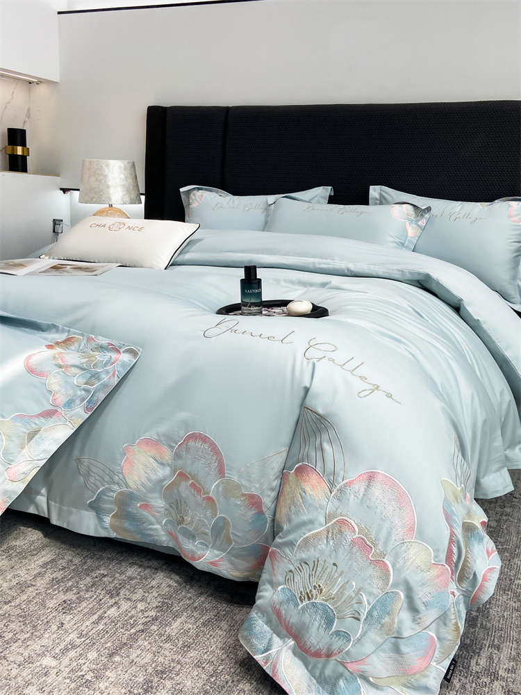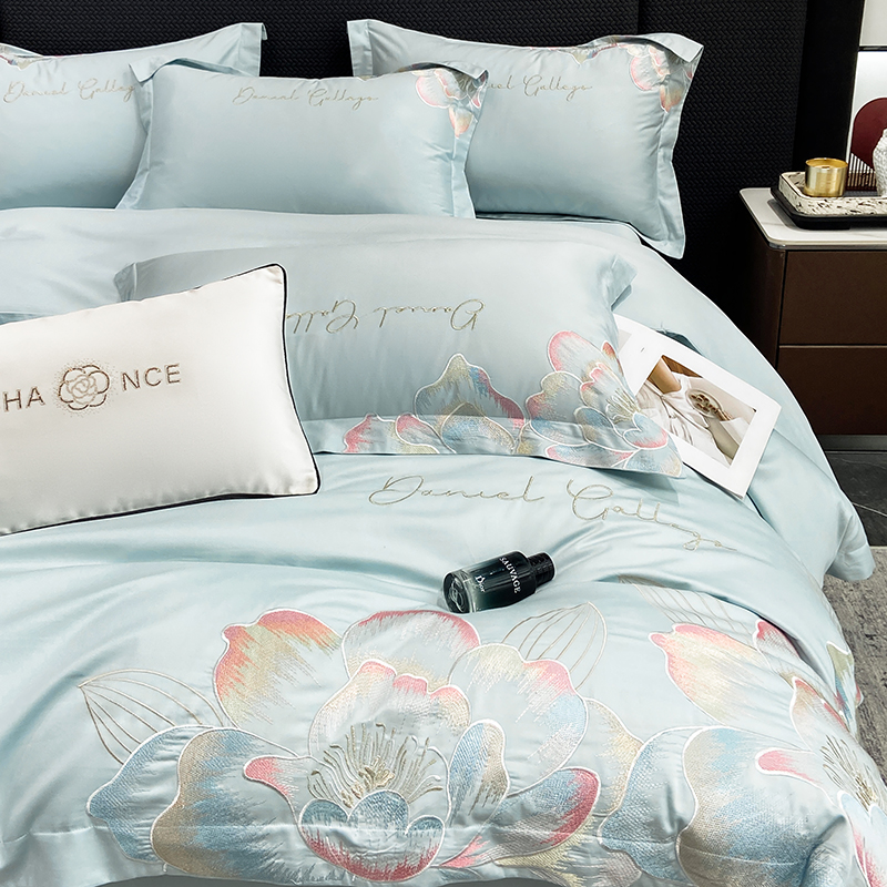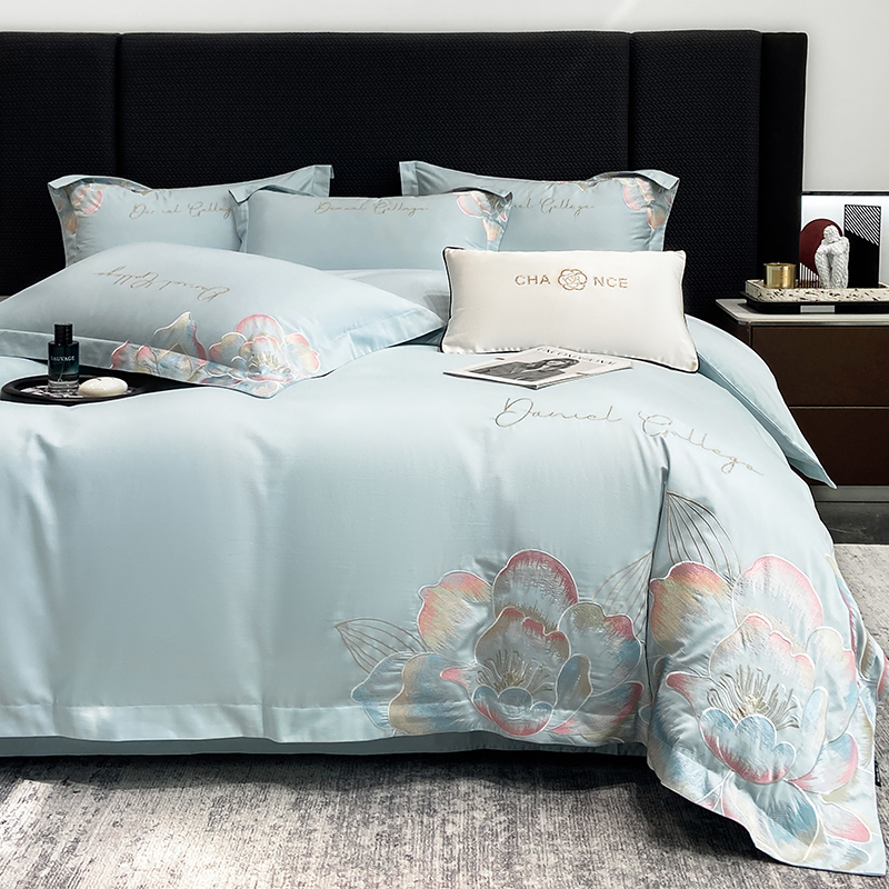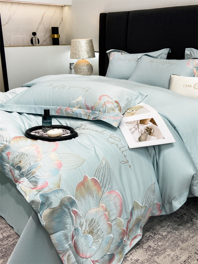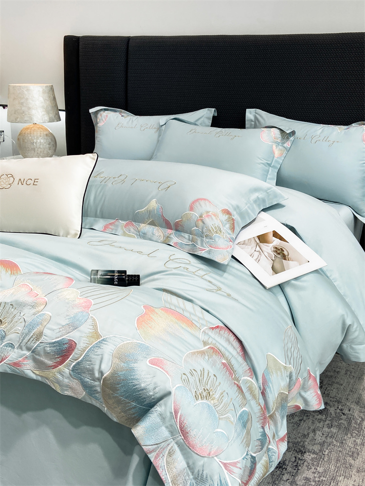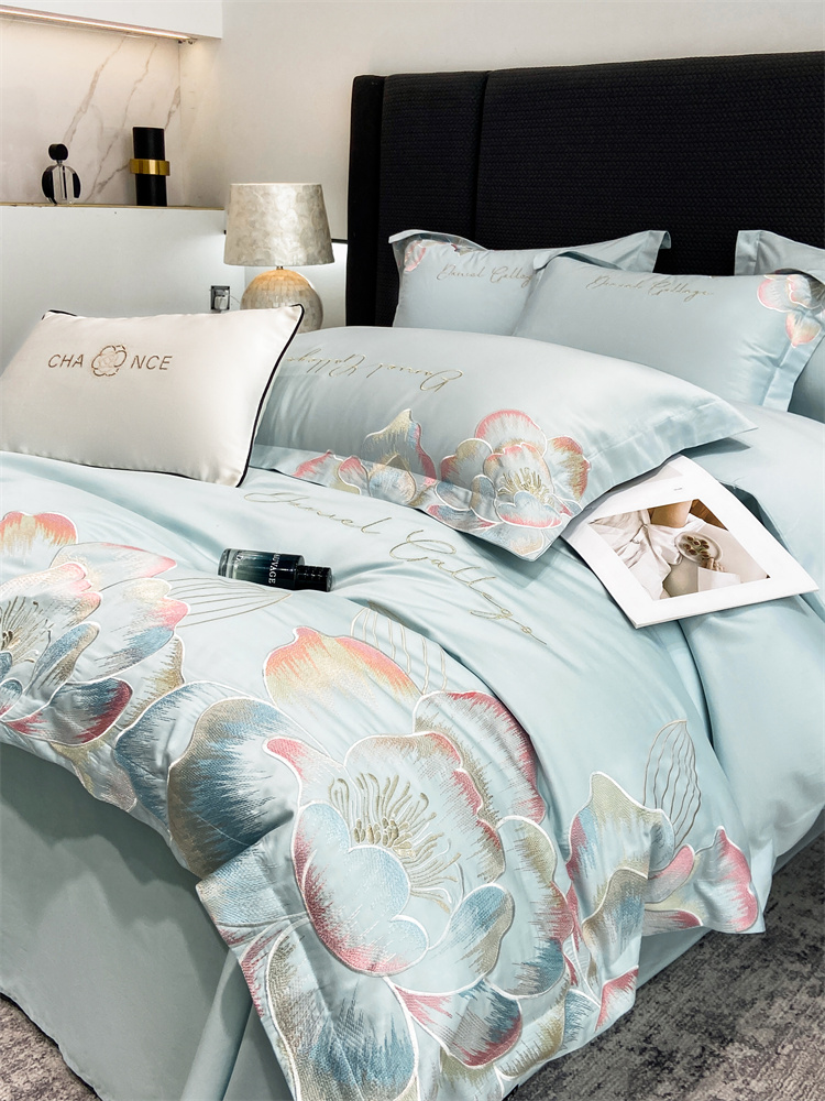当前位置: 91家纺网 > 商品网购 > 床品套件 > 四件套 > 全棉普通四件套 > 家居1号家纺 2025新款花韵长绒棉四件套 花韵-冰海蓝