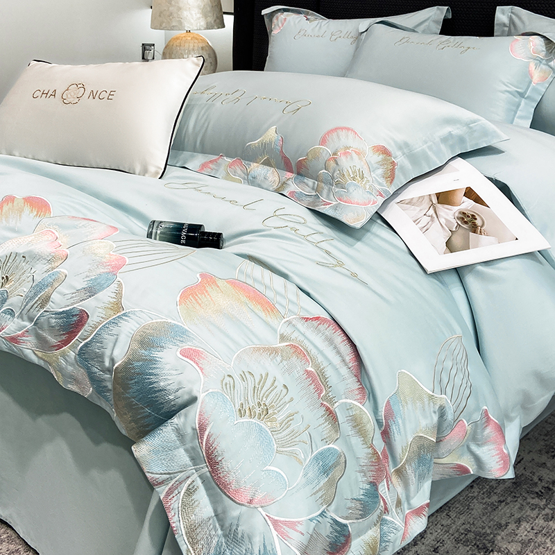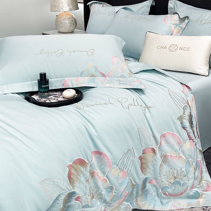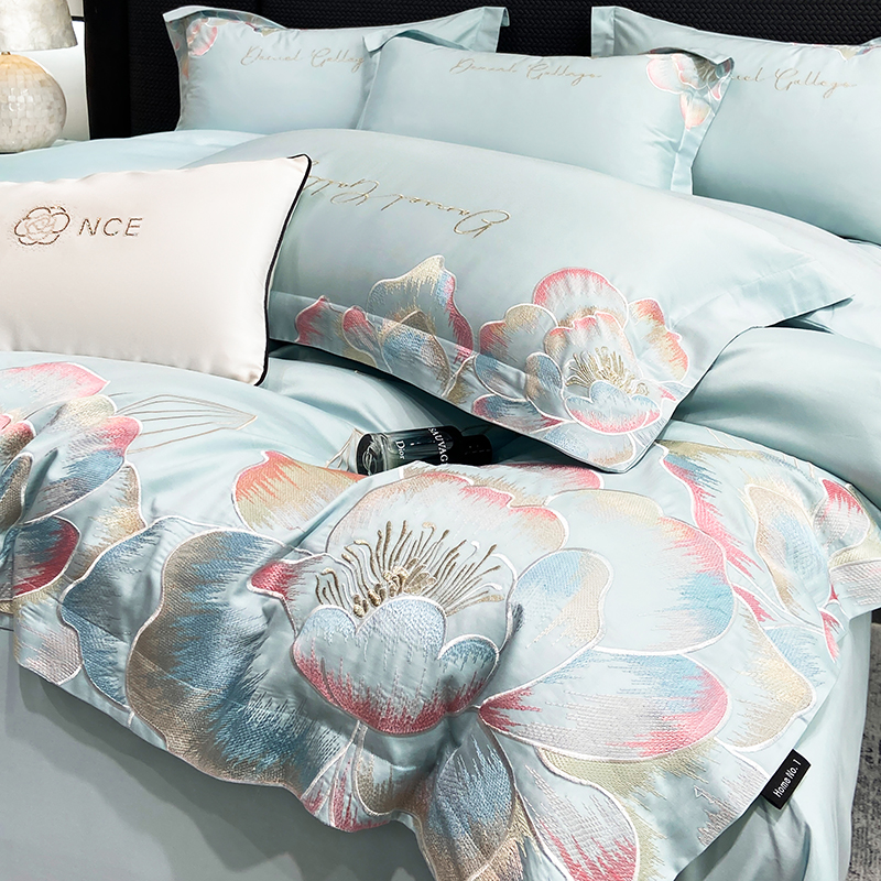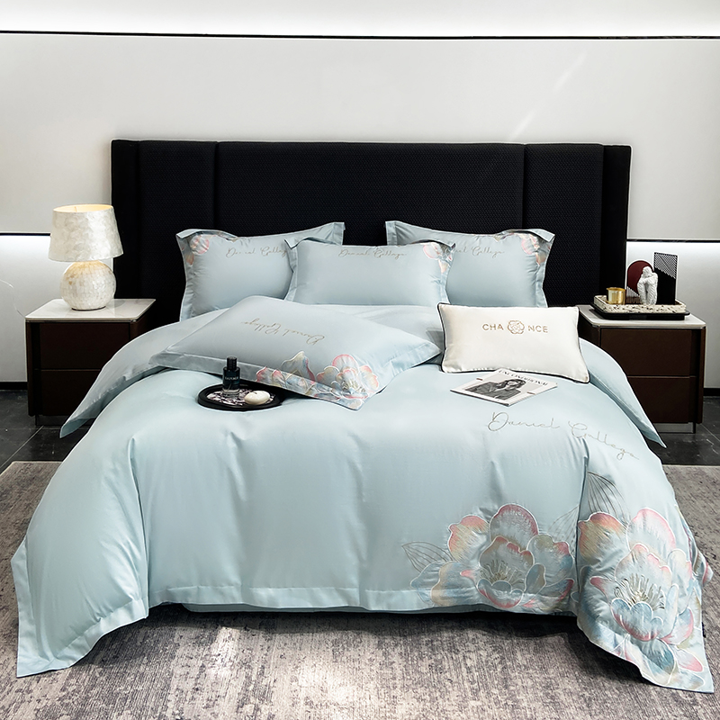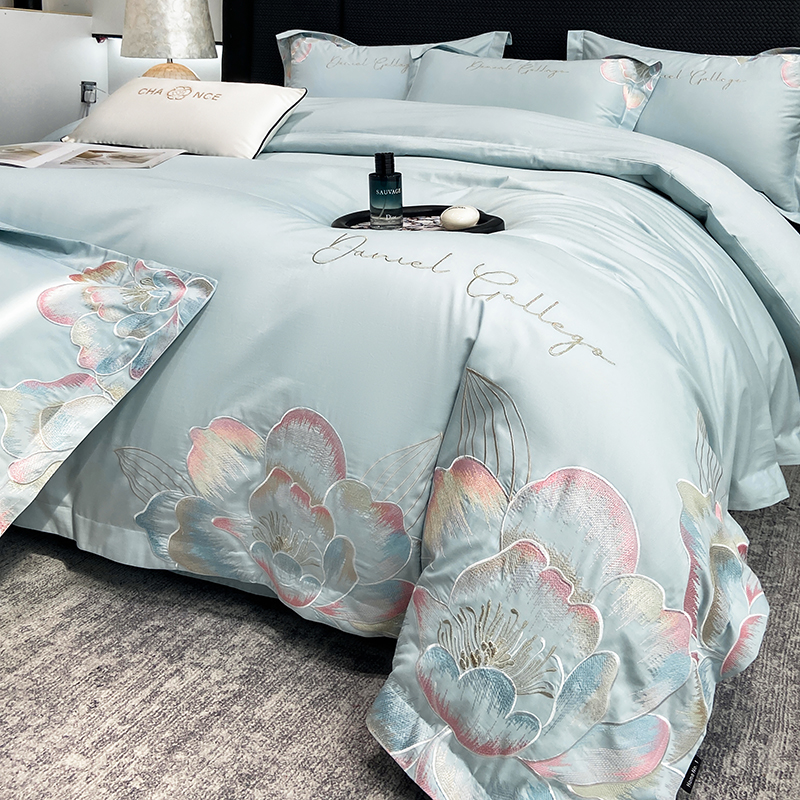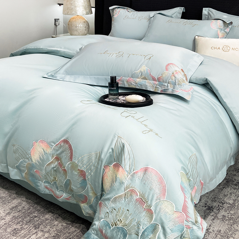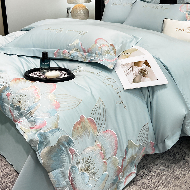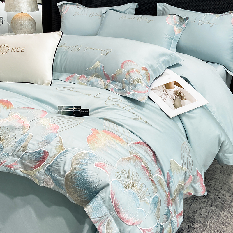 当前位置: 91家纺网 > 商品网购 > 床品套件 > 四件套 > 全棉普通四件套 > 家居1号家纺 2025新款花韵长绒棉四件套 花韵-冰海蓝