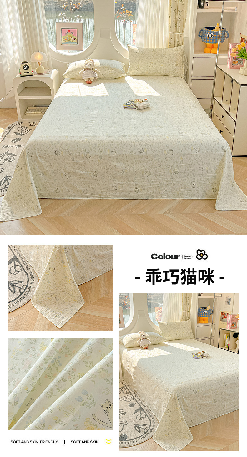 (总)眠帛家居 2025新款A类水洗皱皱纱印花床笠,乖巧猫咪,蝴蝶偏偏,花蔓,可爱小狸,浪漫,蔓蔓