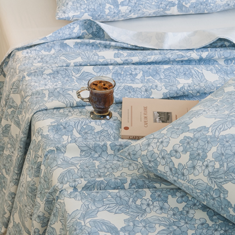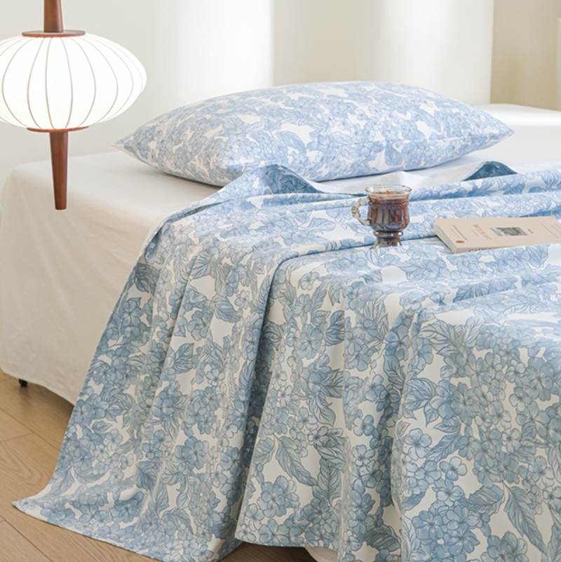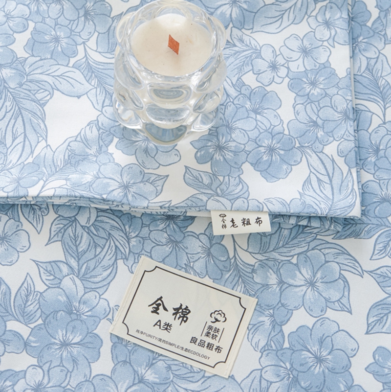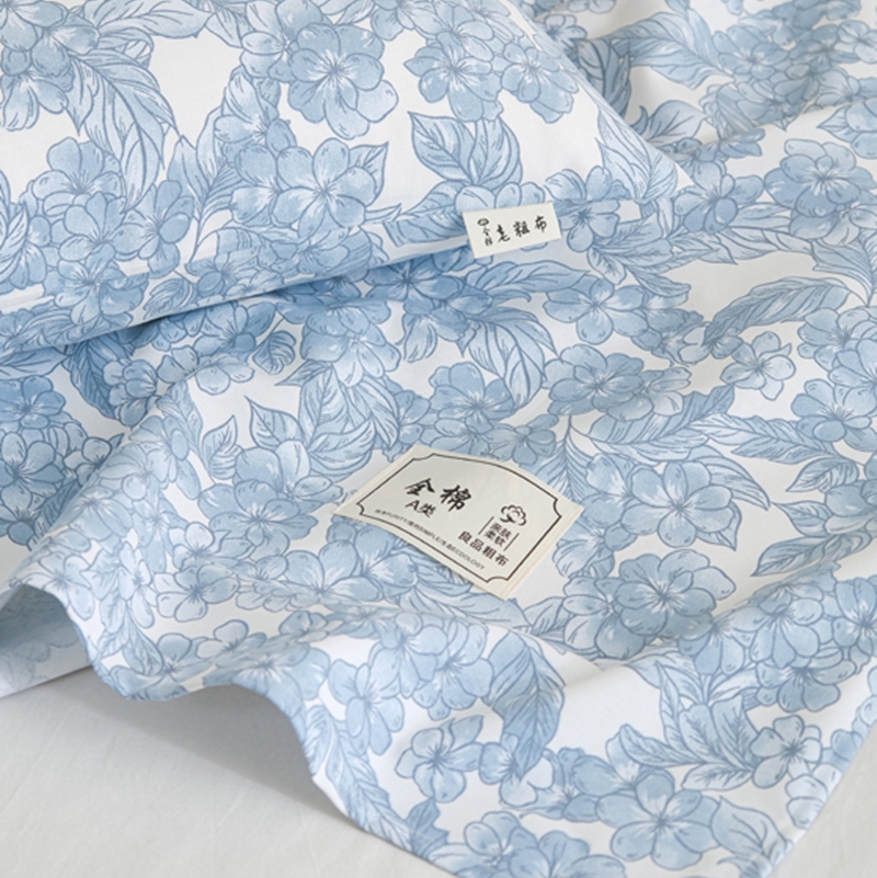 萌宝 2025老粗布新款纯棉细纱三枚缎卡帆布花边款软凉席床单提供买家秀栀子花开,栀子花开