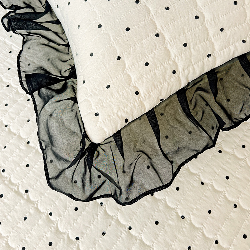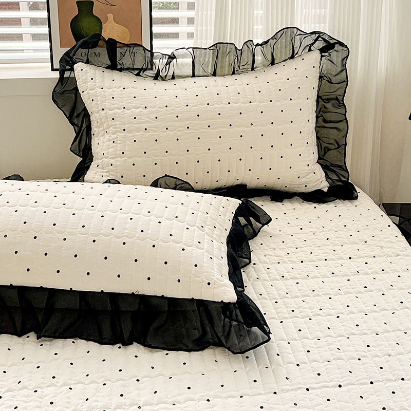 商品名称:艾橙 2025新款法式赫本风水洗棉印花雪纺花边单枕套 点点爱
