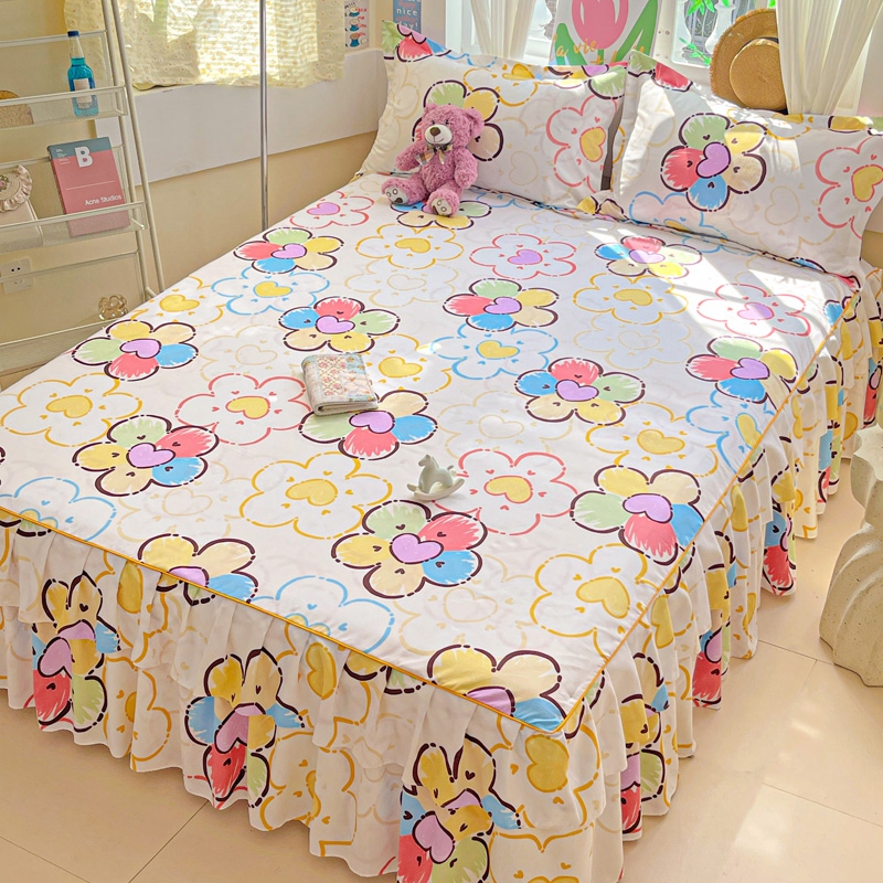 (总)艾橙家纺 2025新款雪纺花边加棉床笠款单品四件套-单床笠,妆立春风,半旧时光,彩色波点,丹妮狗,恐龙日记,茉莉兔,糖果草莓,微风许甜,心彩童话,樱之恋