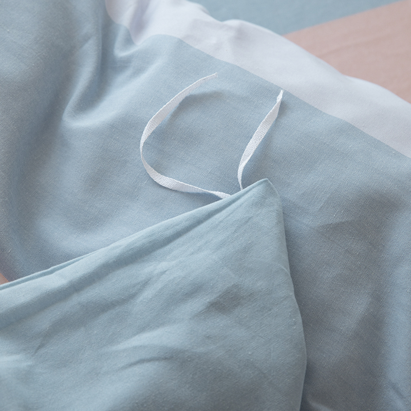木易家居 2025新款全棉色织水洗棉四件套海伦-蓝,海伦-蓝