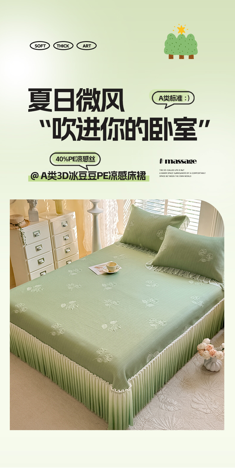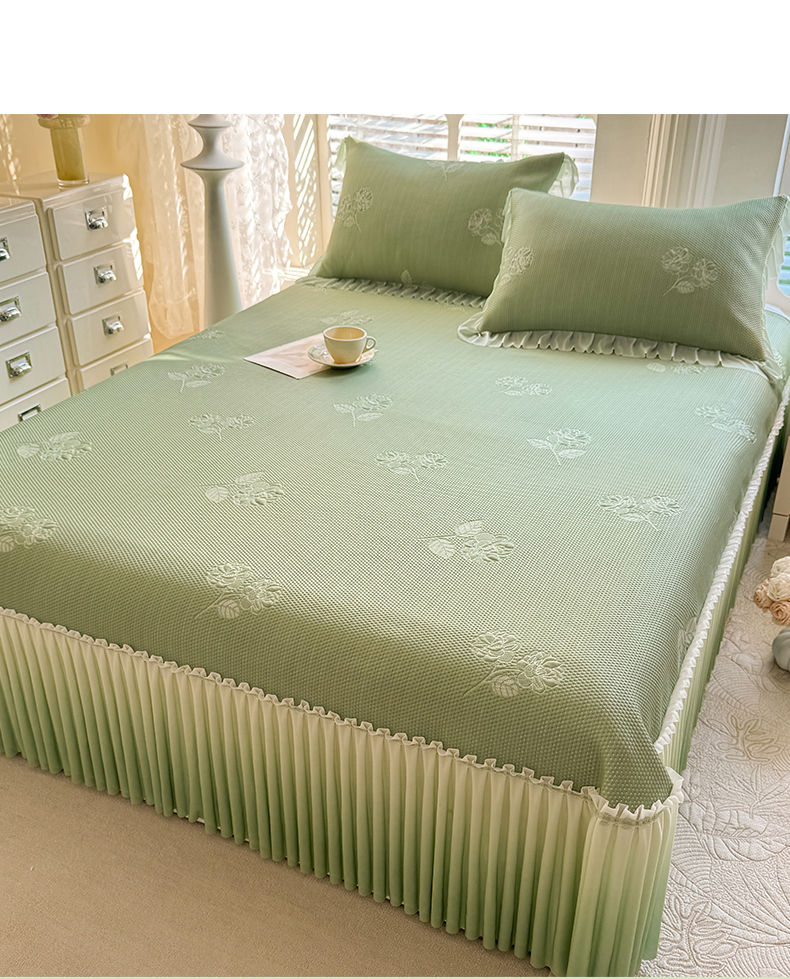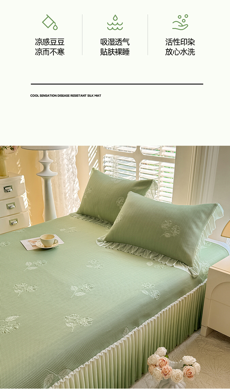 当前位置: 91家纺网 > 商品网购 > 床上用品 > 凉席 > 凉席套件 > 优家居 2025新款A类轻奢PE真凉感冰丝席床裙夏季冰豆豆凉席三件套可机洗水洗空调软席 PE-绿玫瑰