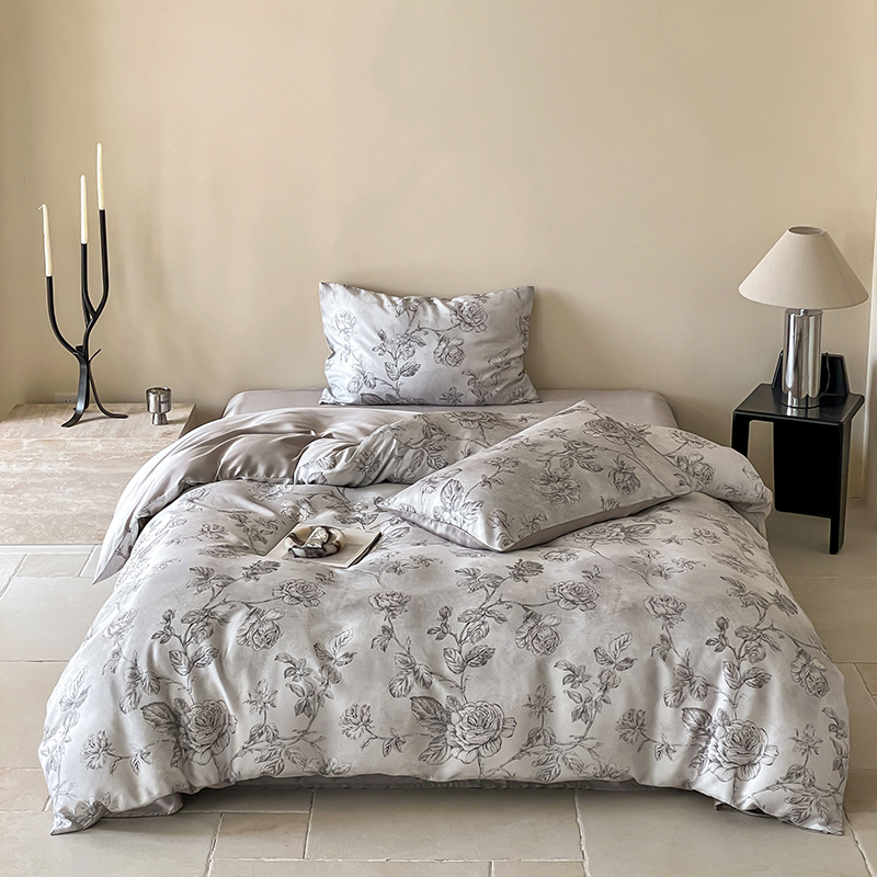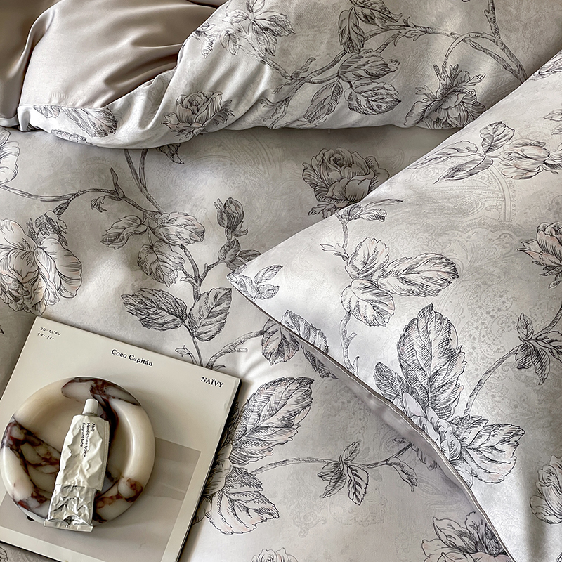 当前位置: 91家纺网 > 商品网购 > 床品套件 > 四件套 > 其它四件套 > 咏绒家纺工厂店 2025新款60S奥地利兰精天丝数码印花暗合简约款系列四件套 夏洛-灰