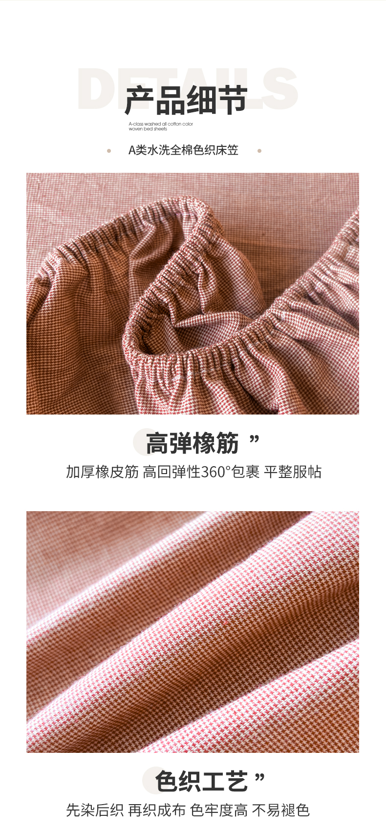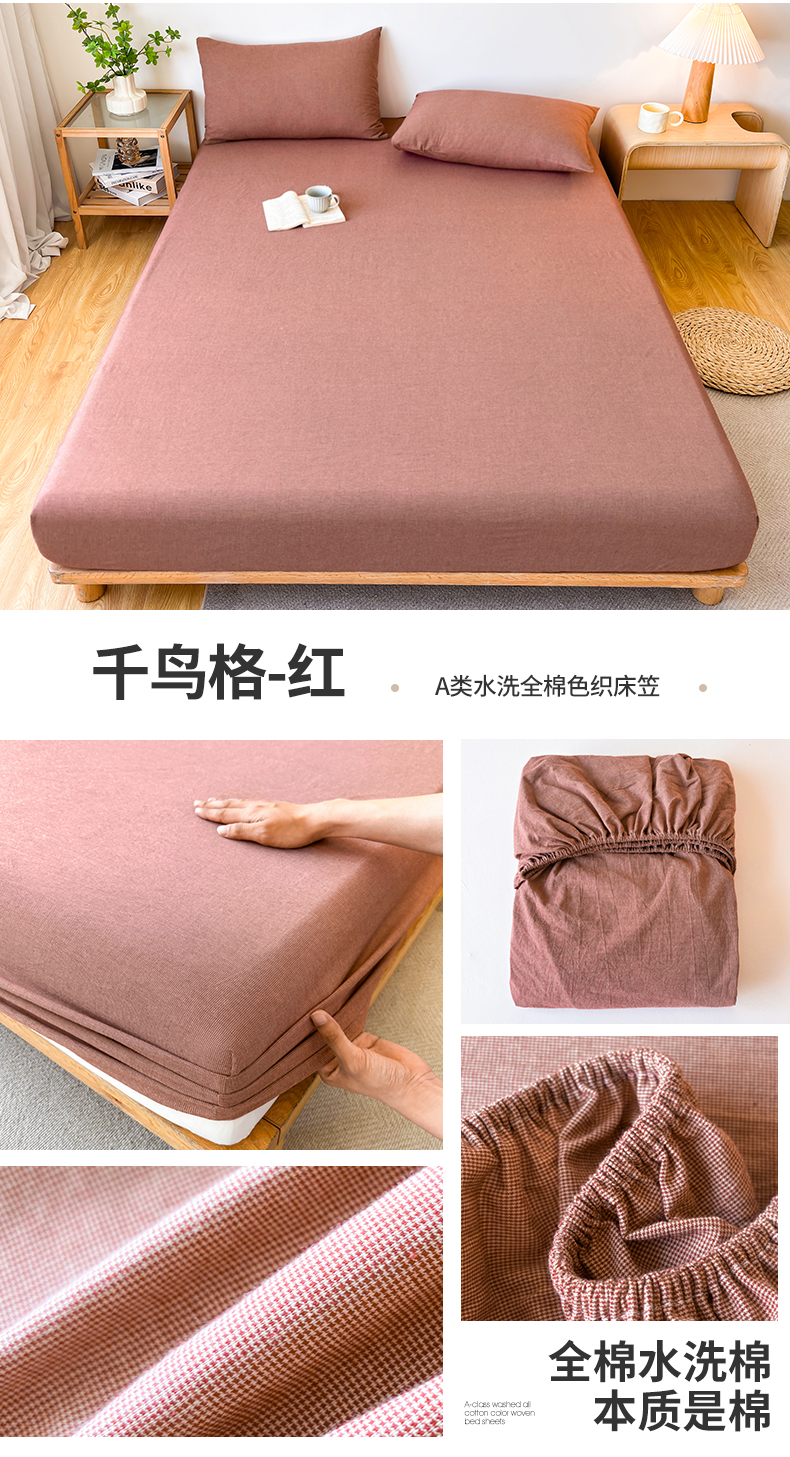 • 91家纺网 家纺一手货源 找家纺 名优家纺 2025新款全棉色织水洗棉单品系列-单床笠 千鸟格-红