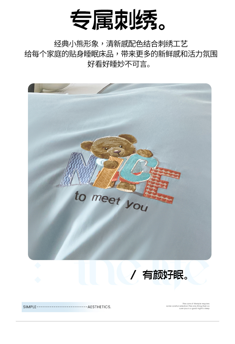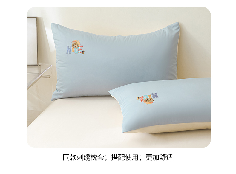 商品名称:拼社家纺 2025新款全棉长绒棉四件套纯棉四件套小熊刺绣床上用品【提供买家秀】 萌萌熊-天蓝