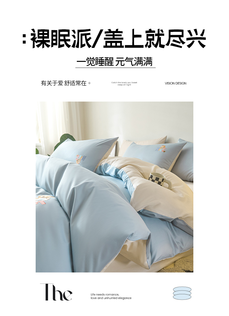 (总)拼社家纺 2025新款母婴及全棉水洗棉刺绣四件套纯棉床上用品,艾玛绿+卡其,繁星蓝+卡其,繁星蓝+玫瑰粉,红豆沙+雅灰,迷雾灰+玫瑰粉,蜜粉+雅灰,奶油白+卡其,奶油白+香橙,牛仔蓝+浅蓝,香橙+雅灰