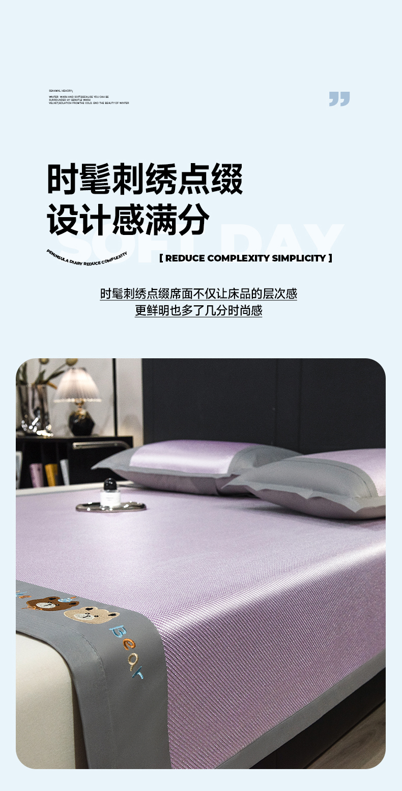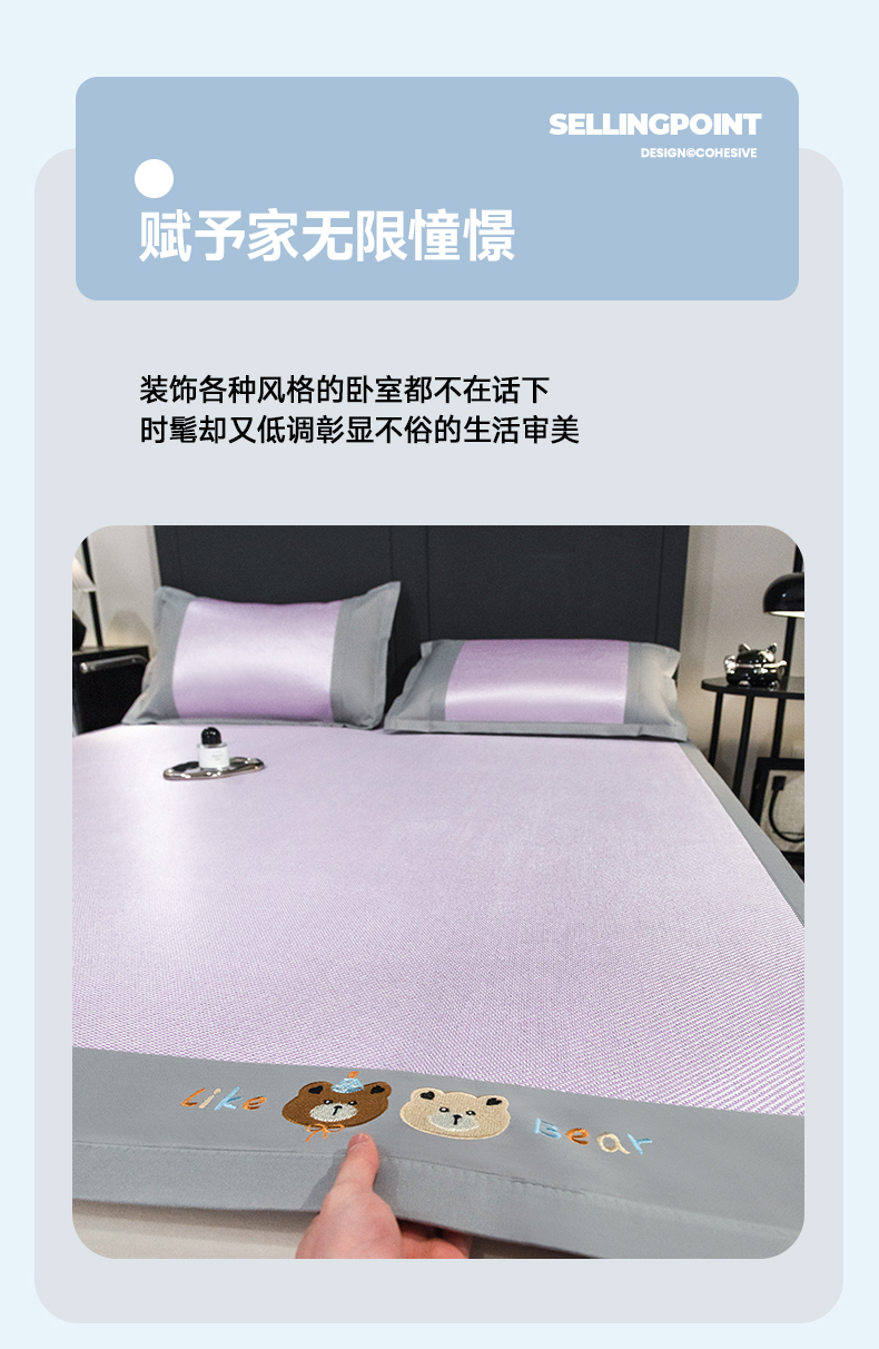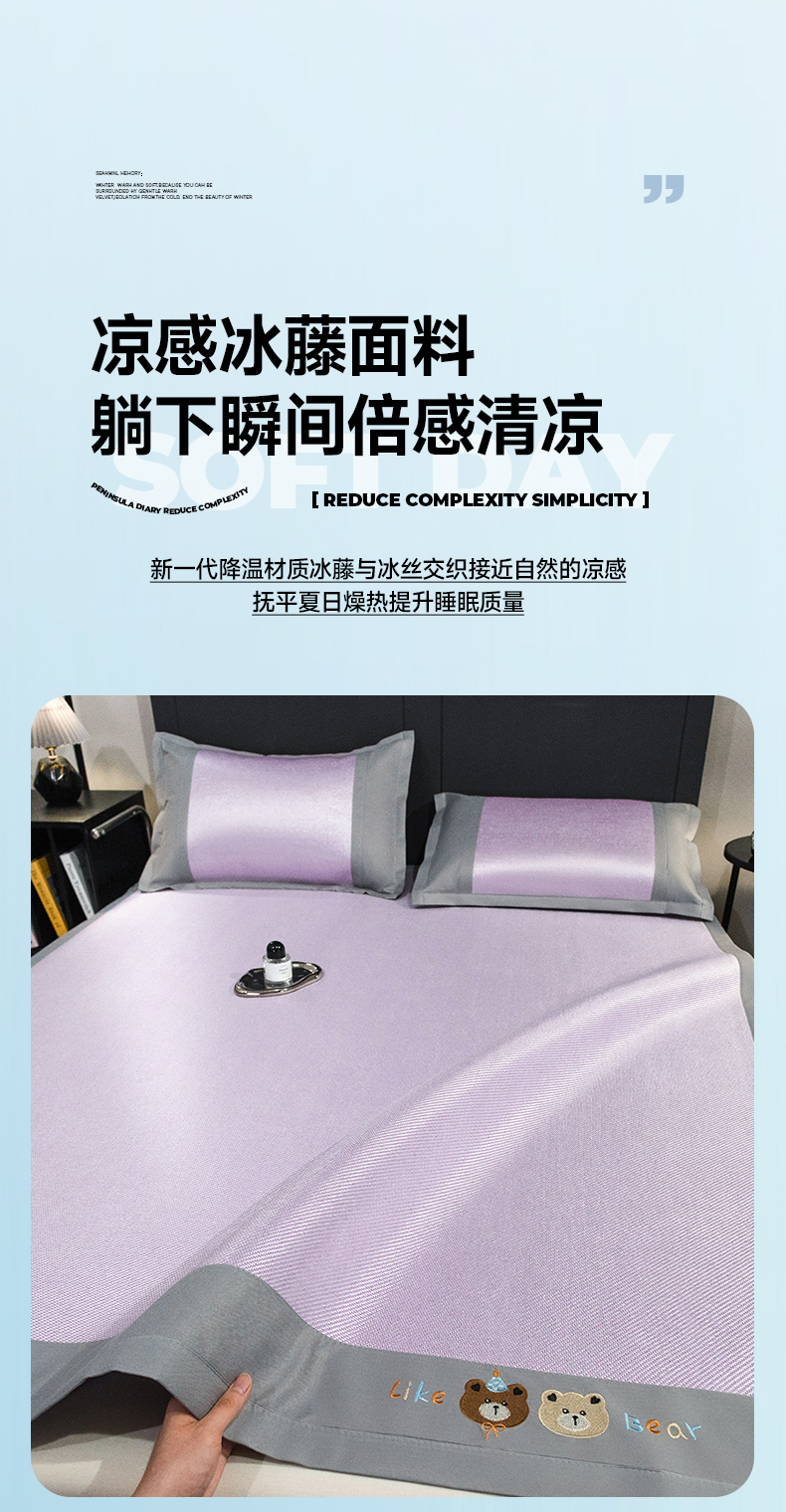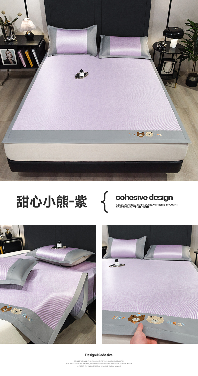 商品名称:摩妮卡 2025新款抗菌绣花冰藤席床席款 甜心小熊-紫