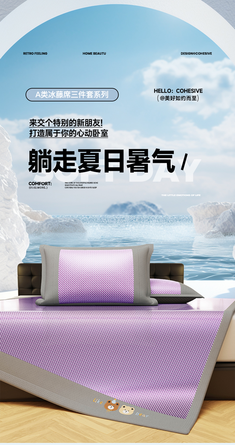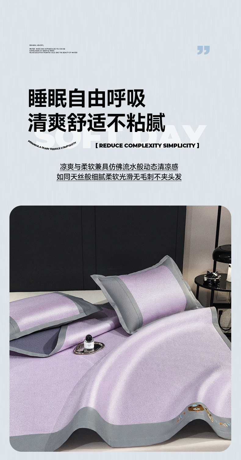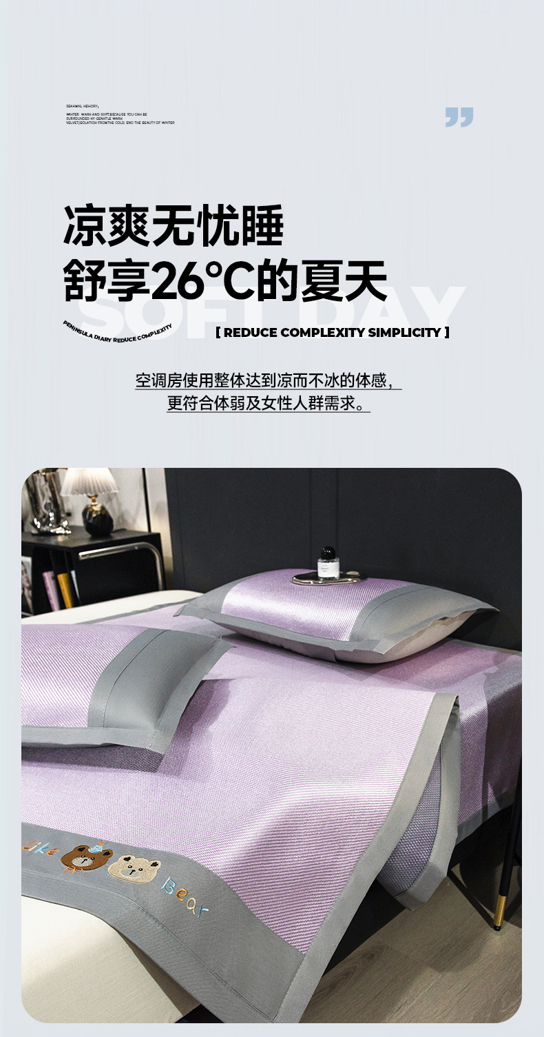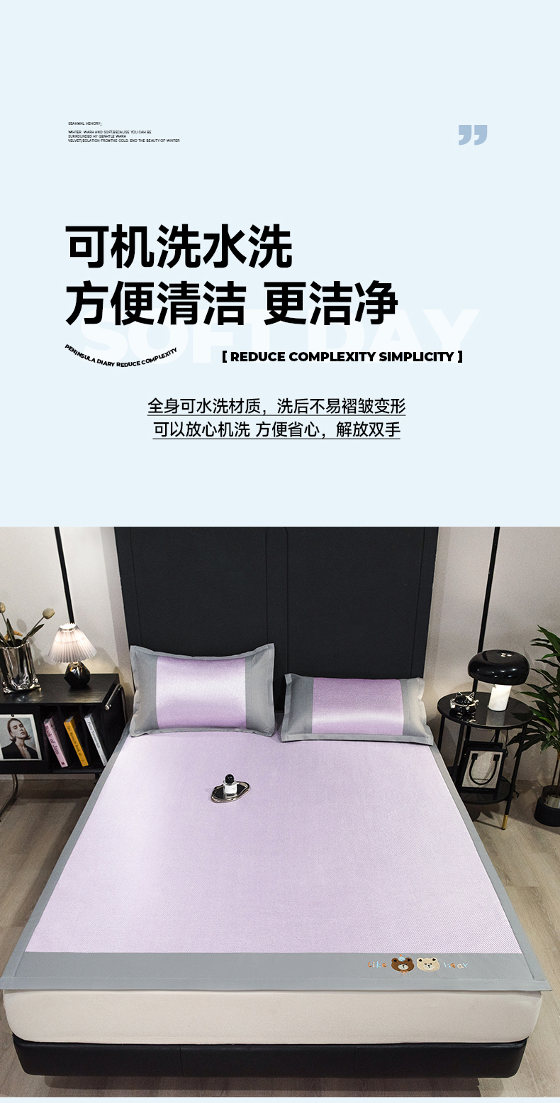 商品名称:摩妮卡 2025新款抗菌绣花冰藤席床席款 甜心小熊-紫