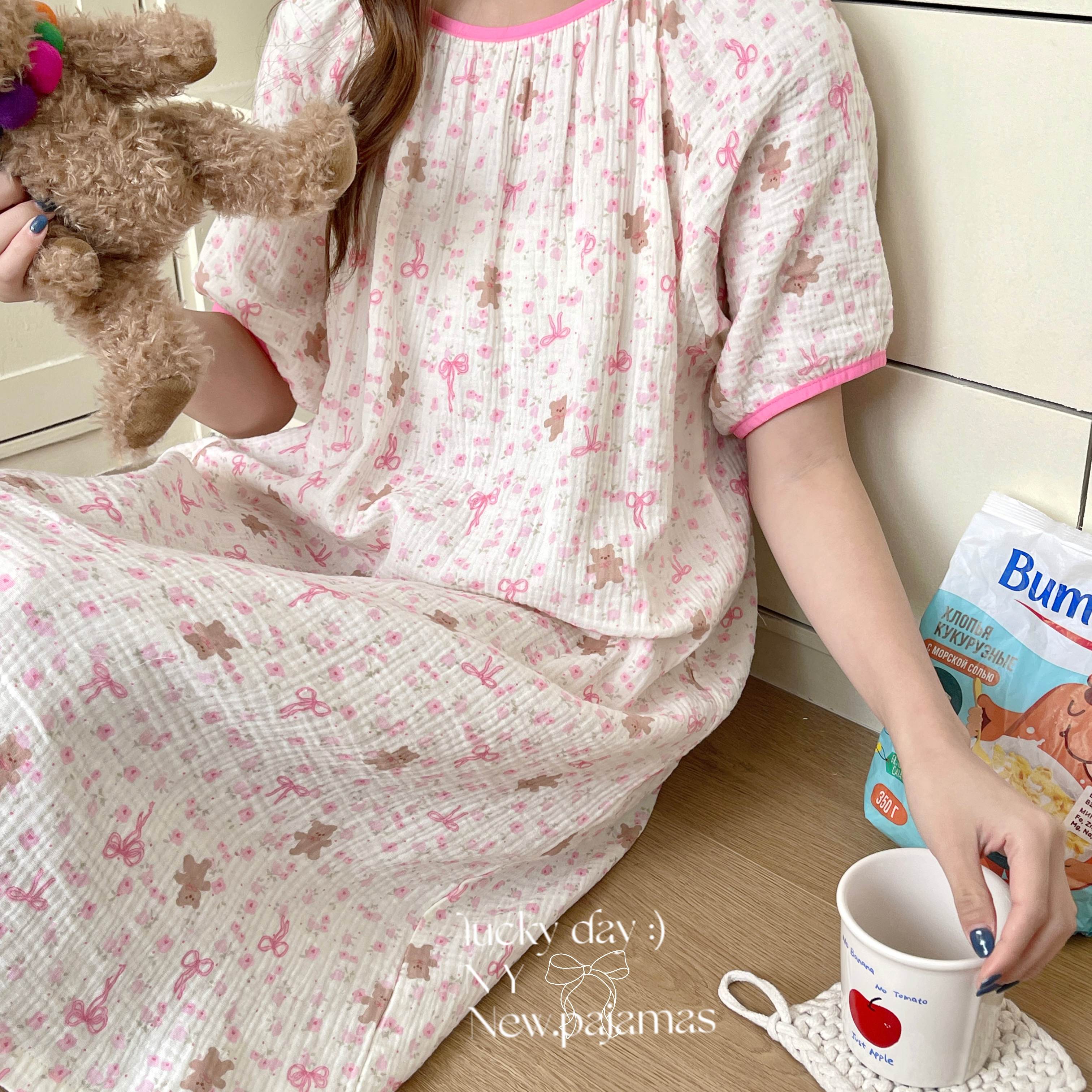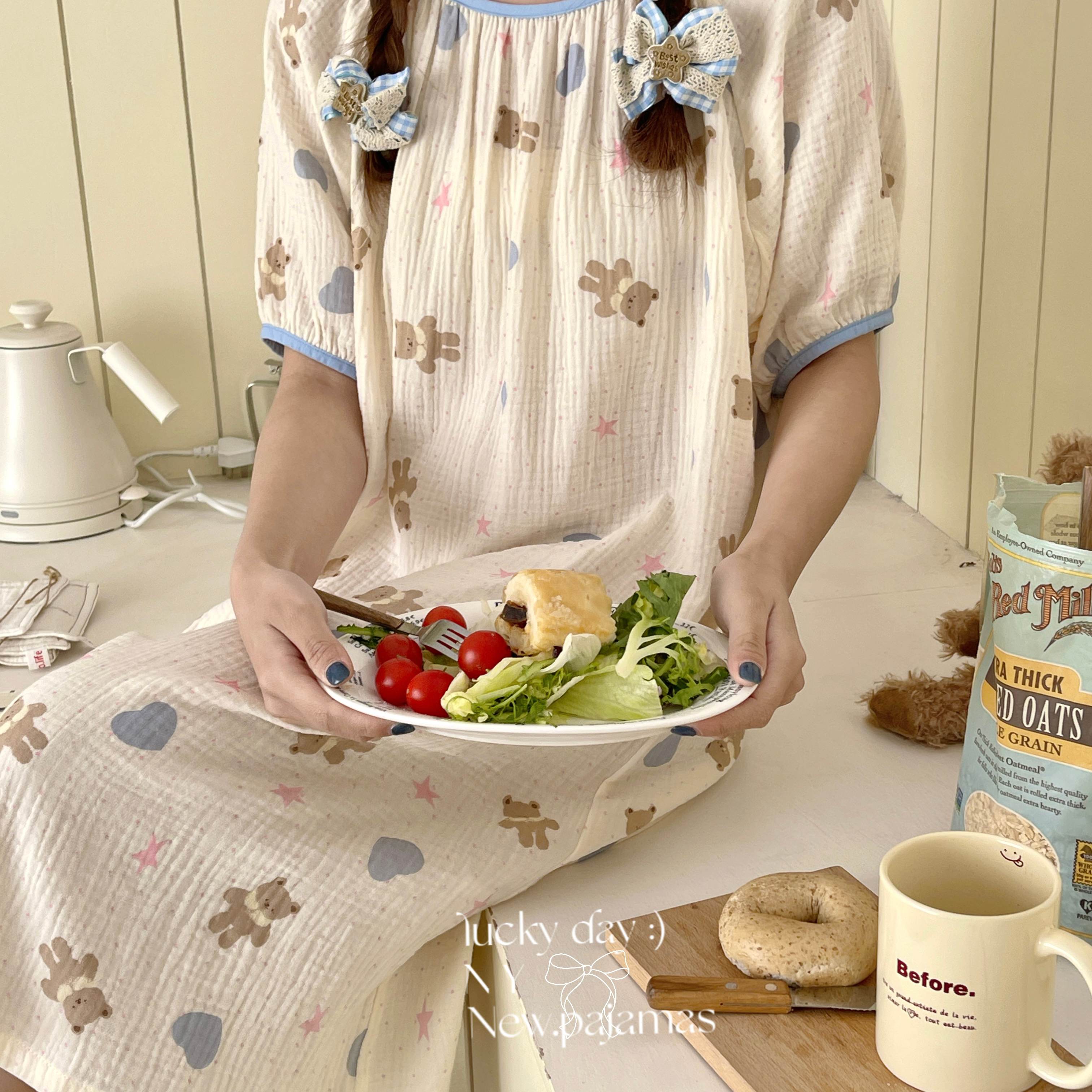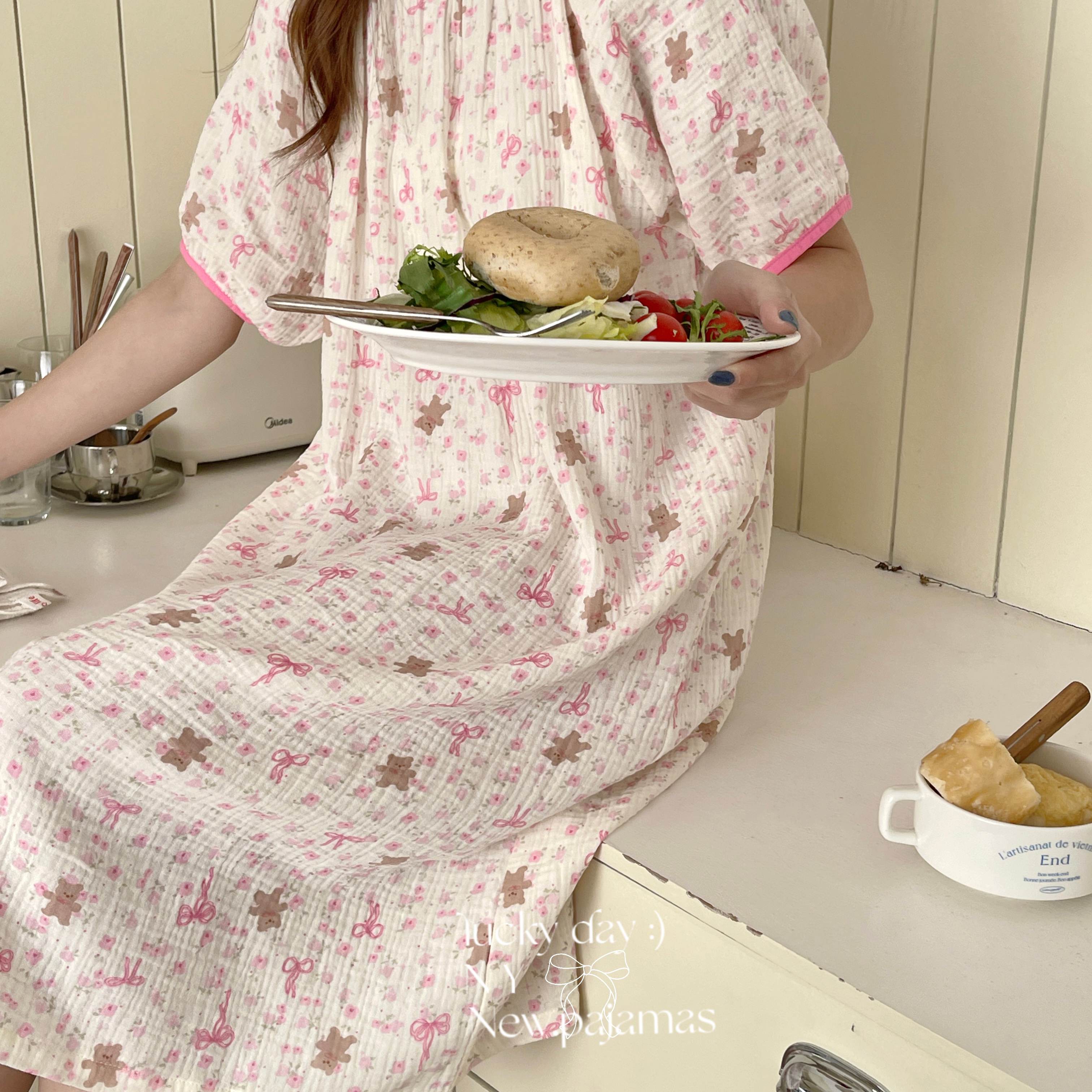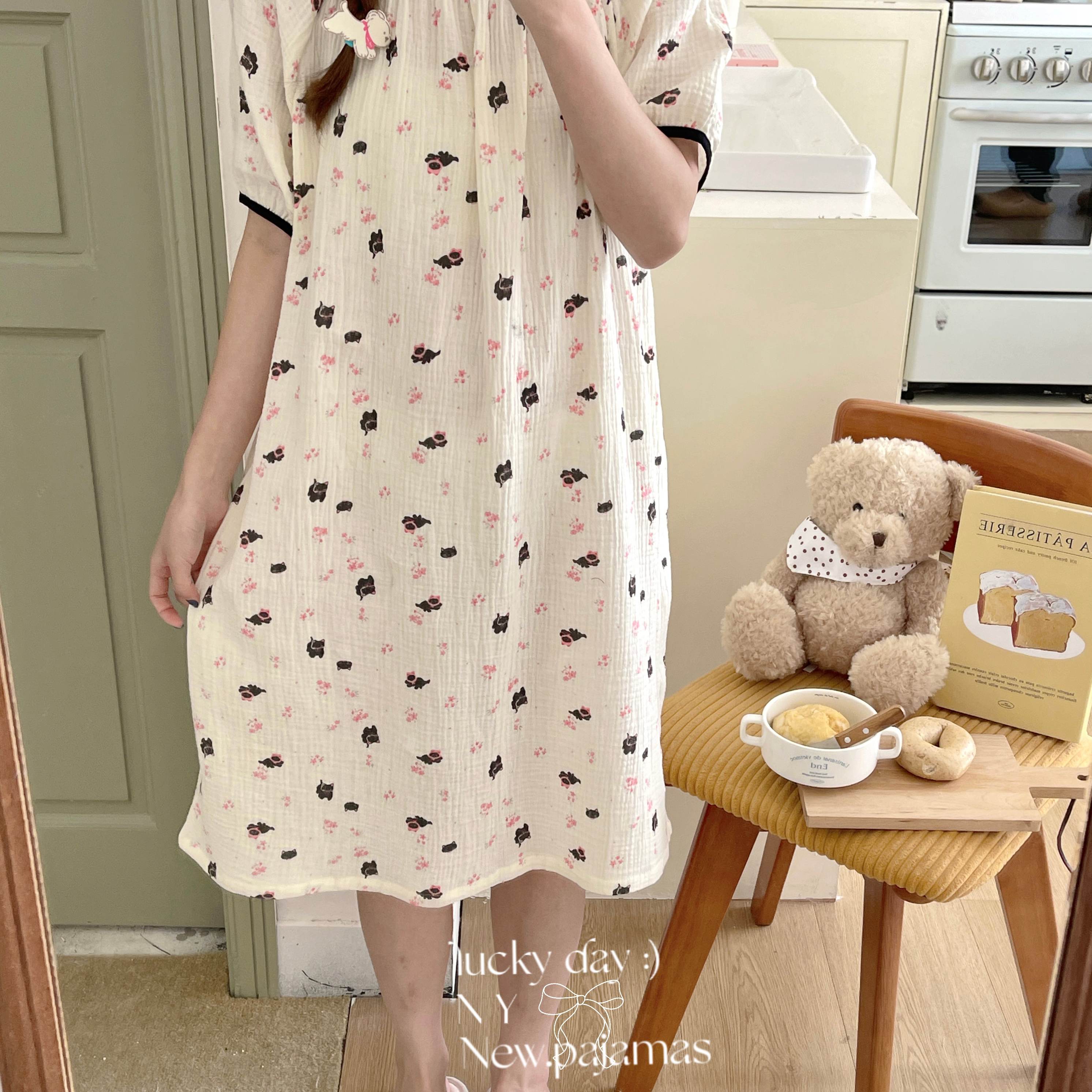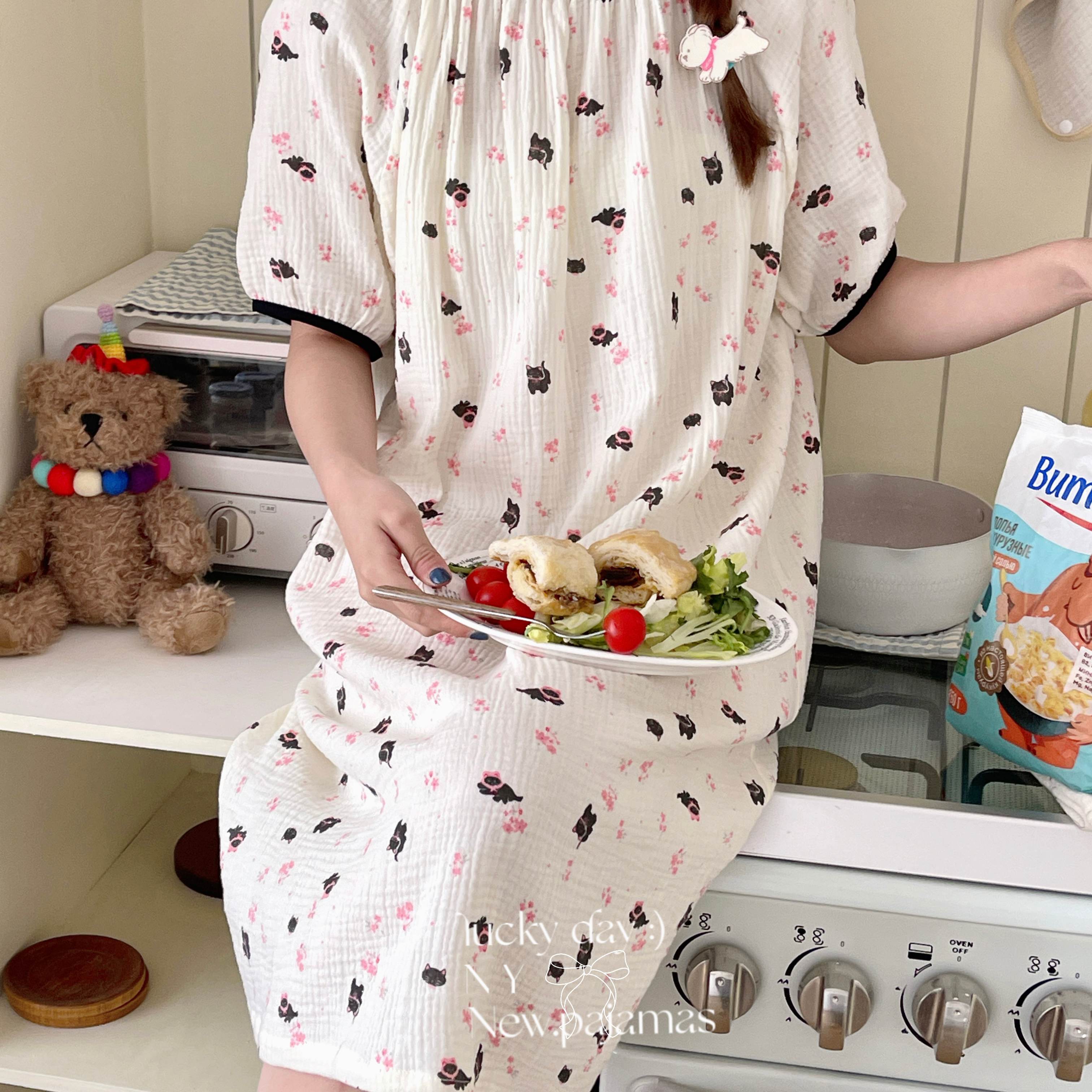 (总)纽约生活 2025新款绉布圆领开扣长袖长裤(会员-5),波比熊,黑碎花猫咪,蝴蝶结粉熊,花花狗,蓝碎花,塞纳花房