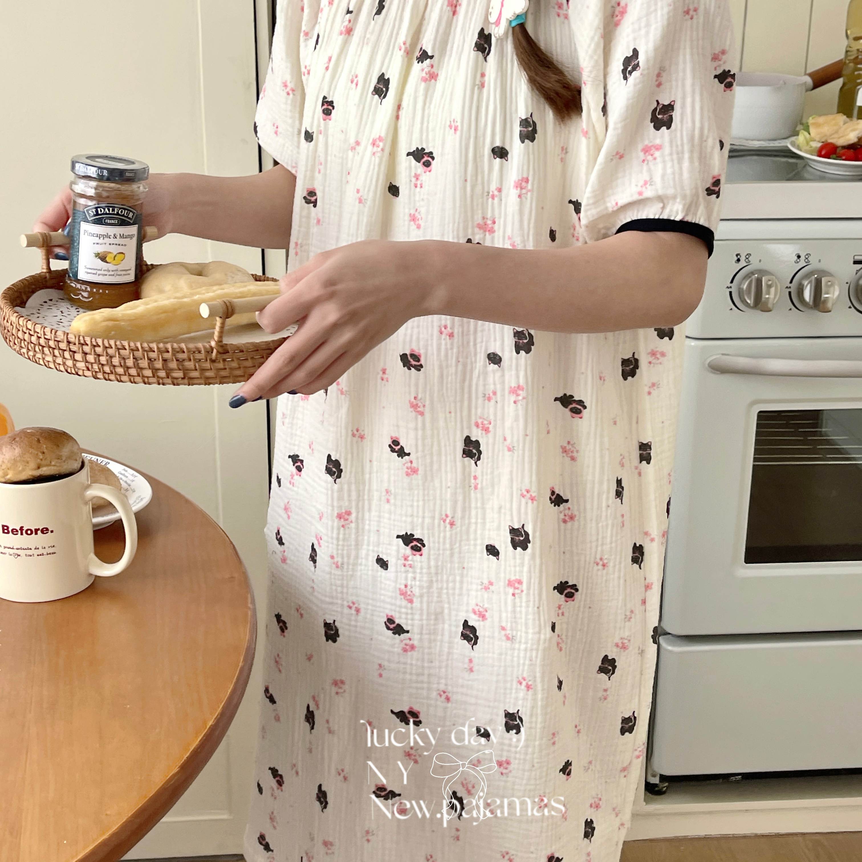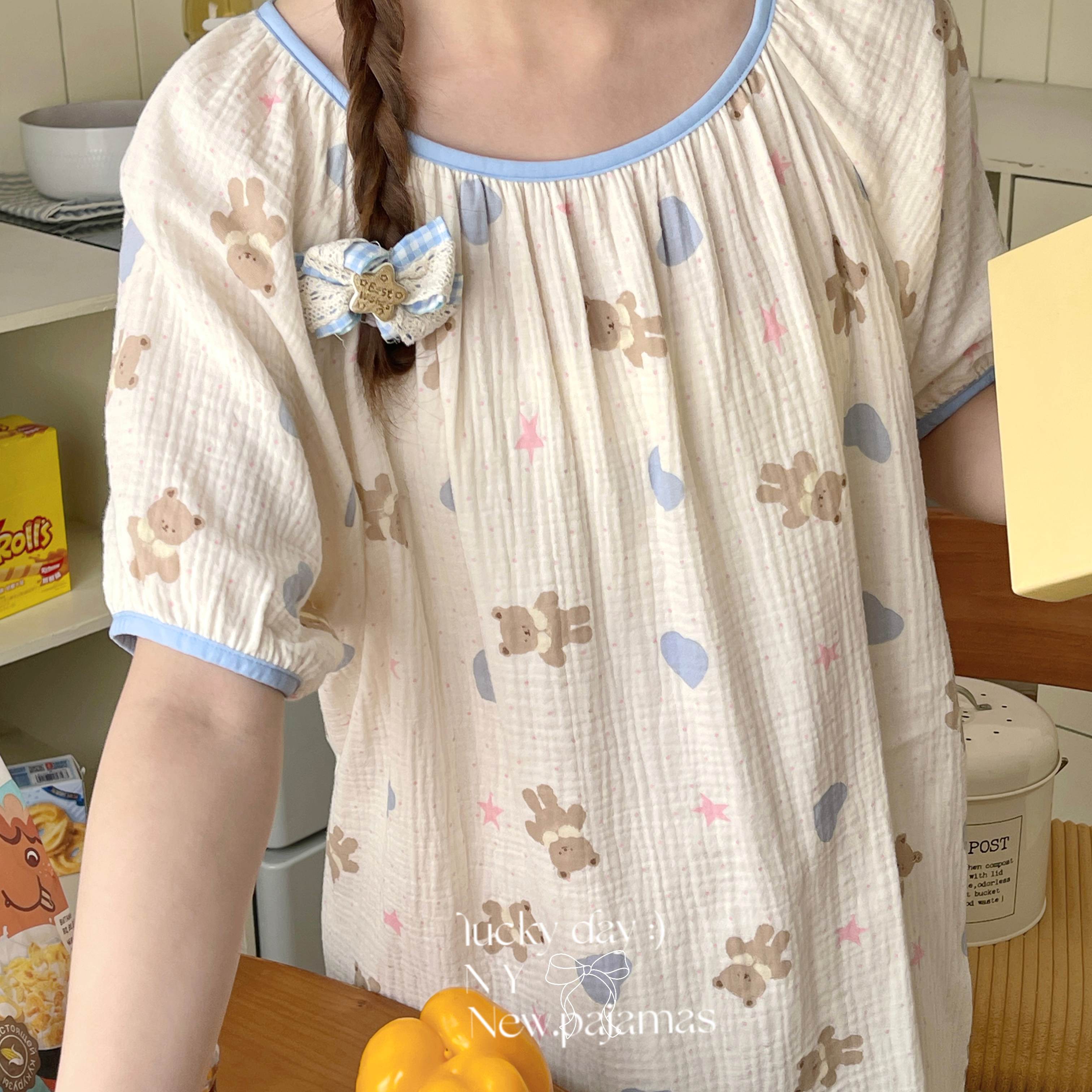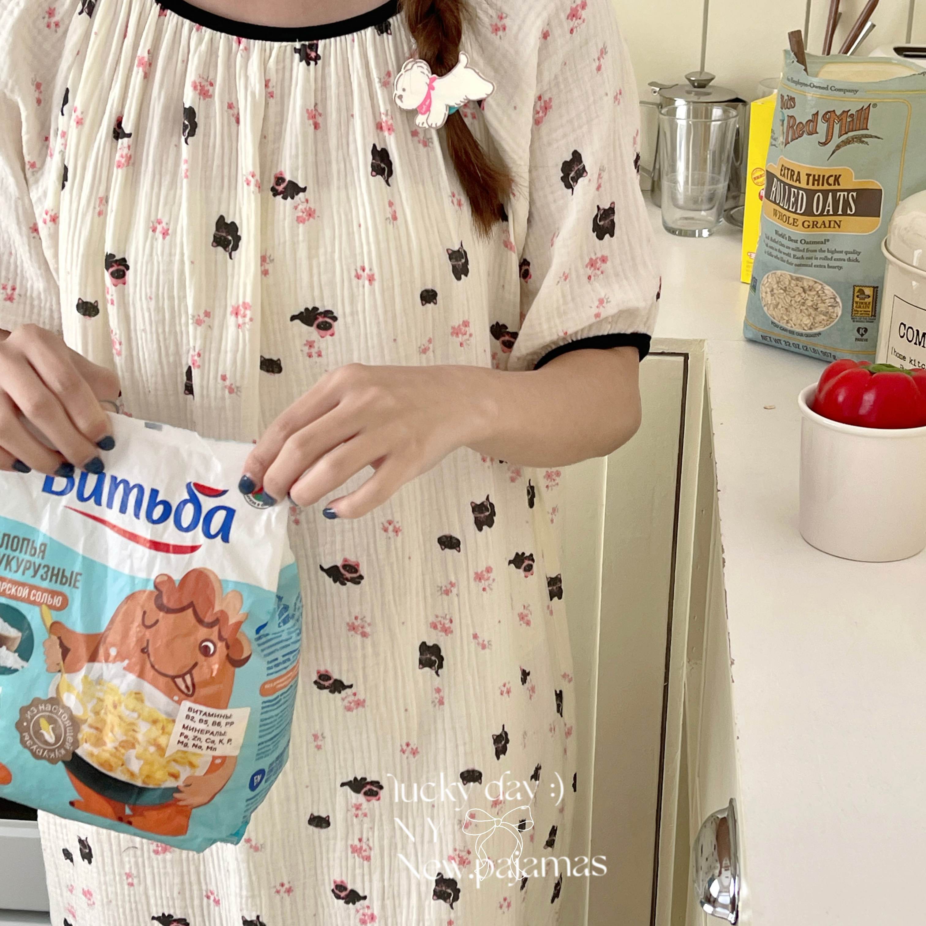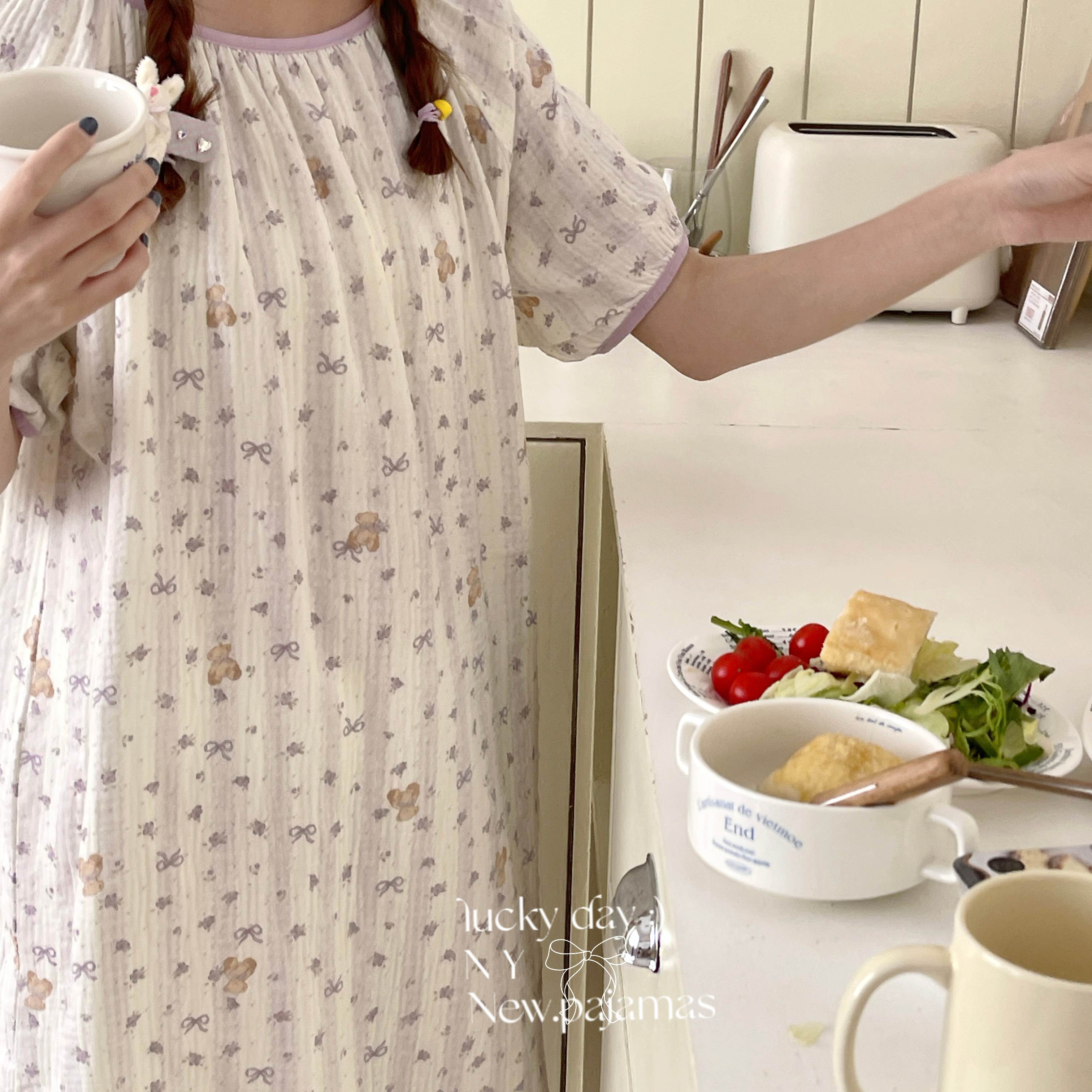 (总)纽约生活 2025新款绉布圆领开扣长袖长裤(会员-5),波比熊,黑碎花猫咪,蝴蝶结粉熊,花花狗,蓝碎花,塞纳花房