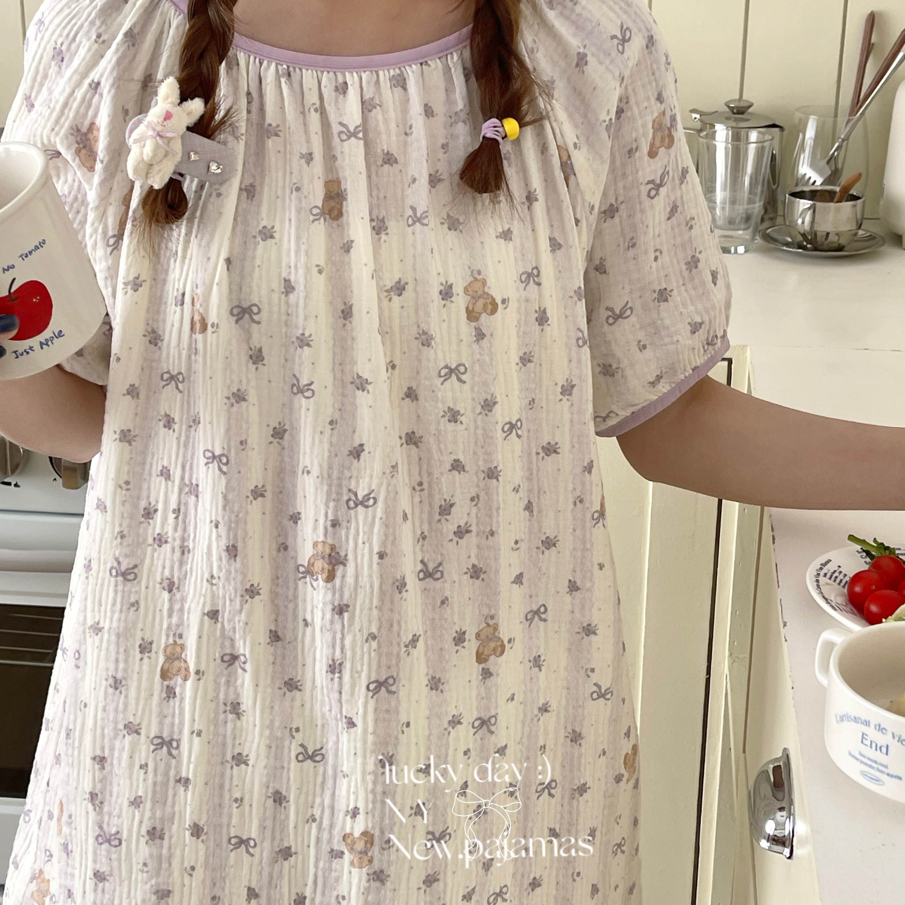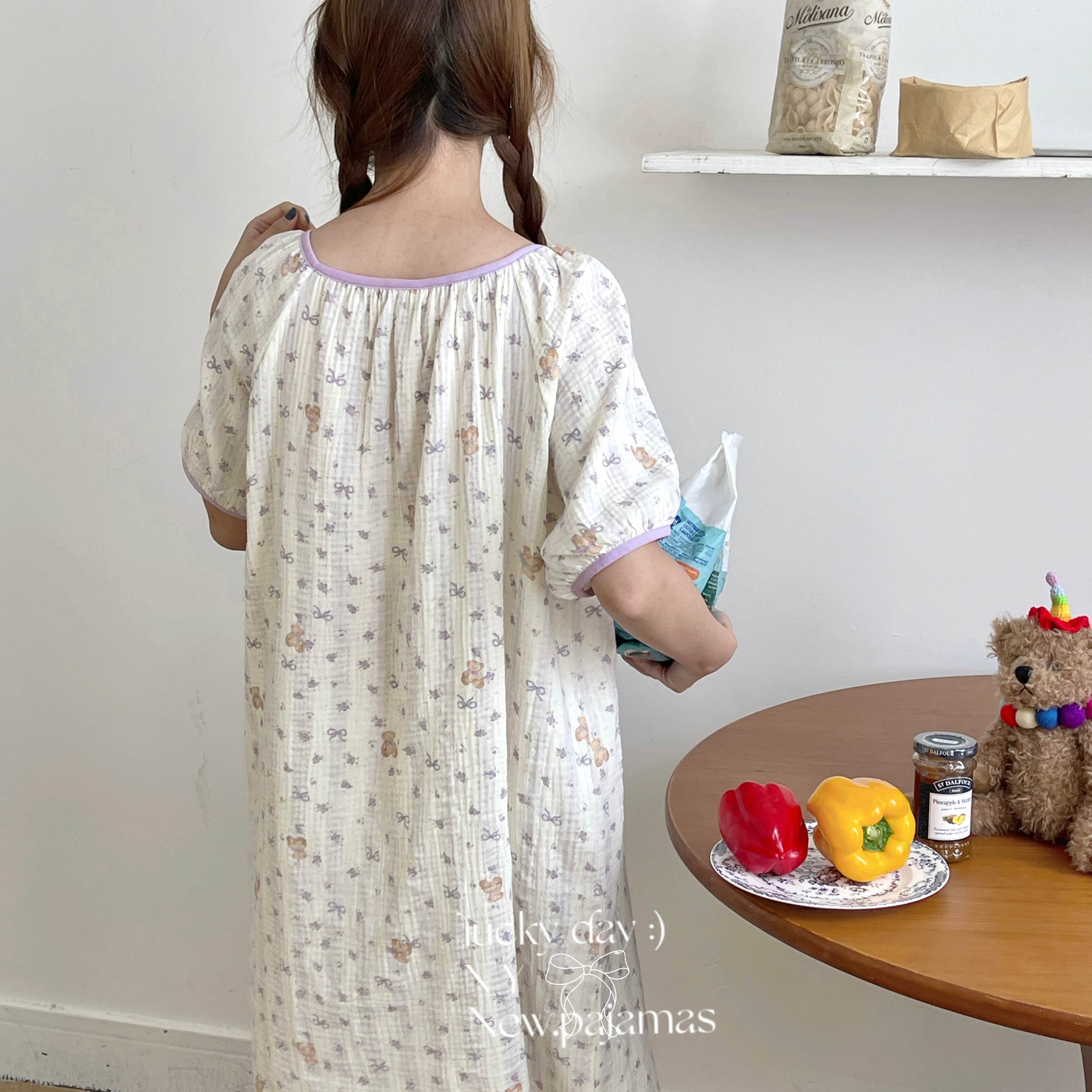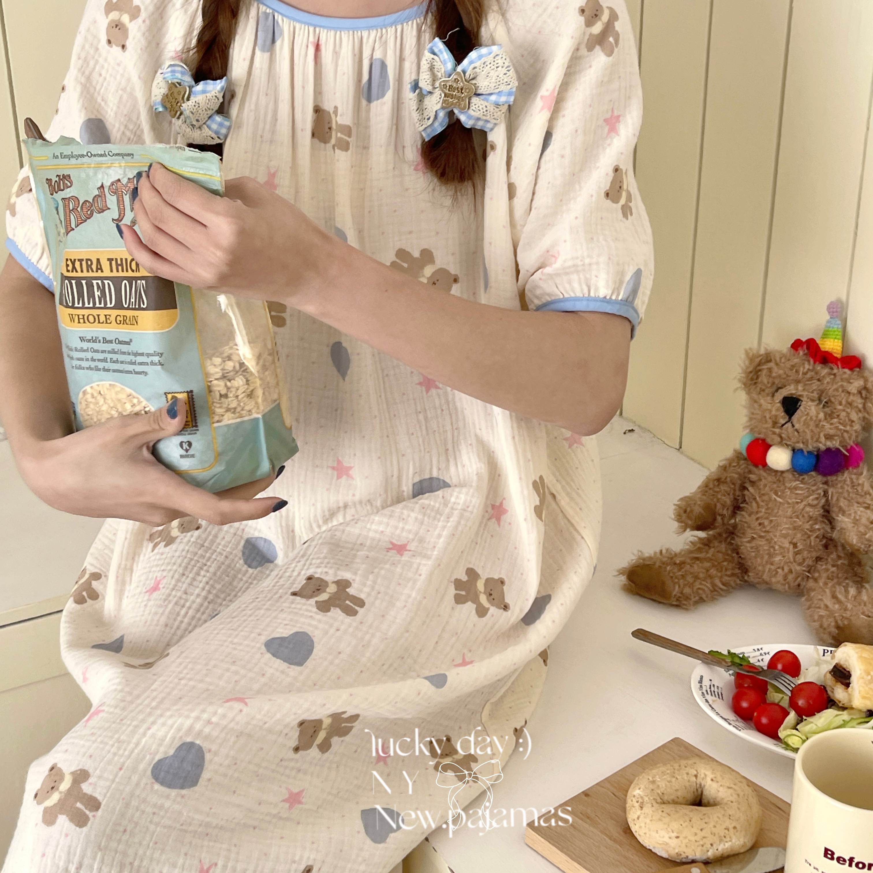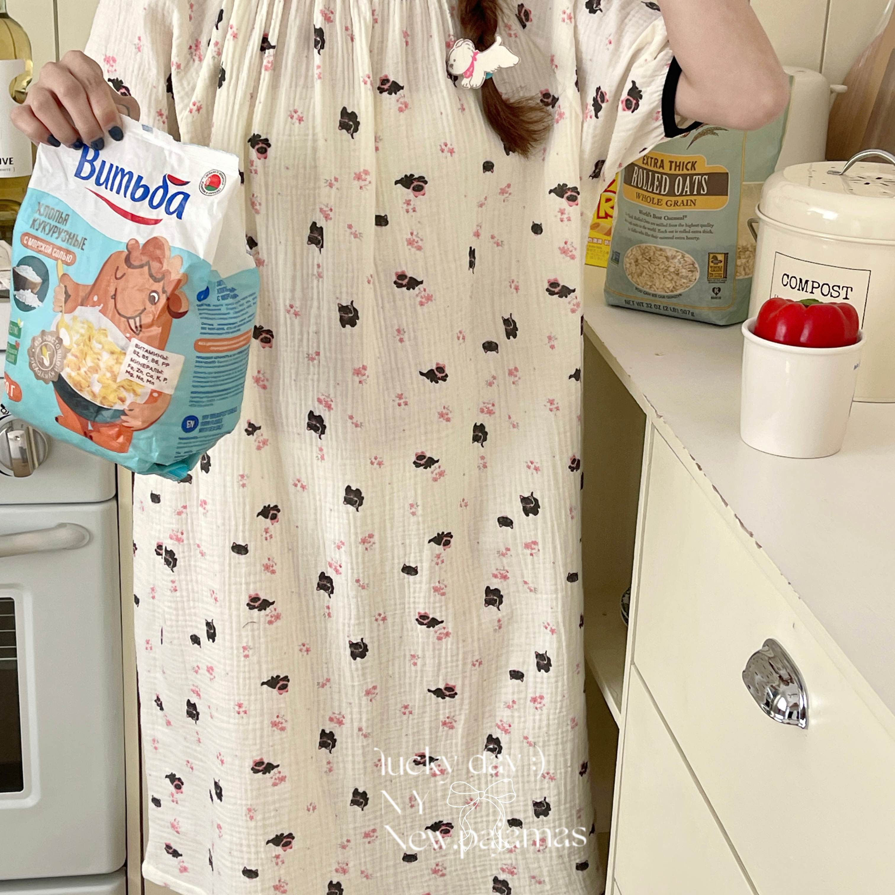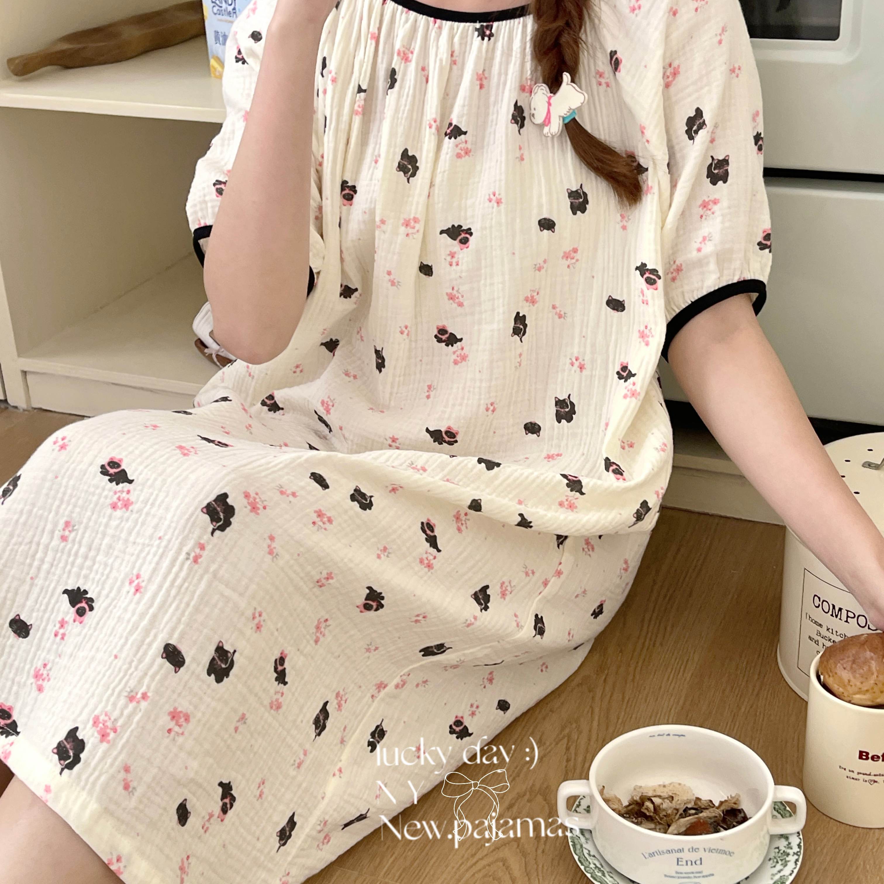 (总)纽约生活 2025新款绉布圆领开扣长袖长裤(会员-5),波比熊,黑碎花猫咪,蝴蝶结粉熊,花花狗,蓝碎花,塞纳花房