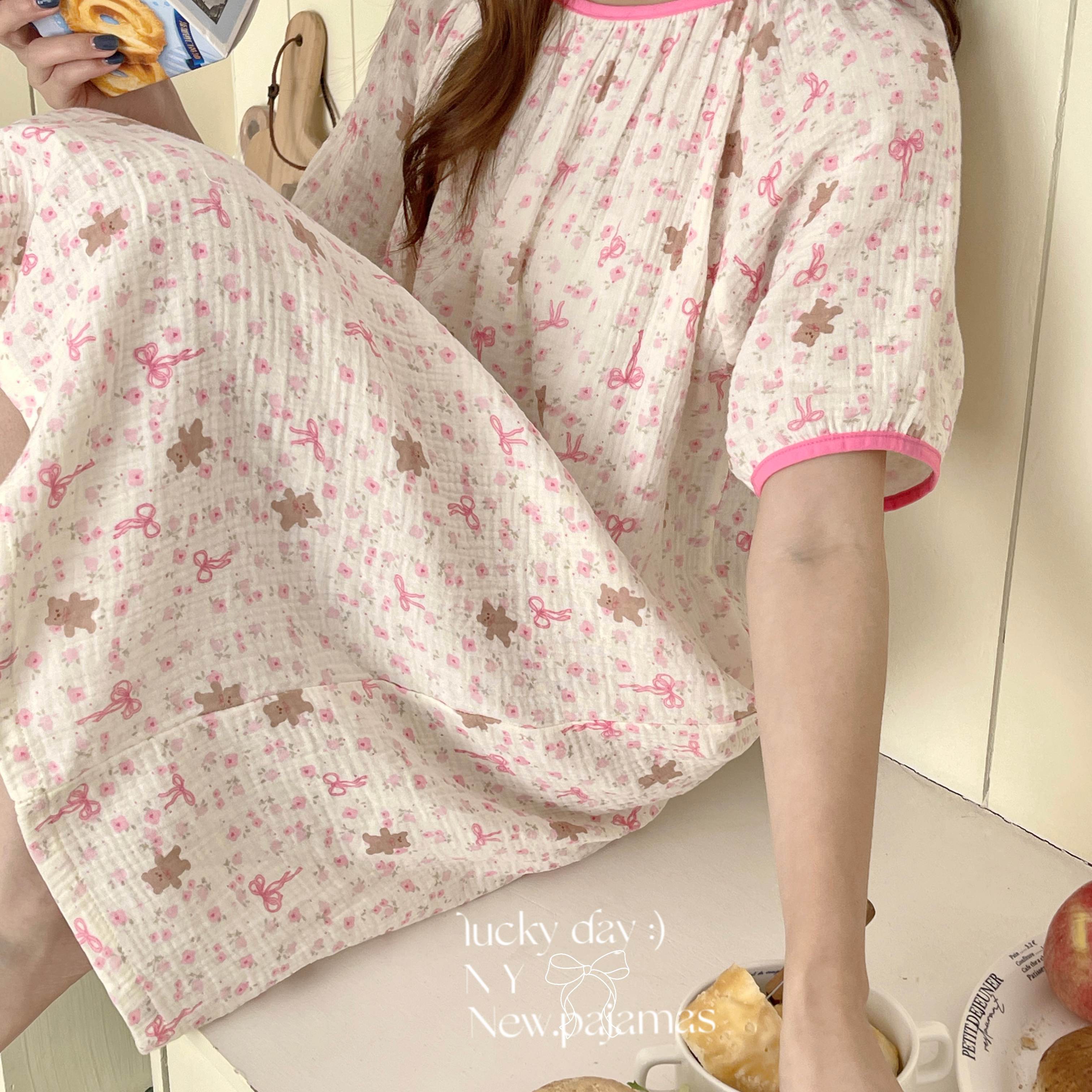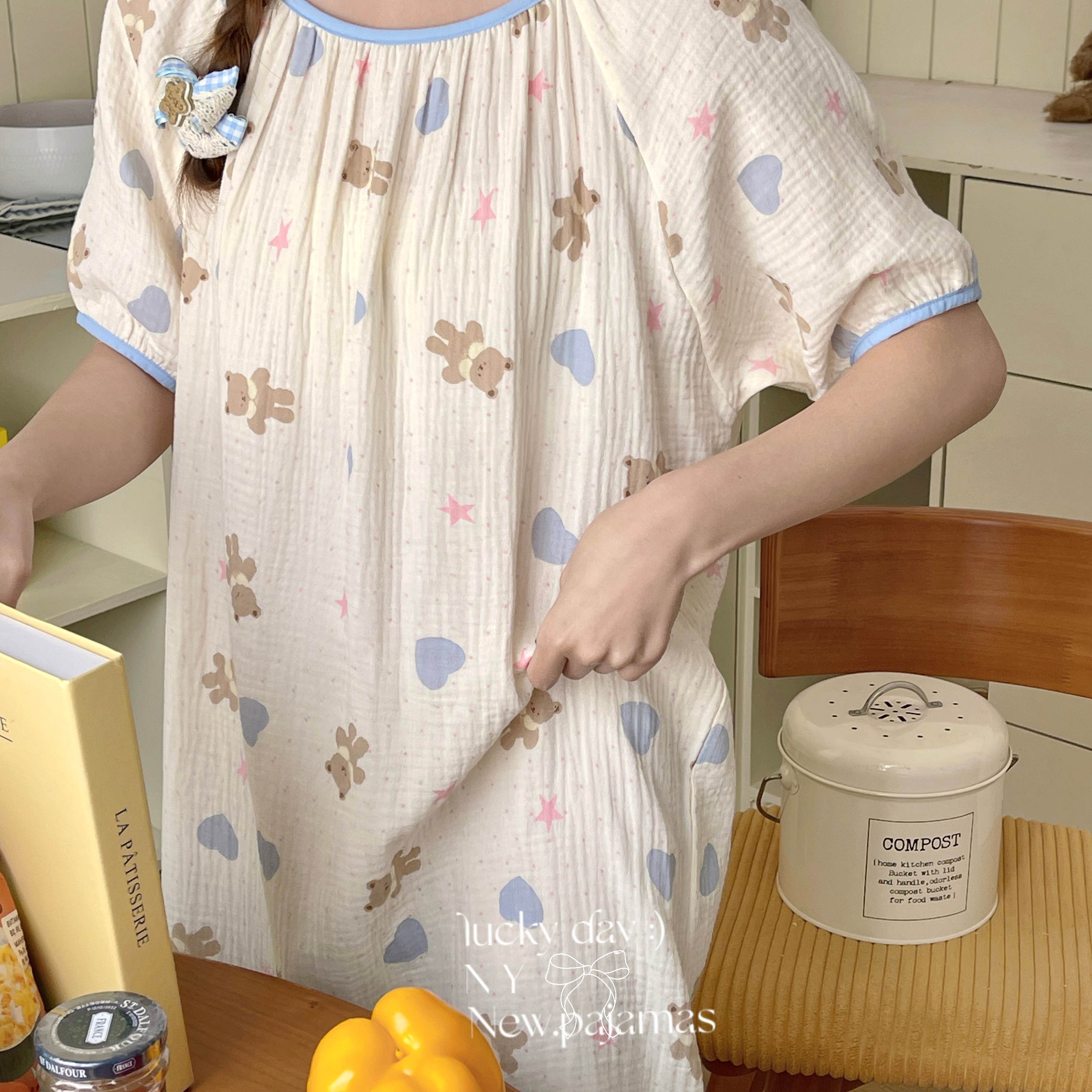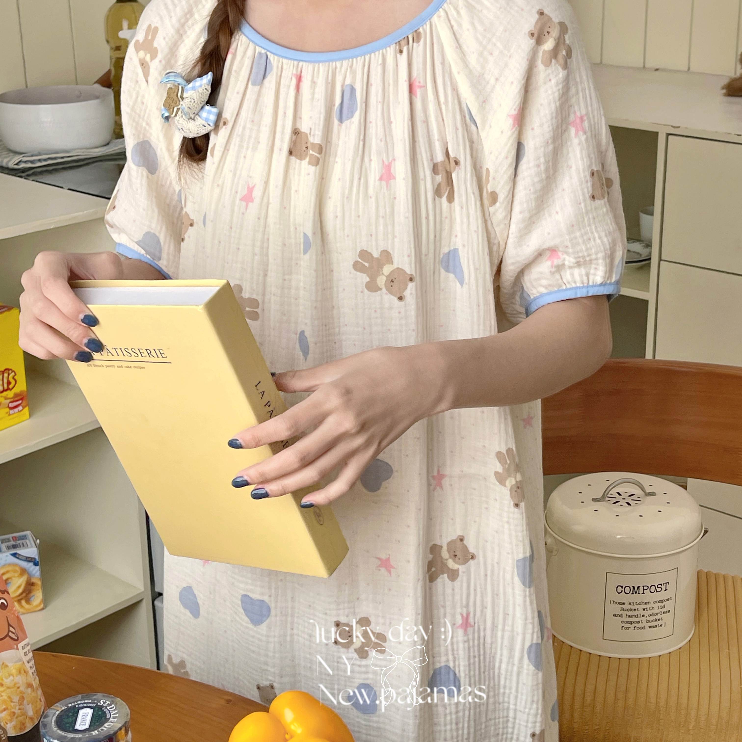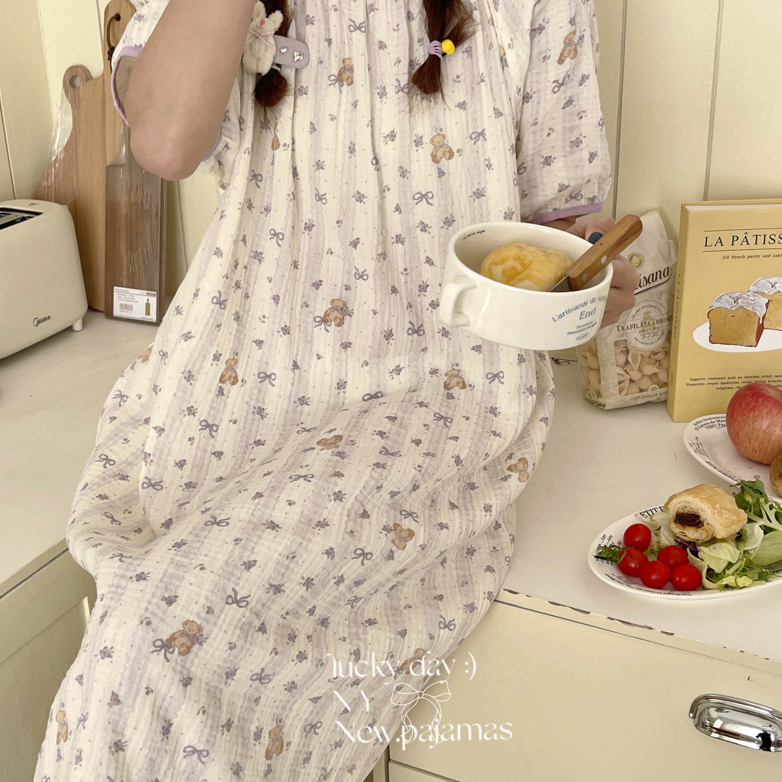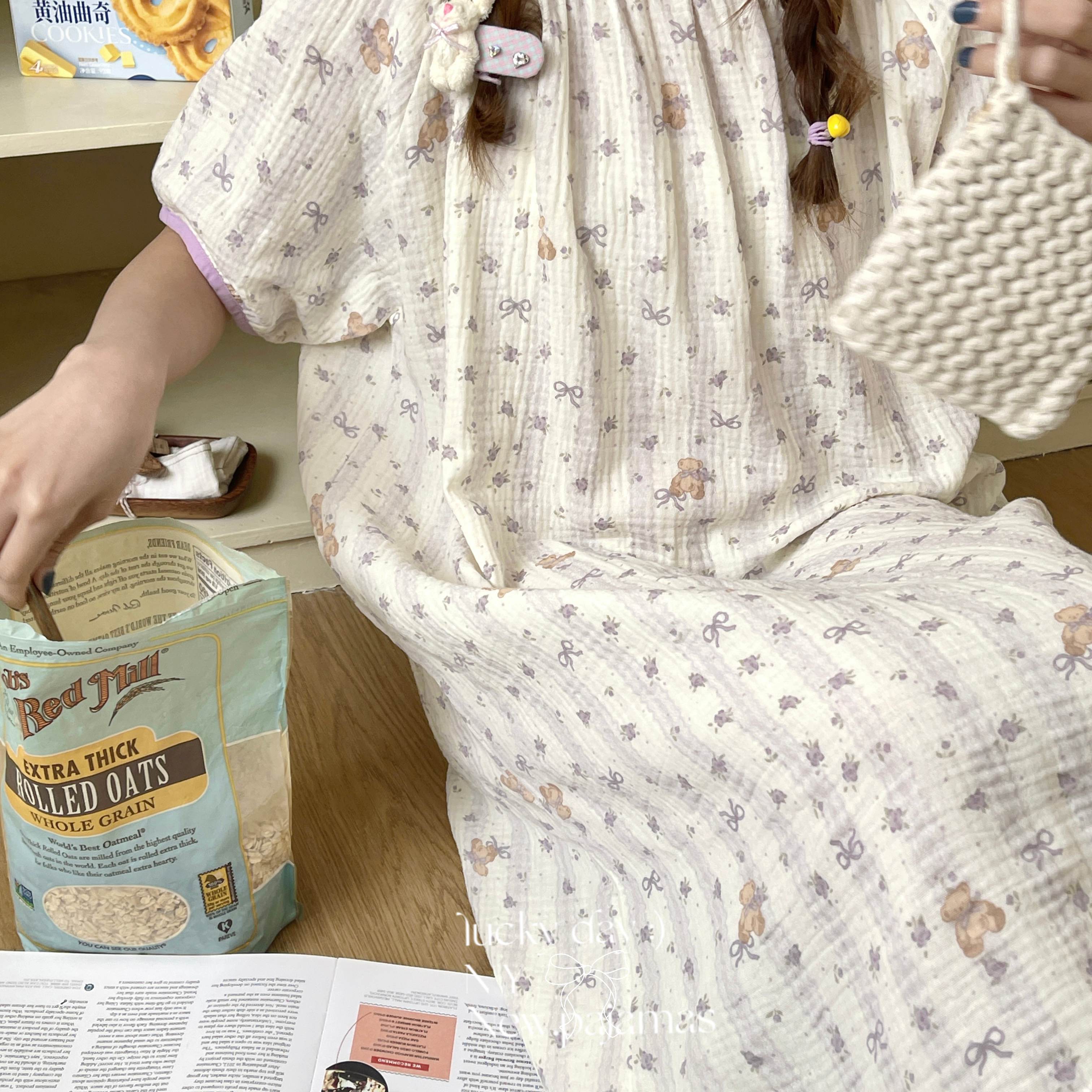 (总)纽约生活 2025新款绉布圆领开扣长袖长裤(会员-5),波比熊,黑碎花猫咪,蝴蝶结粉熊,花花狗,蓝碎花,塞纳花房