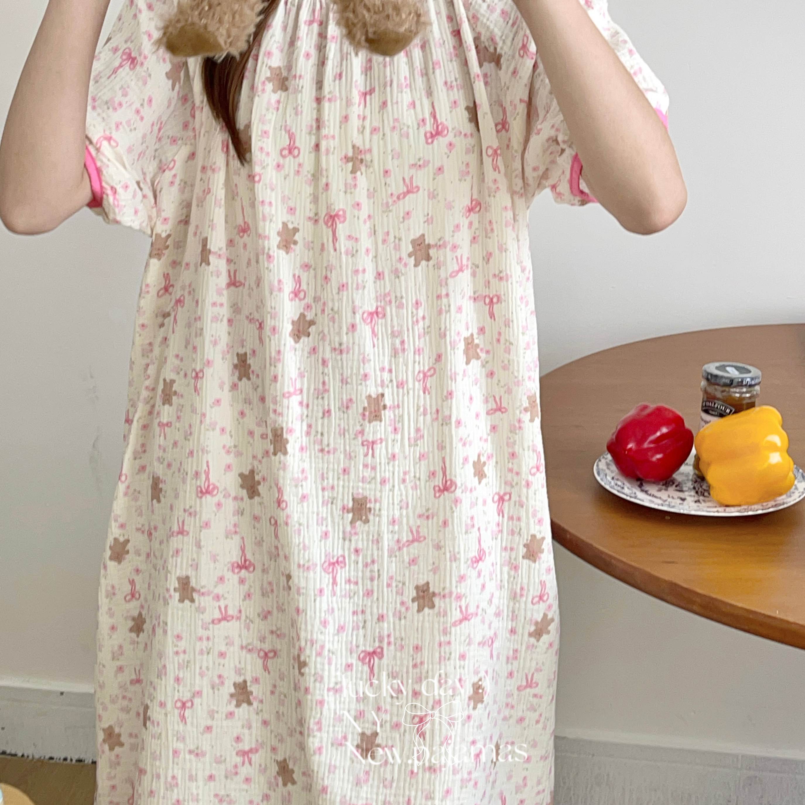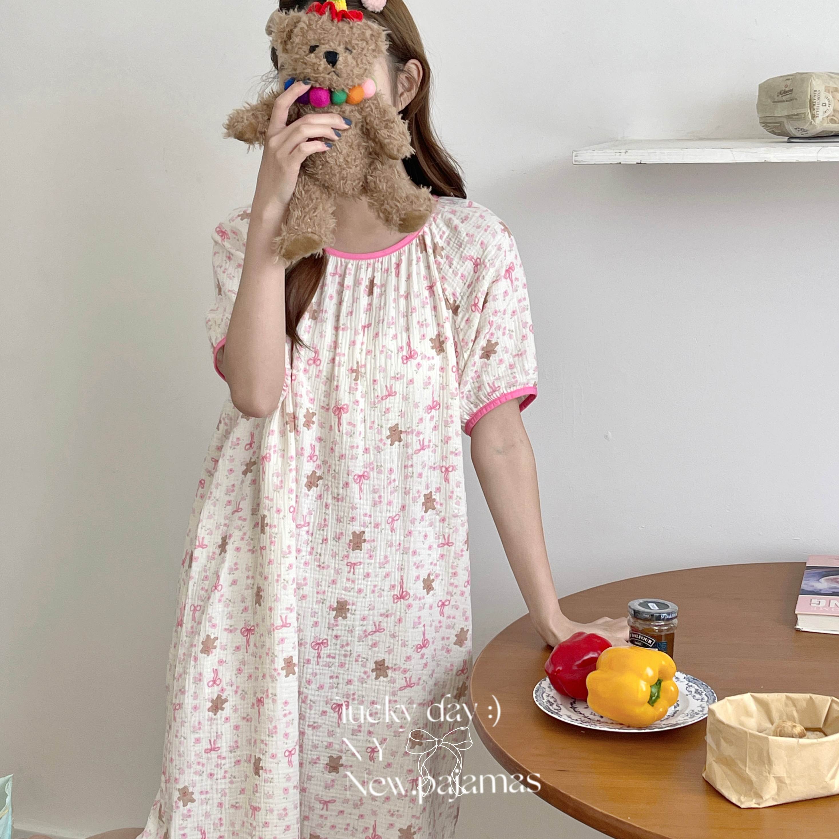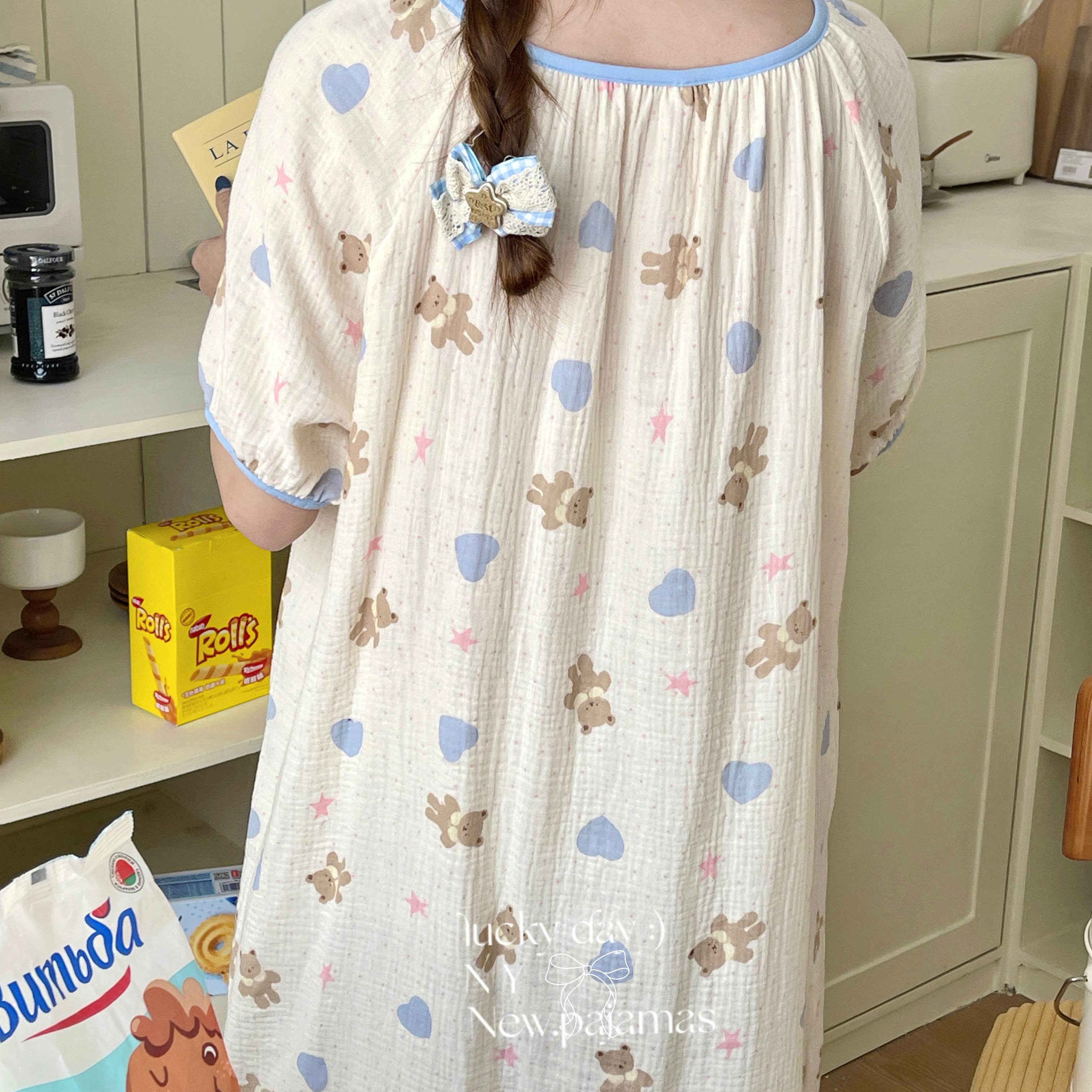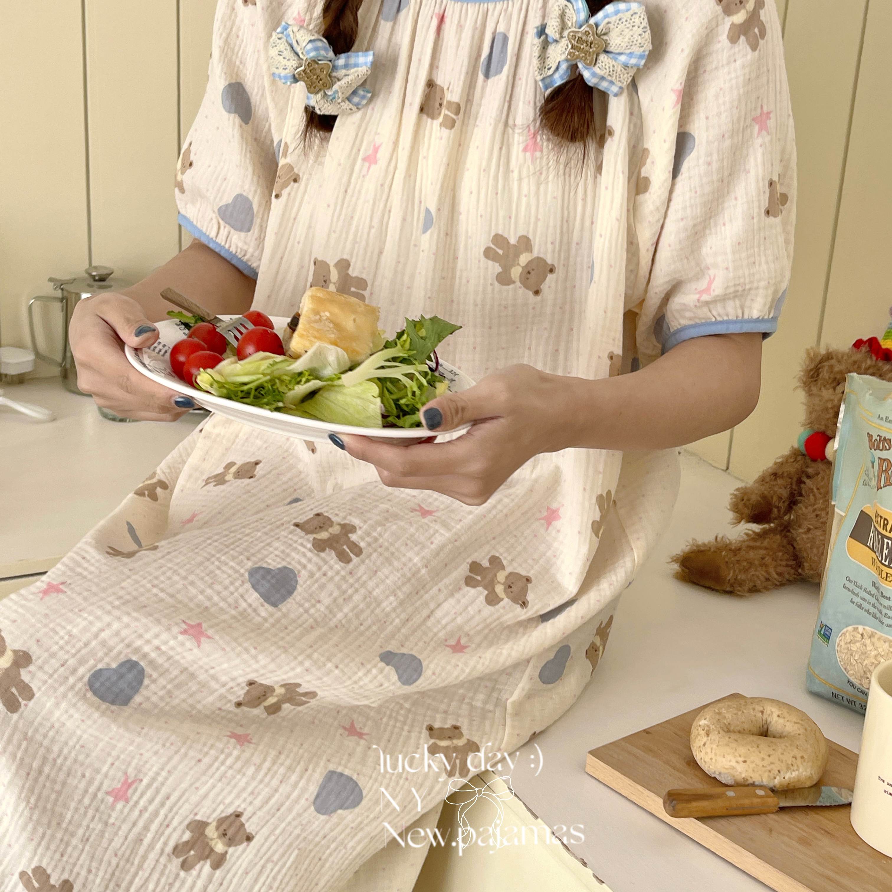 (总)纽约生活 2025新款绉布圆领开扣长袖长裤(会员-5),波比熊,黑碎花猫咪,蝴蝶结粉熊,花花狗,蓝碎花,塞纳花房