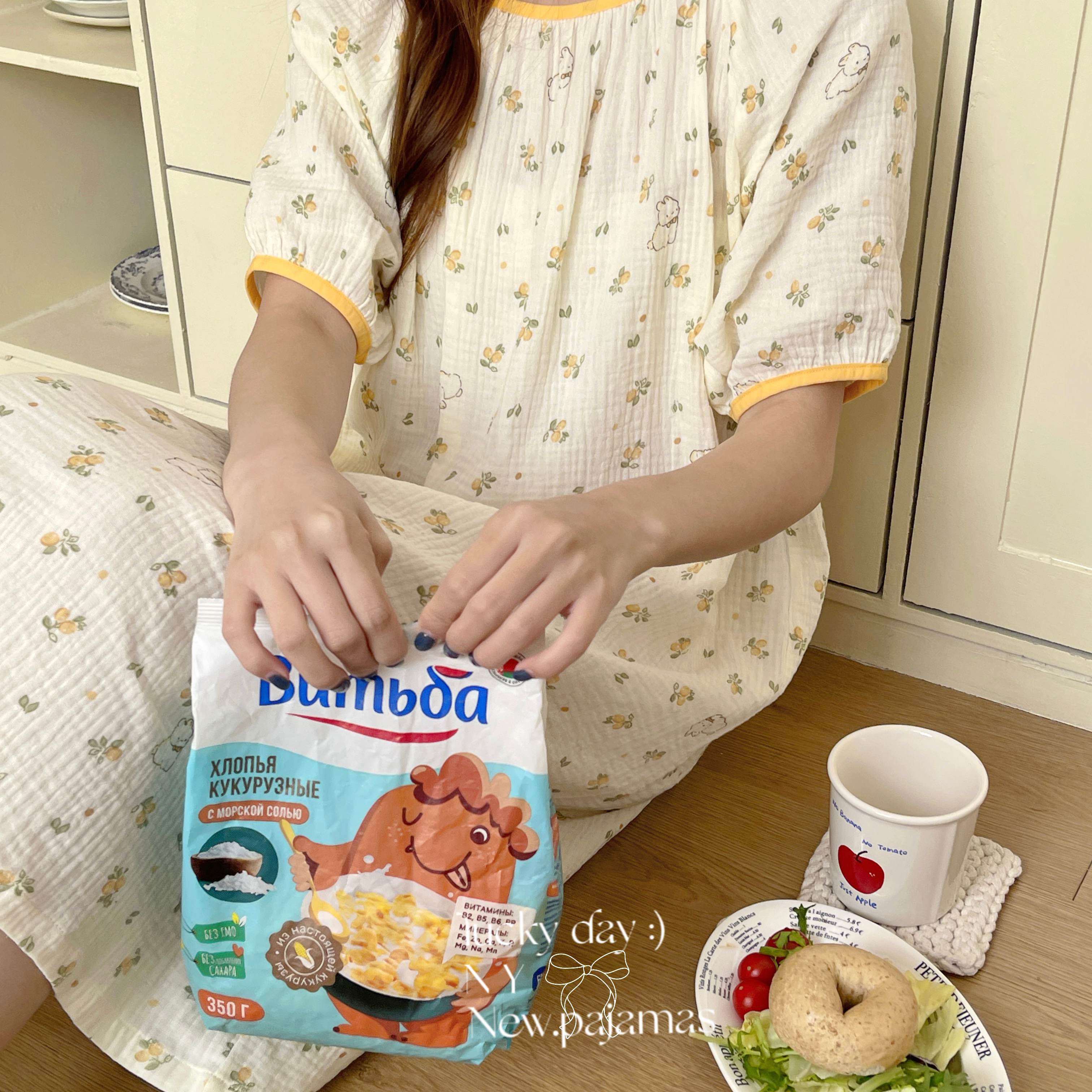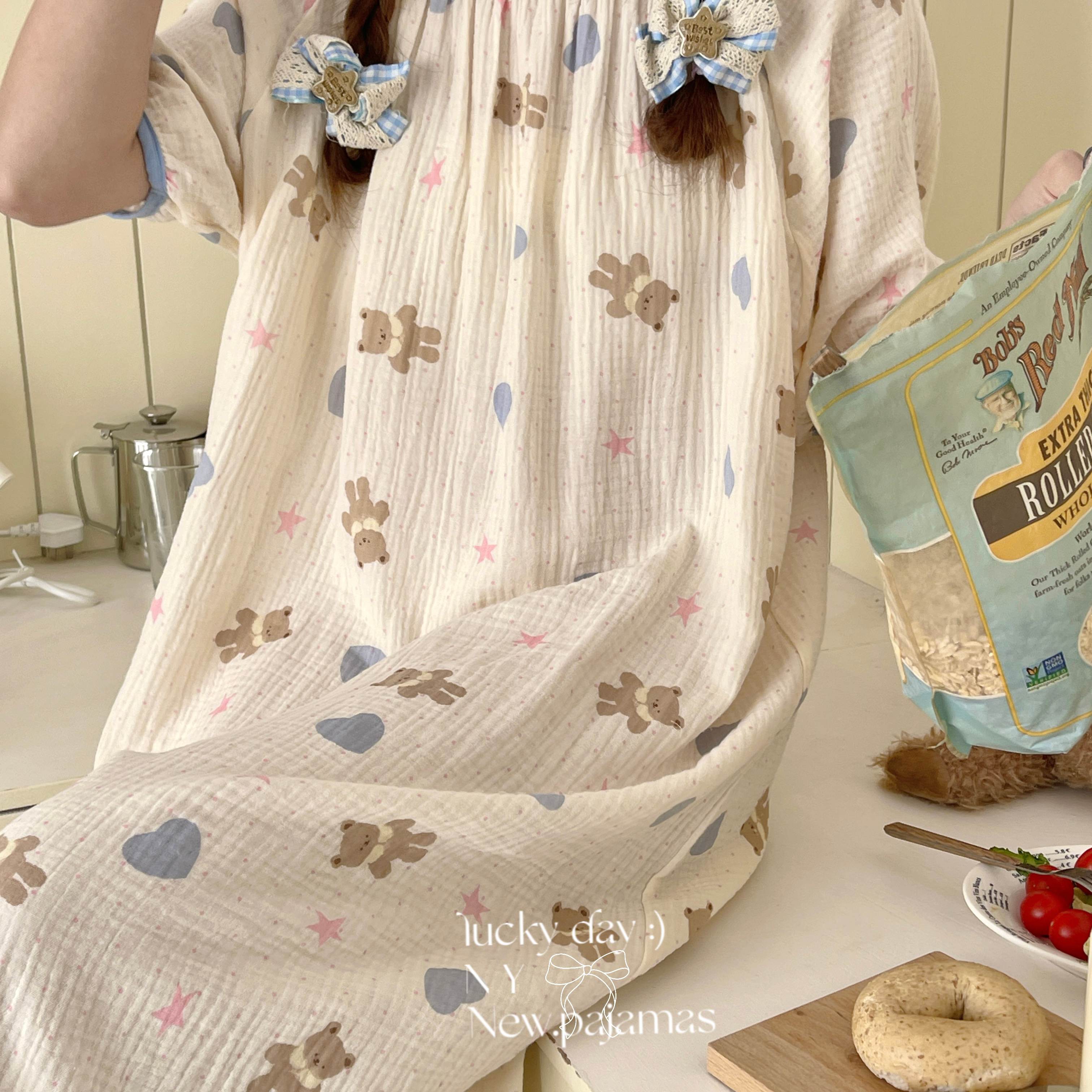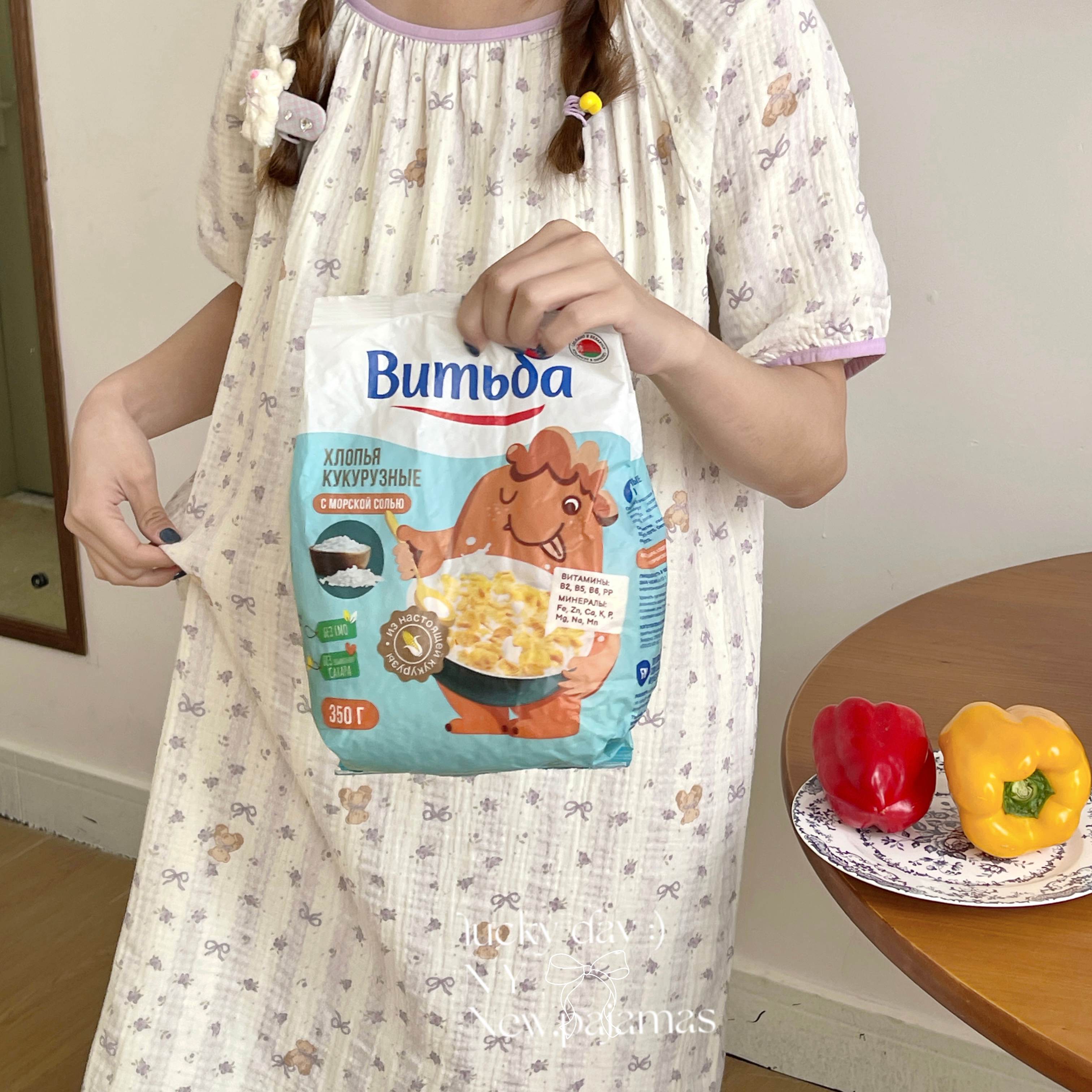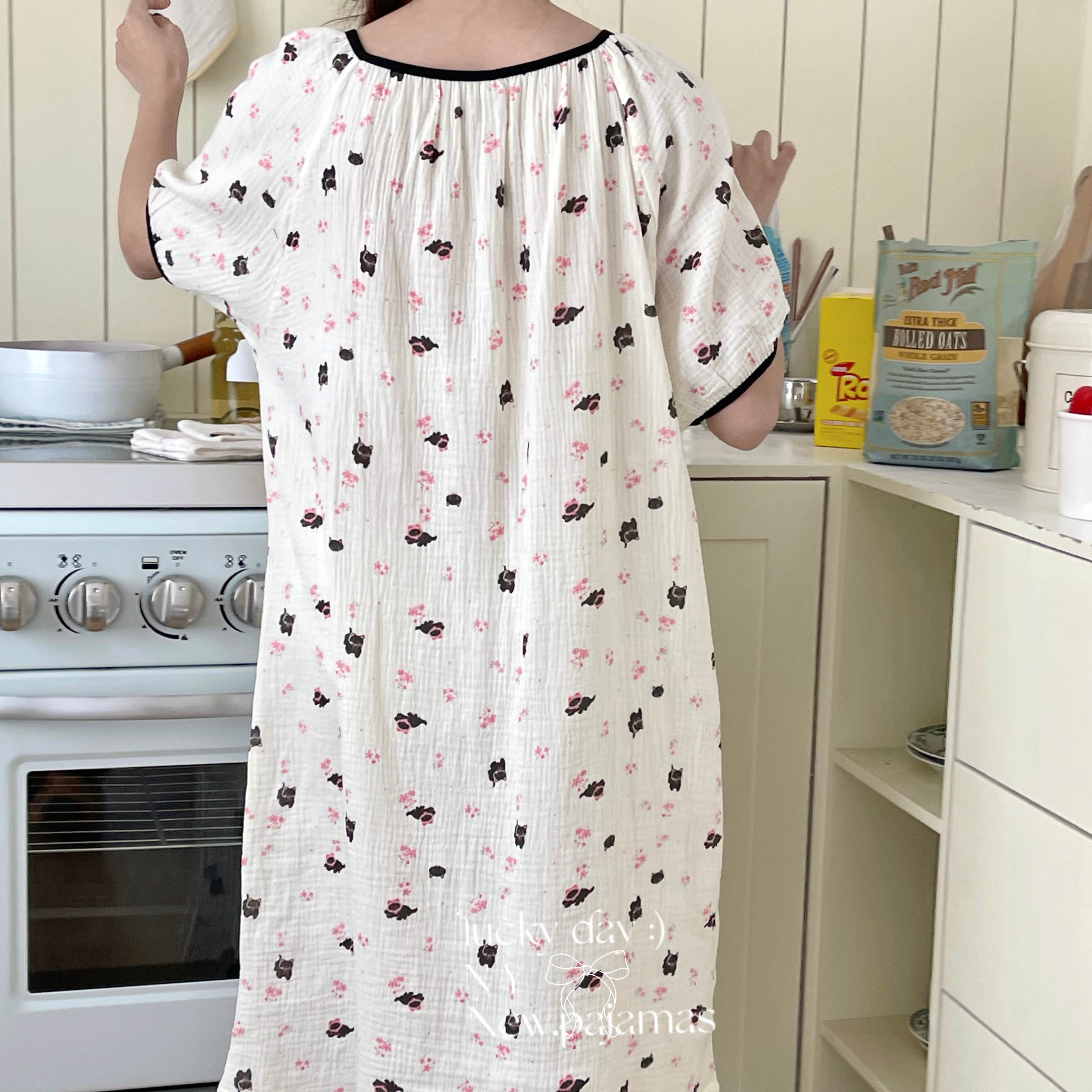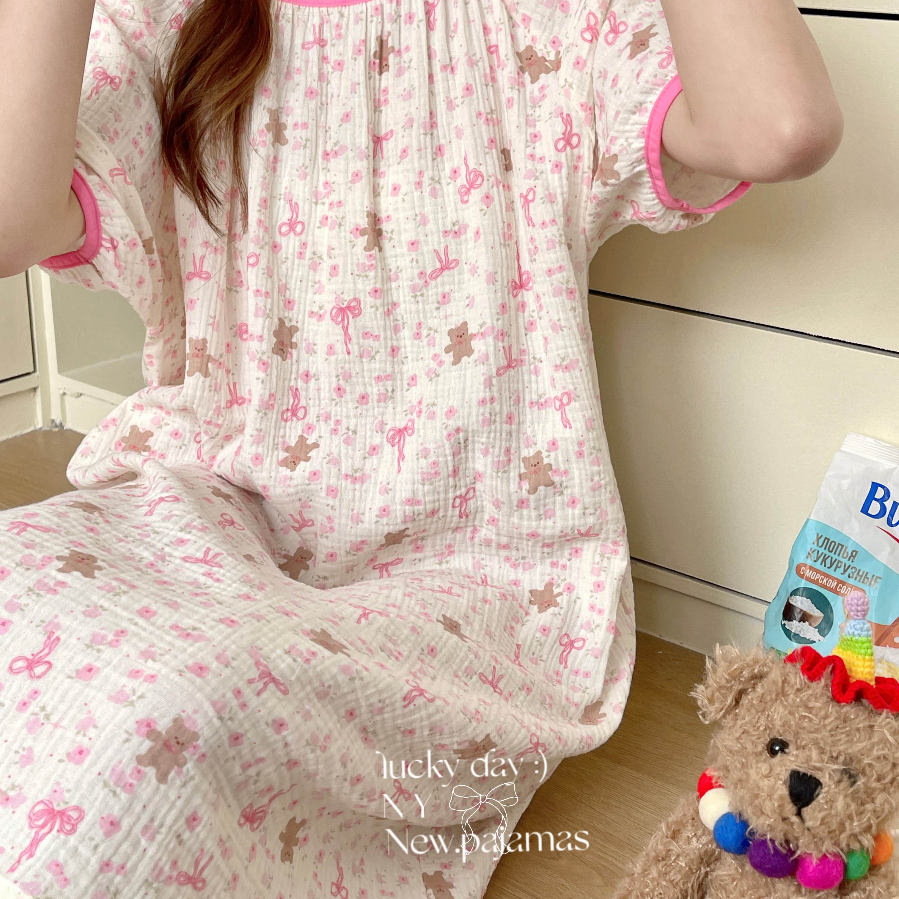 (总)纽约生活 2025新款绉布圆领开扣长袖长裤(会员-5),波比熊,黑碎花猫咪,蝴蝶结粉熊,花花狗,蓝碎花,塞纳花房