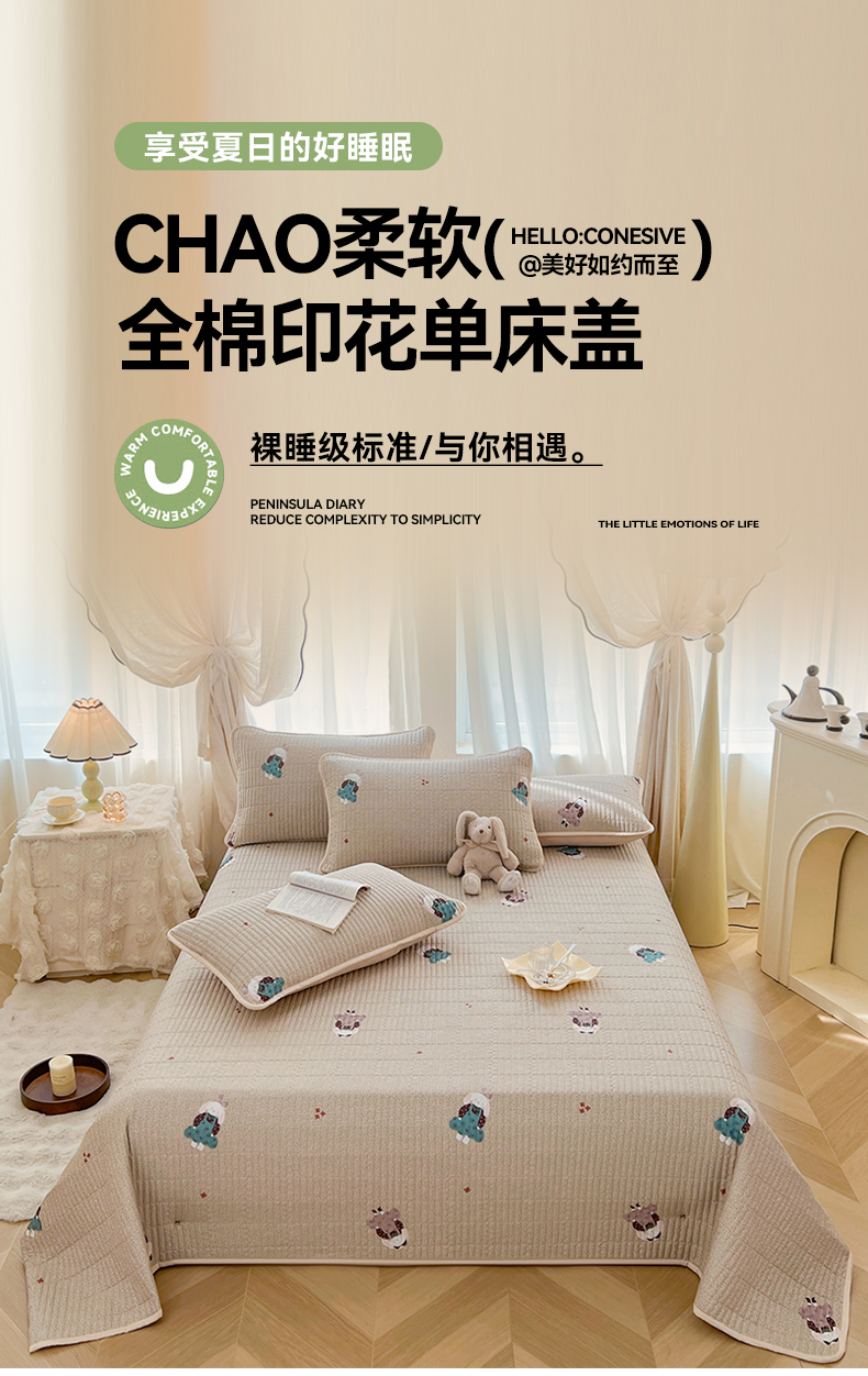 • 91家纺网 家纺一手货源 找家纺 恒爱 2025新款全棉印花单床盖 安哥拉公主-浅咖