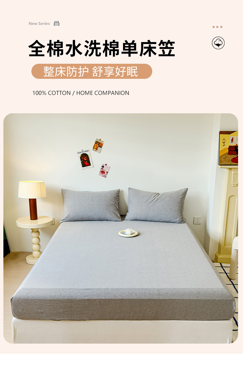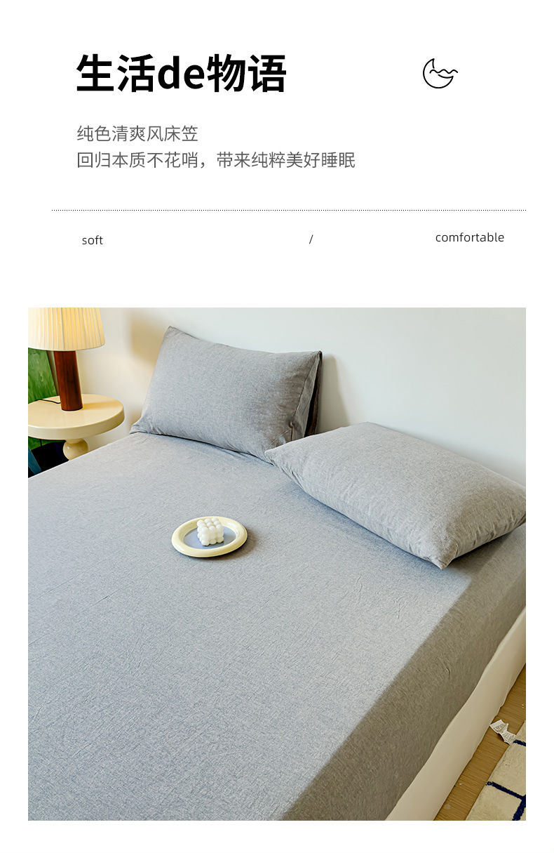 2025新款全棉色织水洗棉床单床笠 青灰 床笠款
