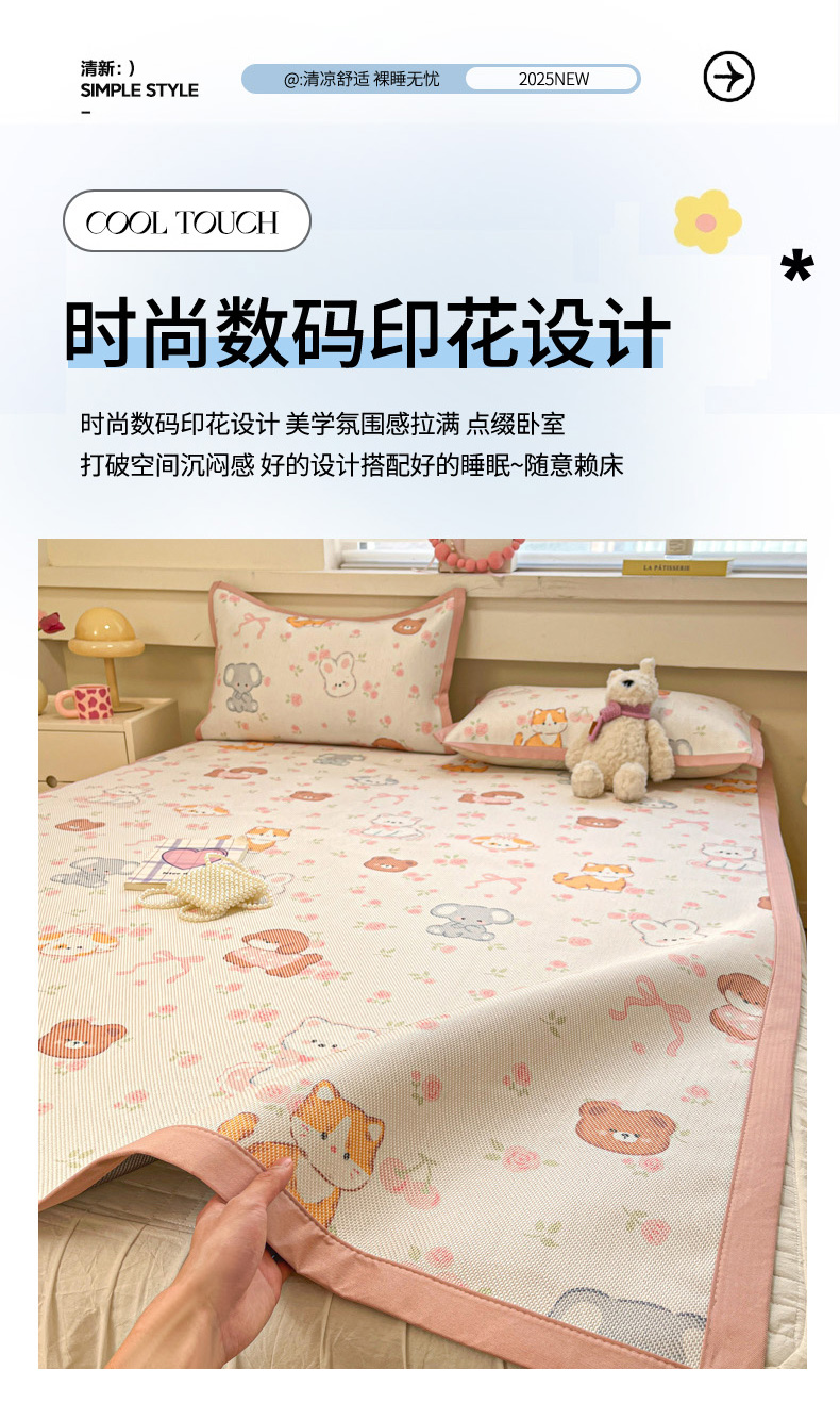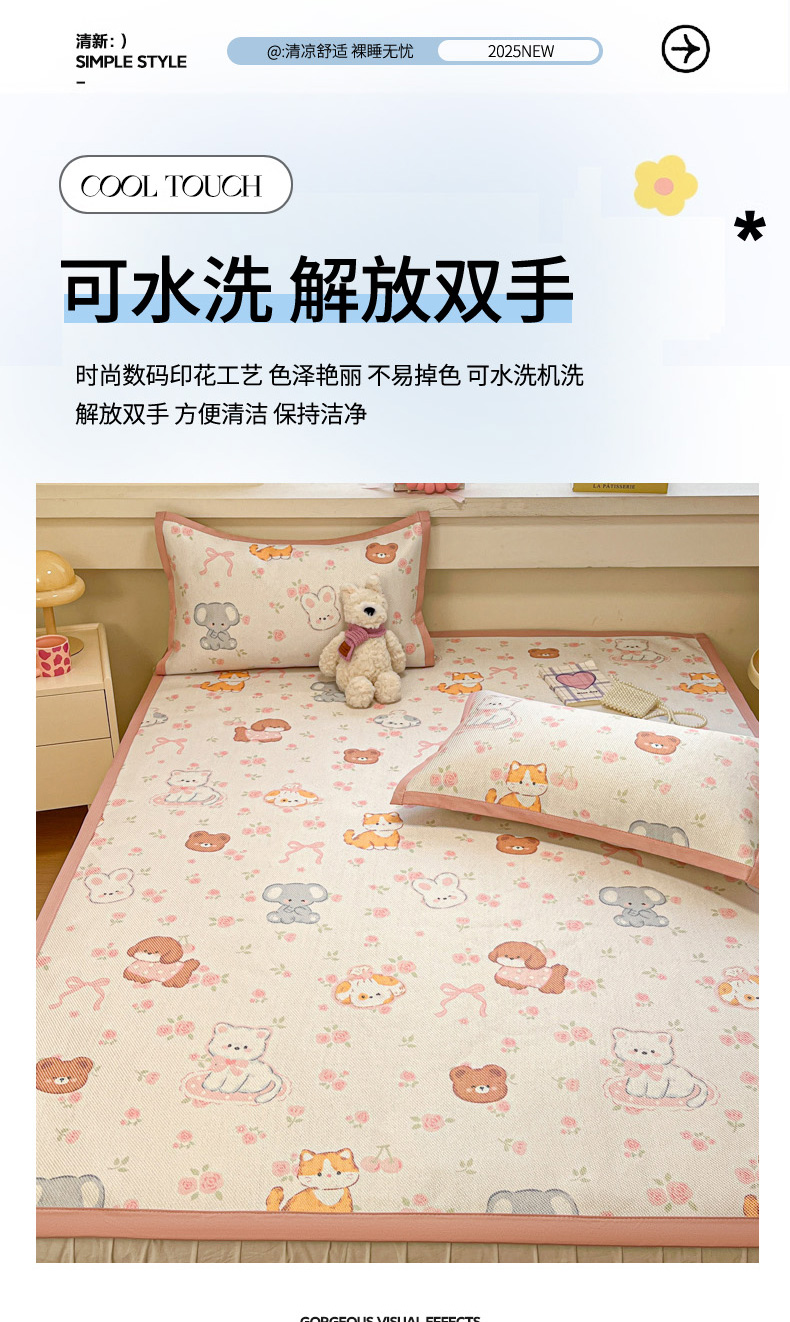 慕澄家纺 2025新款小清新印花真冰藤系列凉席床席款 床席-彩色小萌物