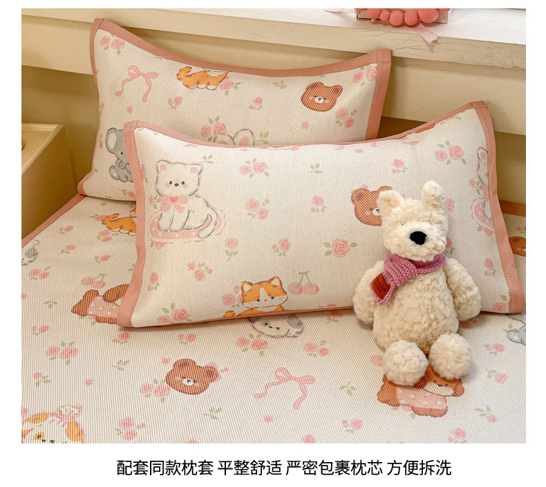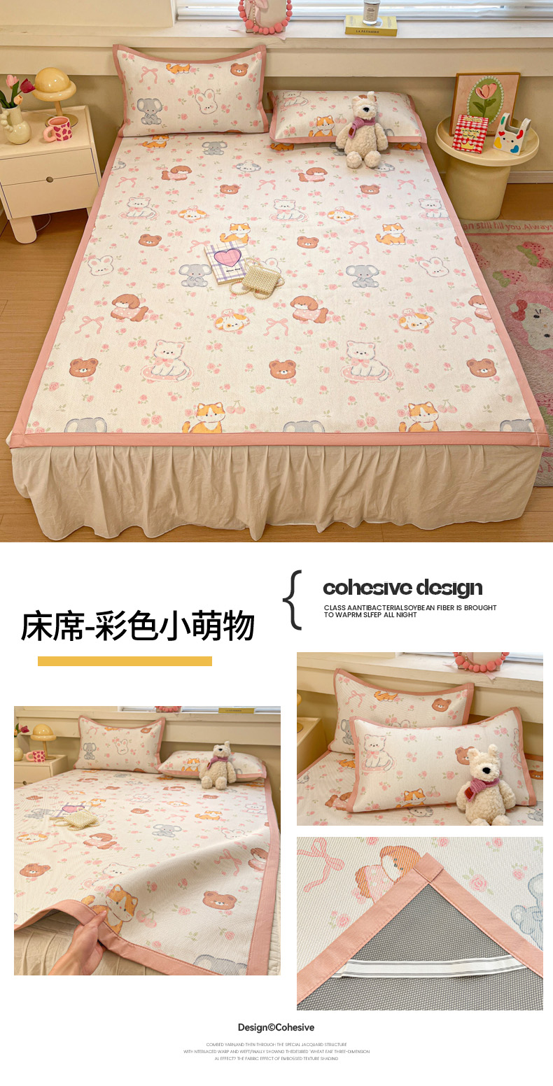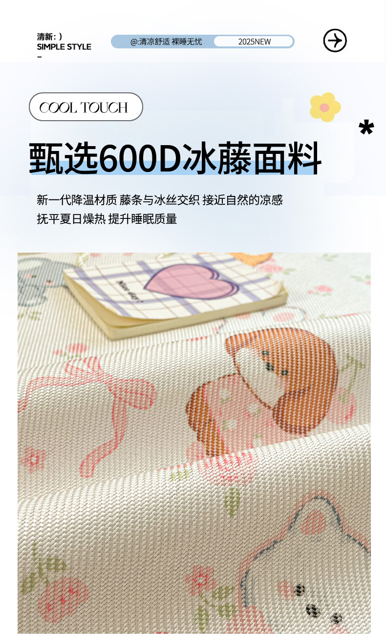 商品名称:慕澄家纺 2025新款小清新印花真冰藤系列凉席床席款 床席-彩色小萌物