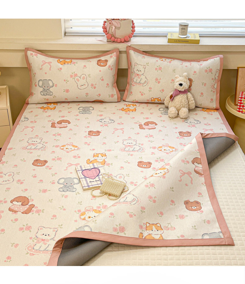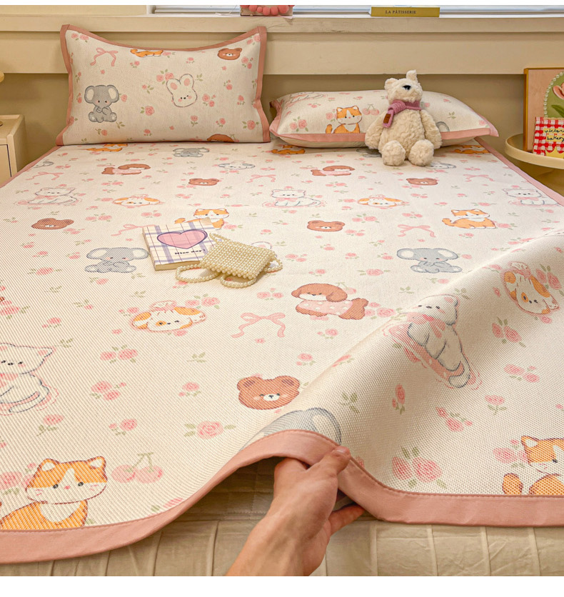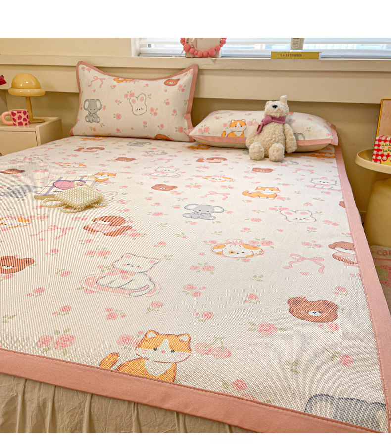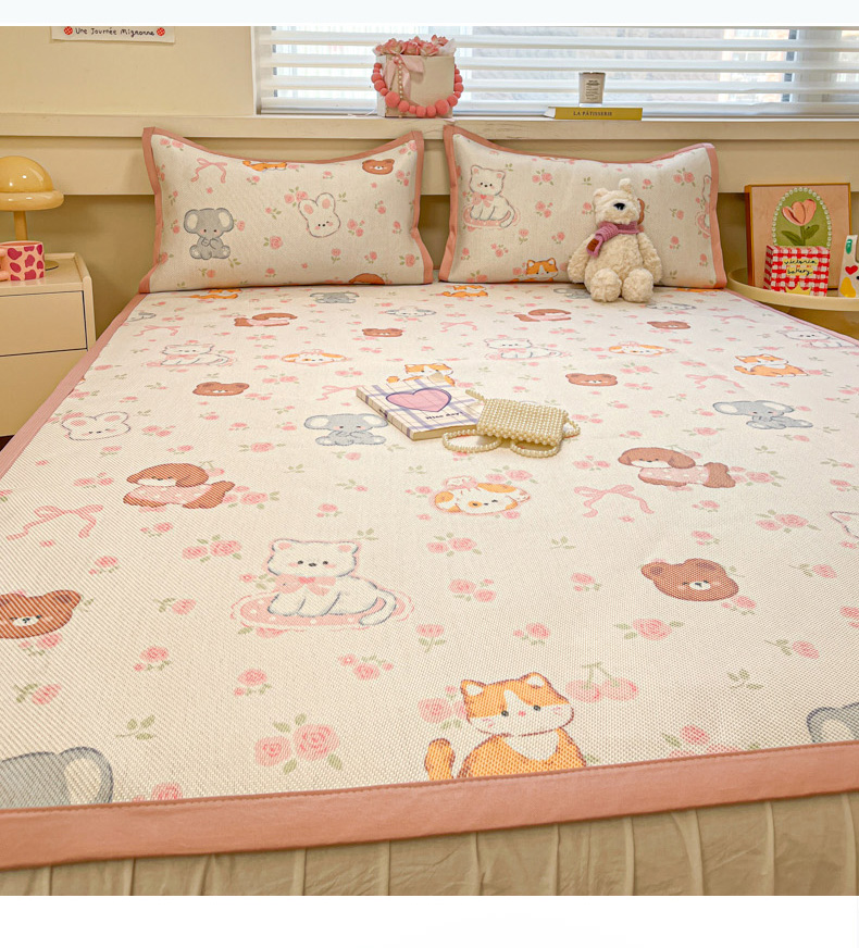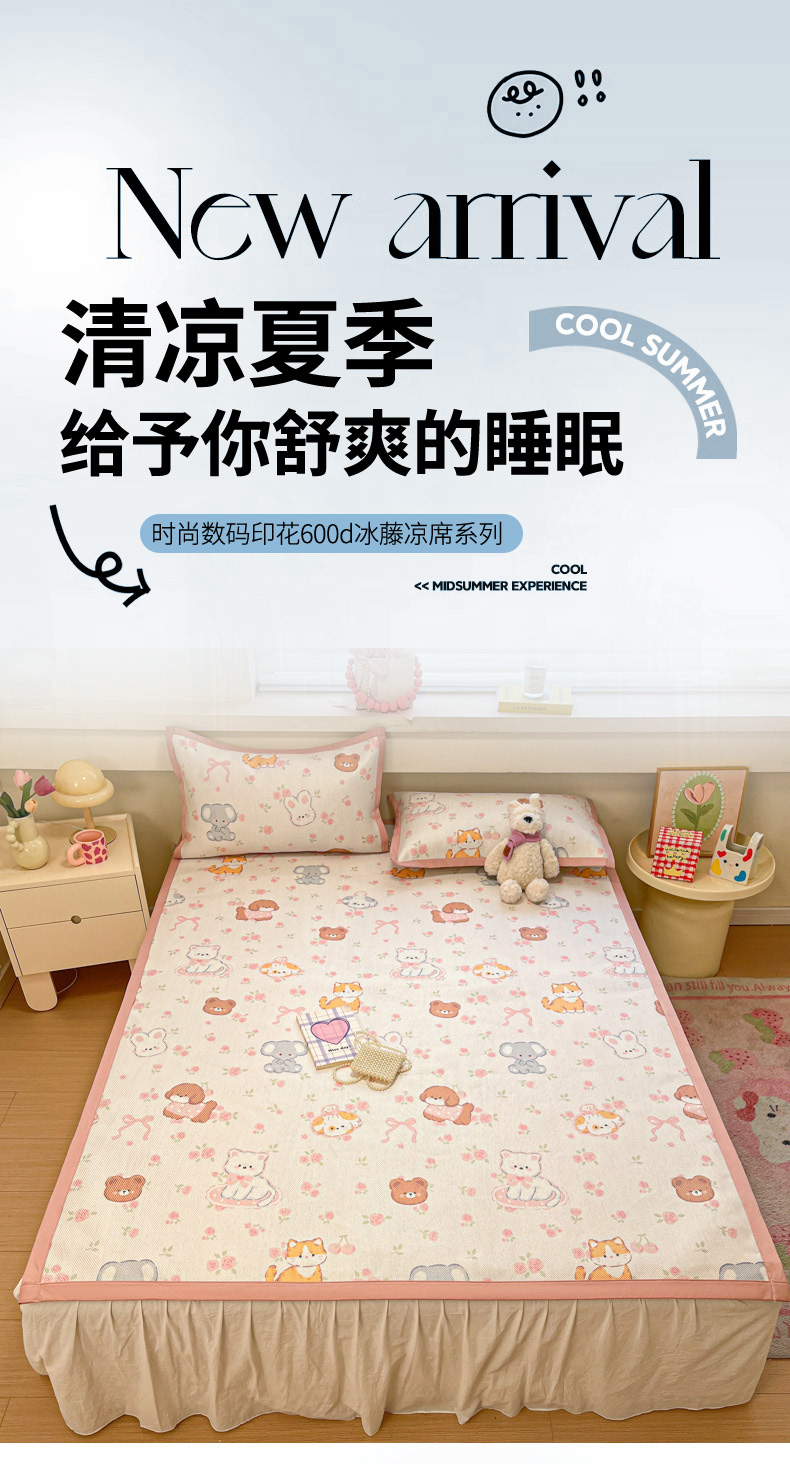 商品名称:慕澄家纺 2025新款小清新印花真冰藤系列凉席床席款 床席-彩色小萌物