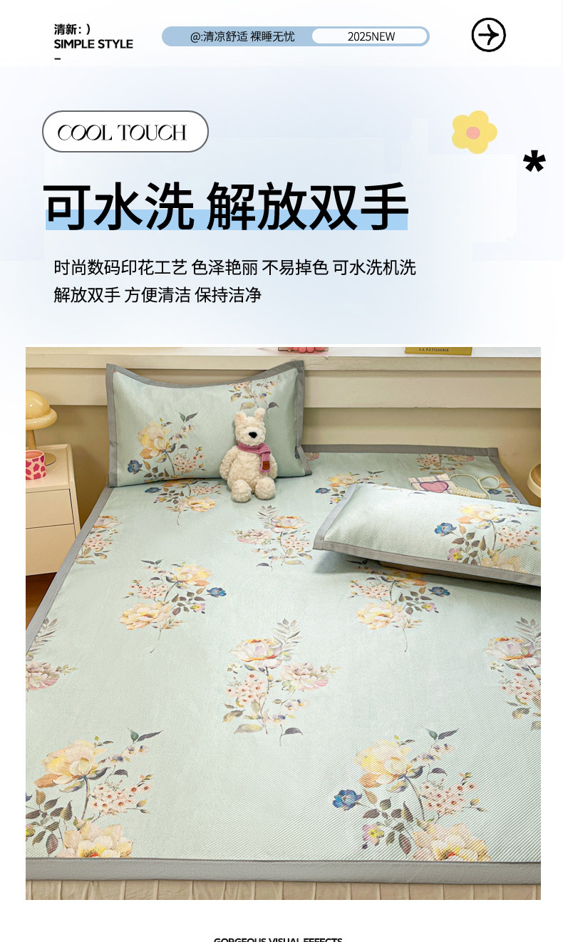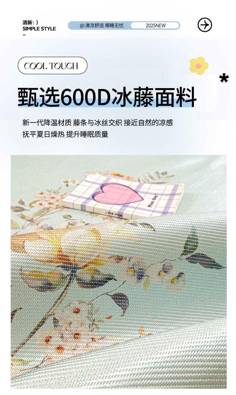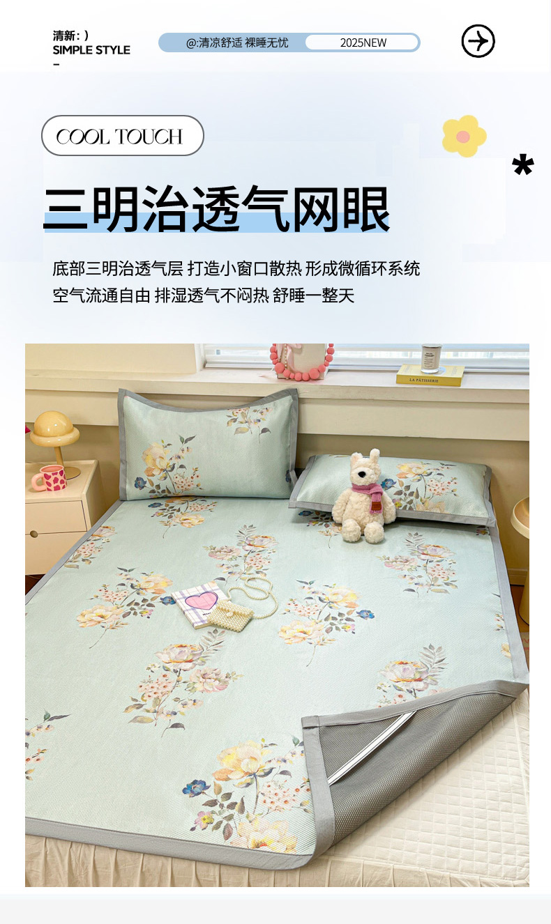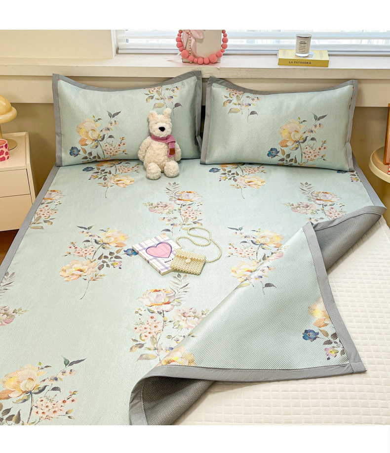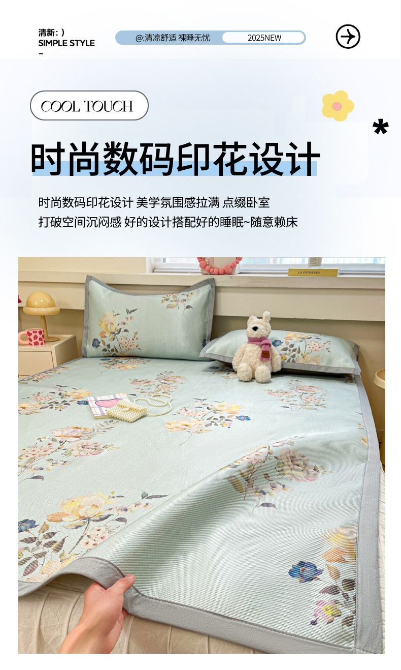 慕澄家纺 2025新款小清新印花真冰藤系列凉席床席款 床席-陌上花开