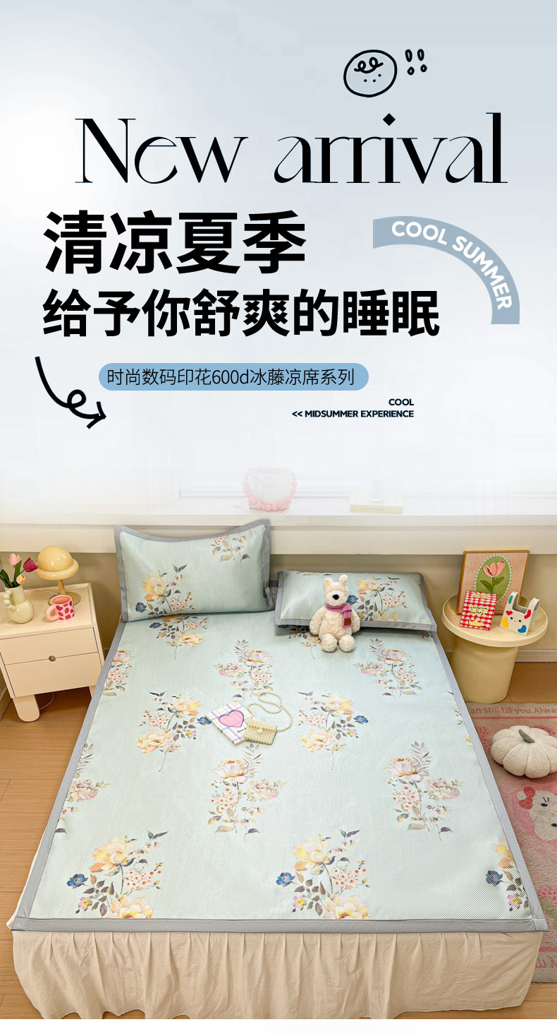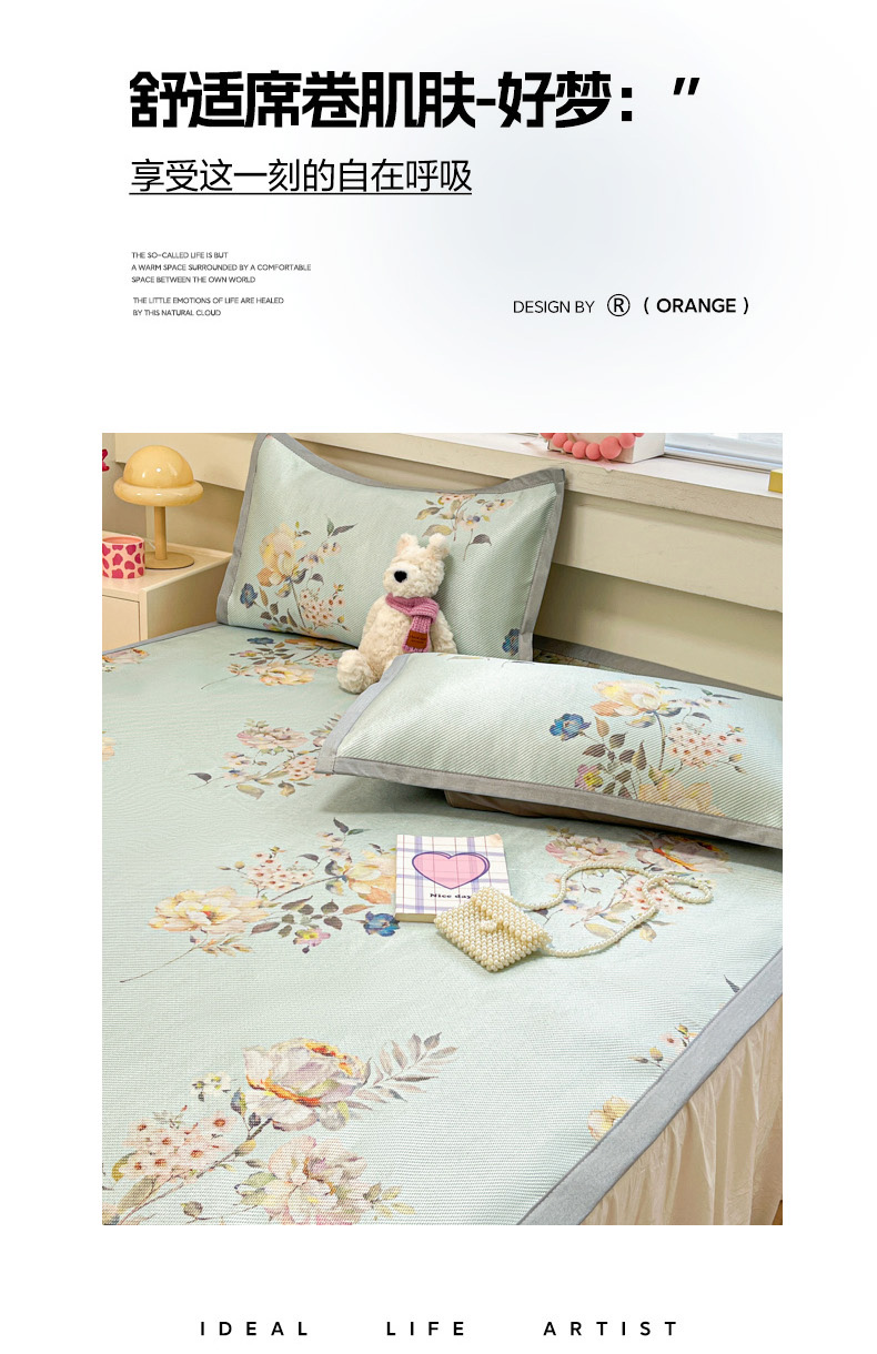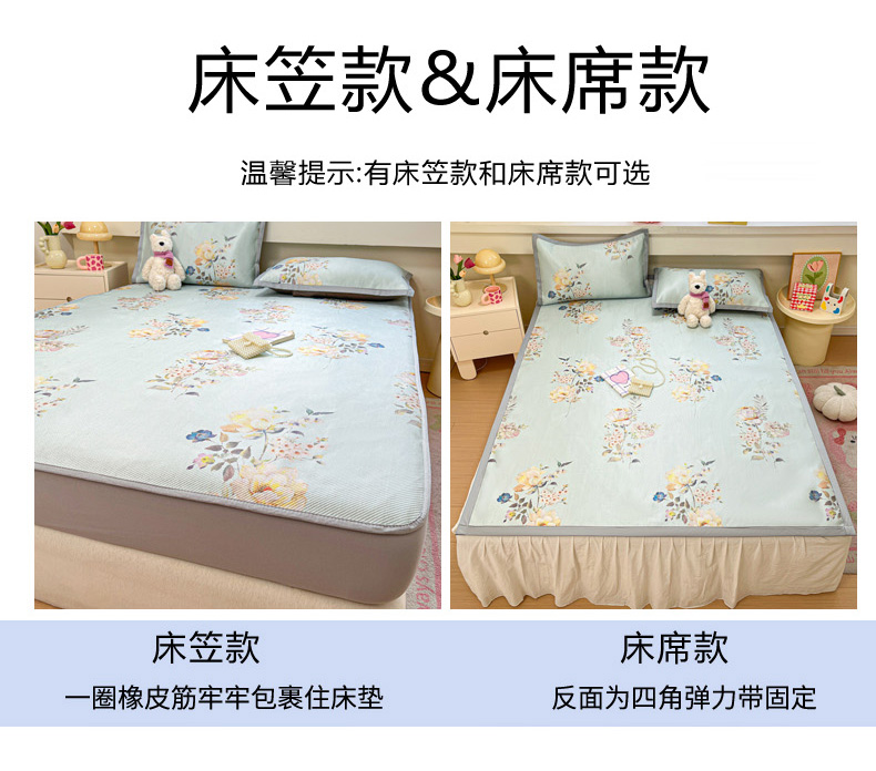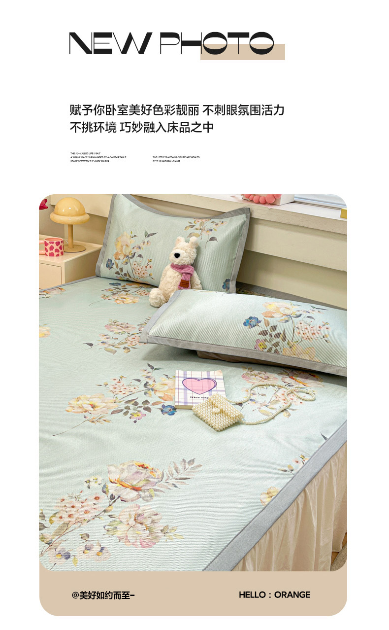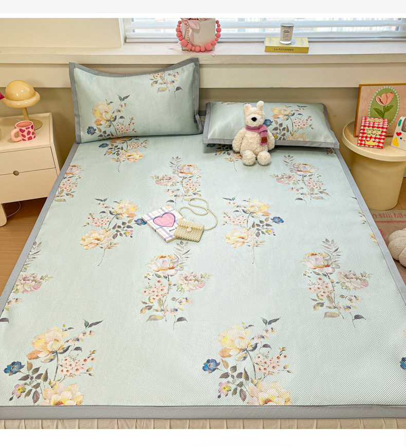 商品名称:慕澄家纺 2025新款小清新印花真冰藤系列凉席床席款 床席-陌上花开
