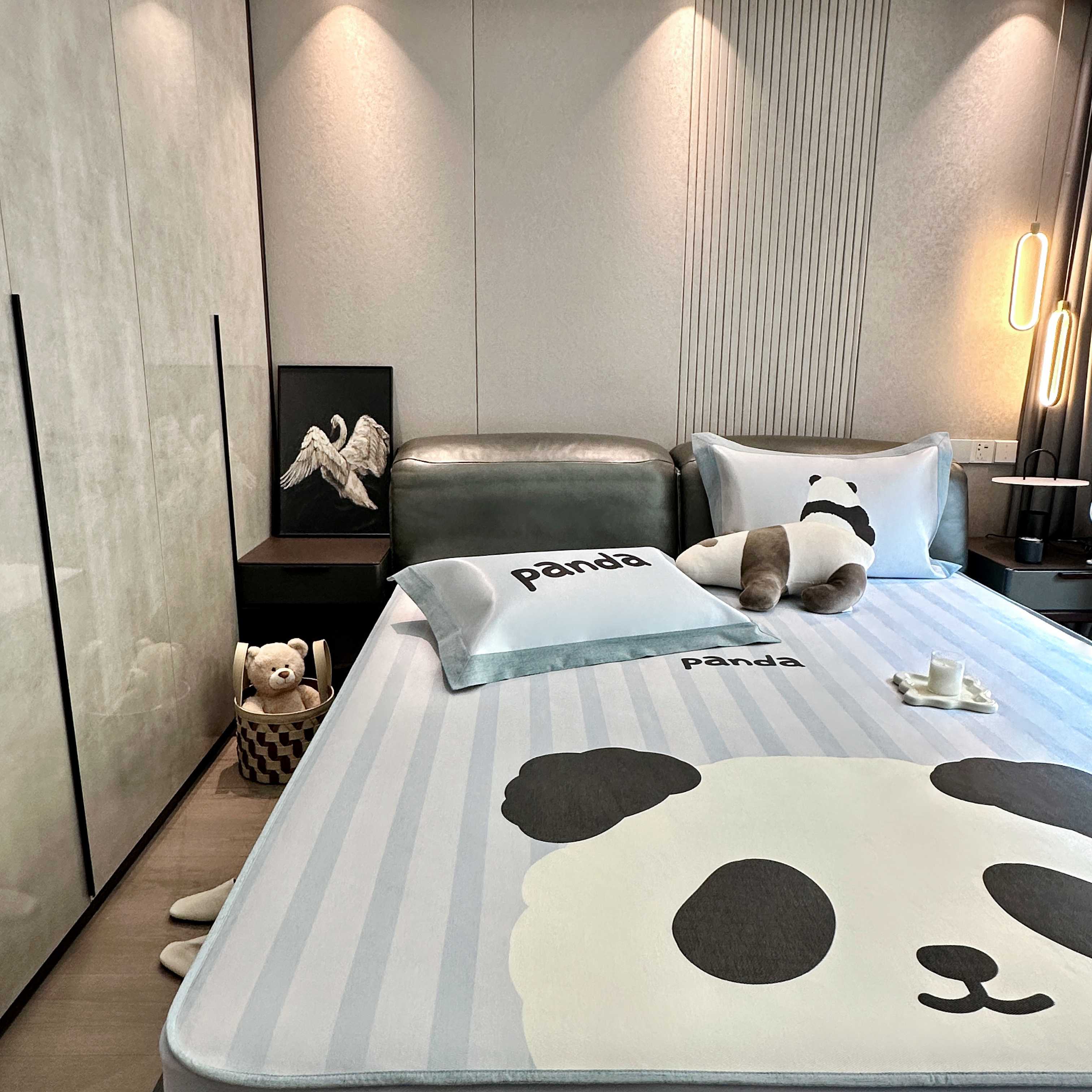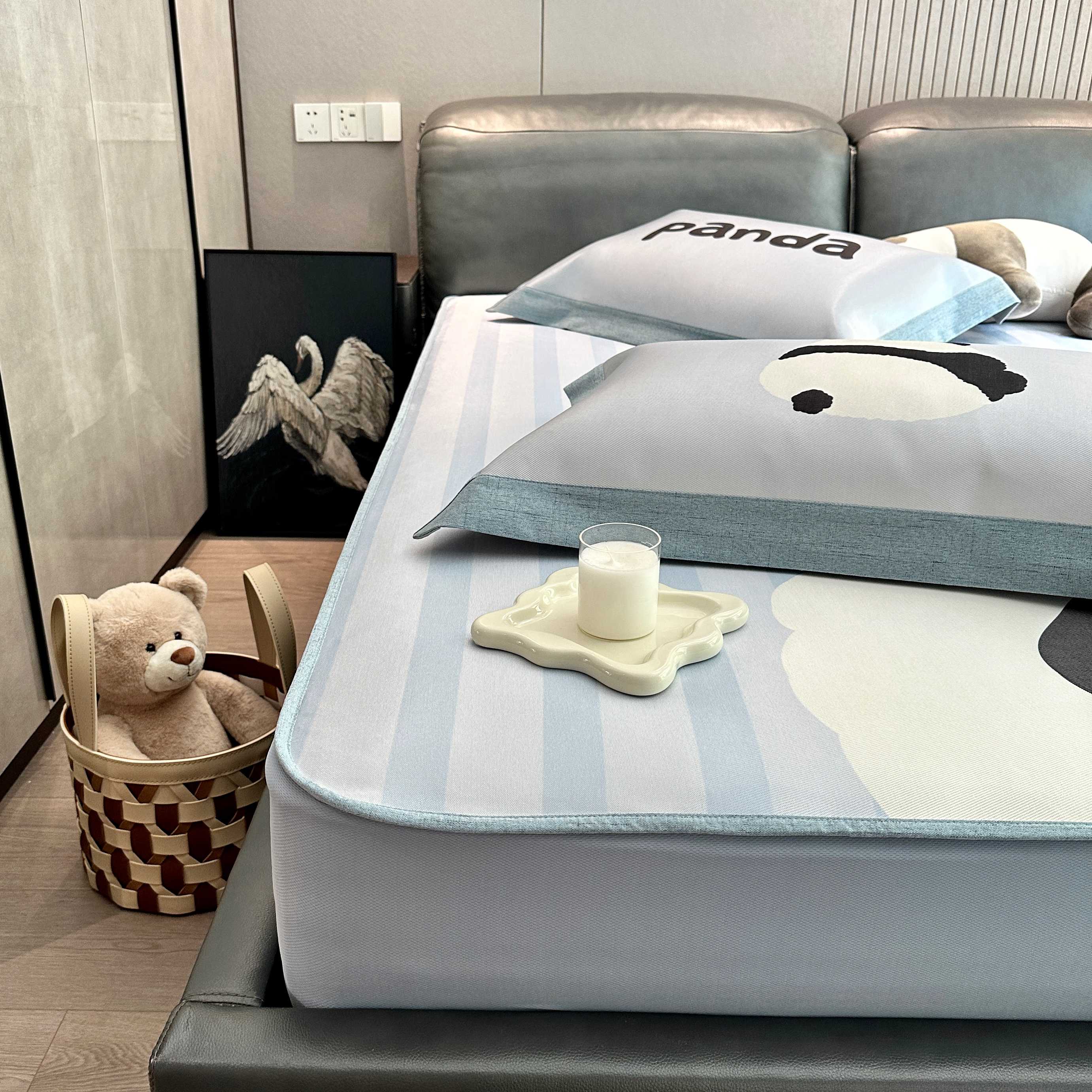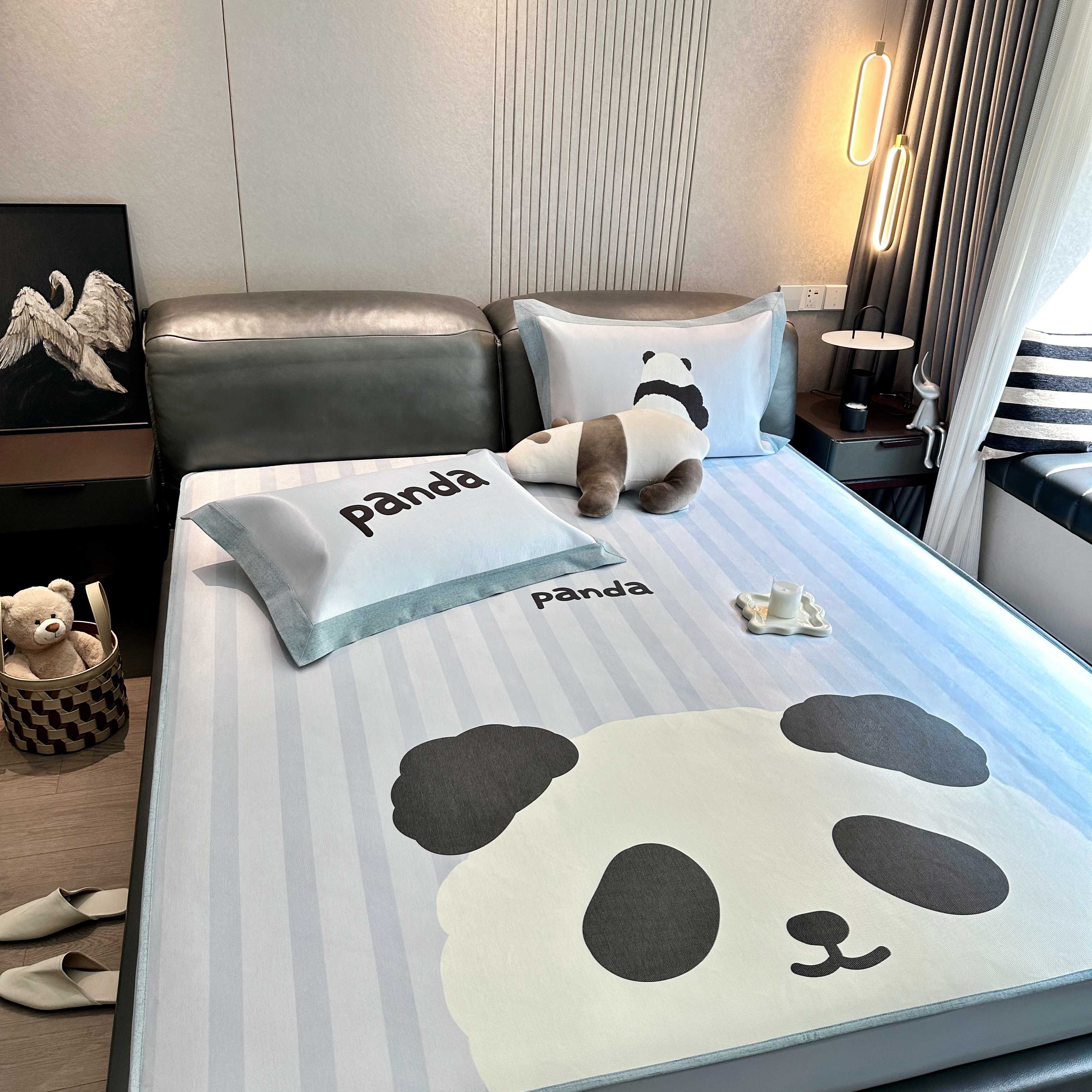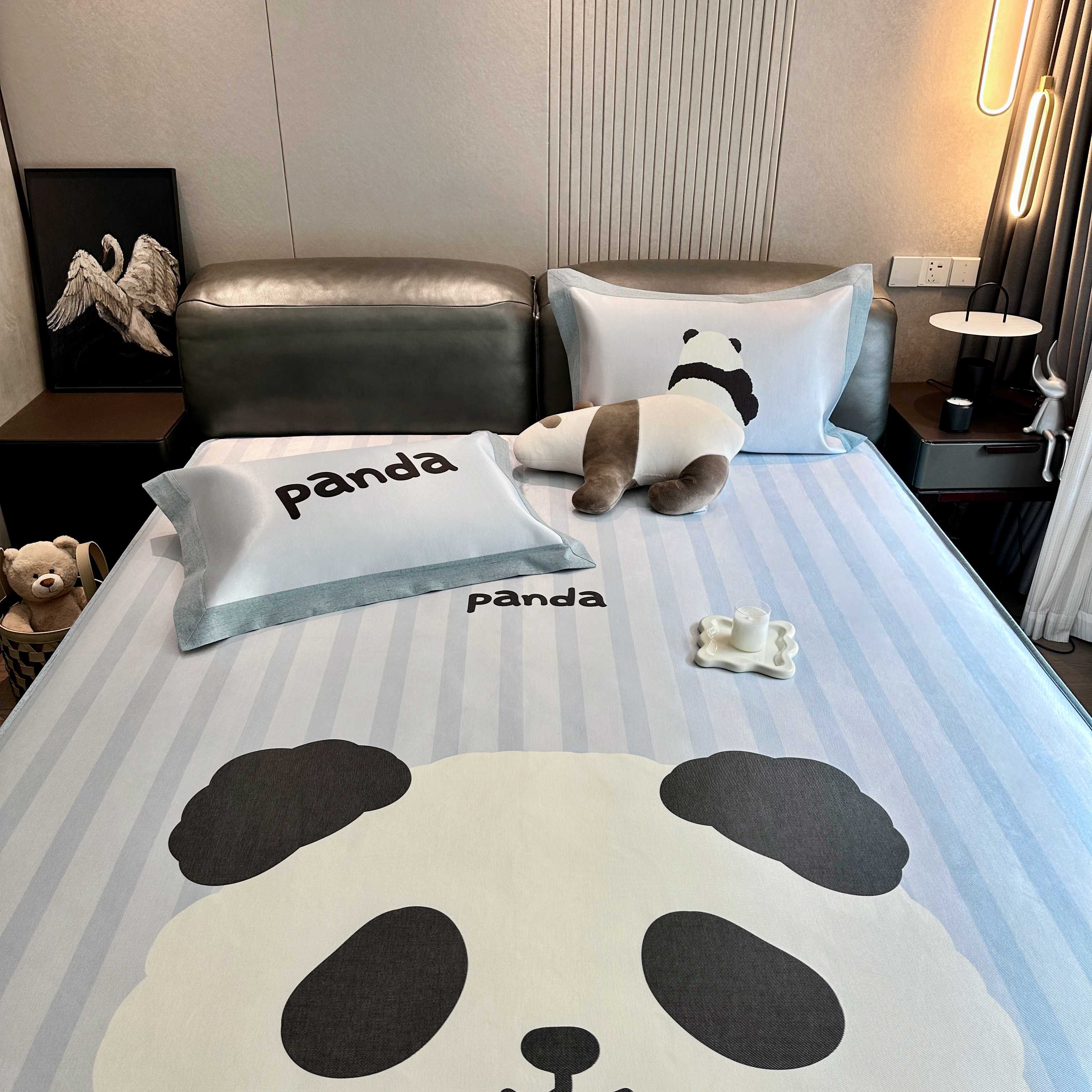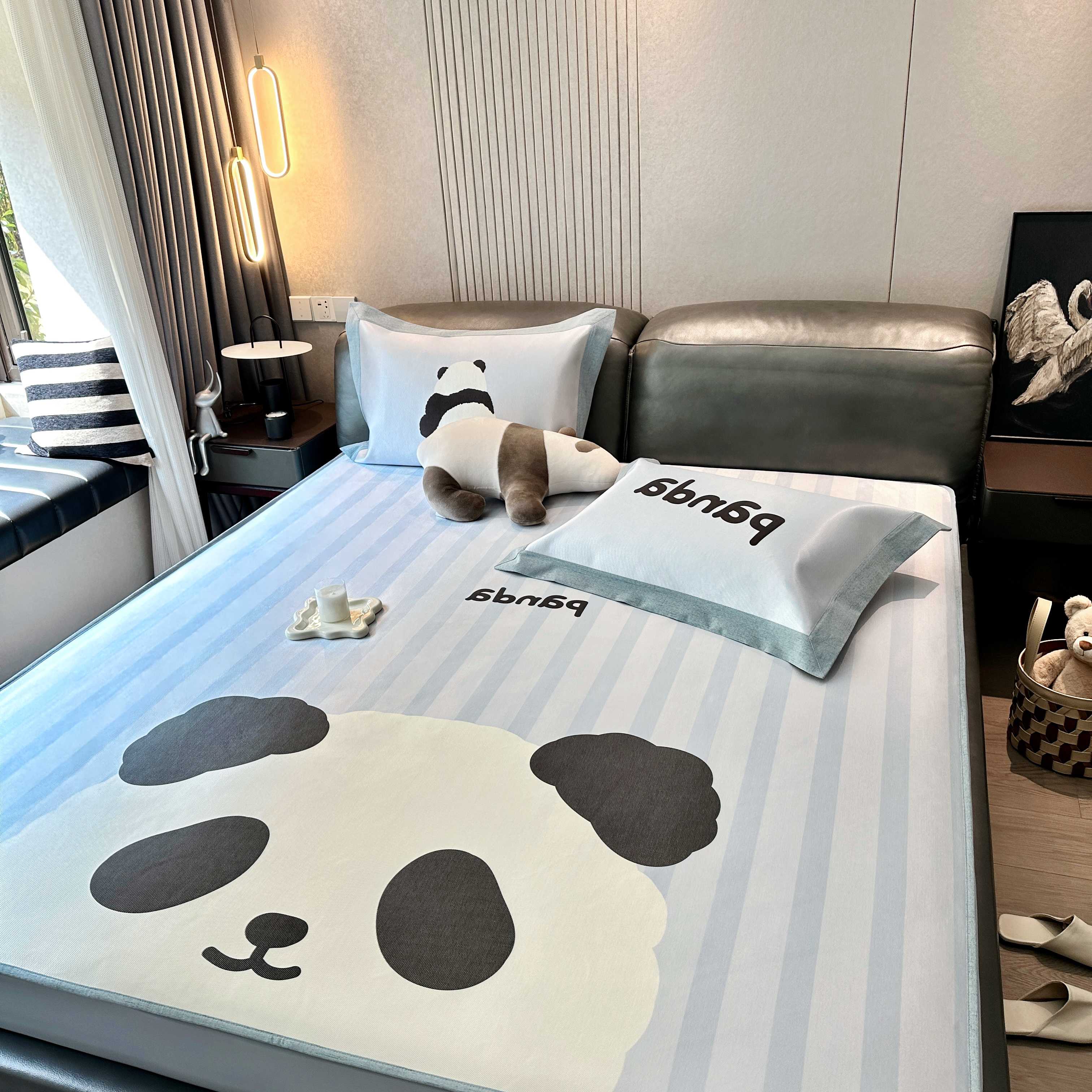 商品名称:JUICY 橘滋家纺 2025新款夏日高端轻奢数码冰丝奢简高级凉席床笠 熊猫胖达