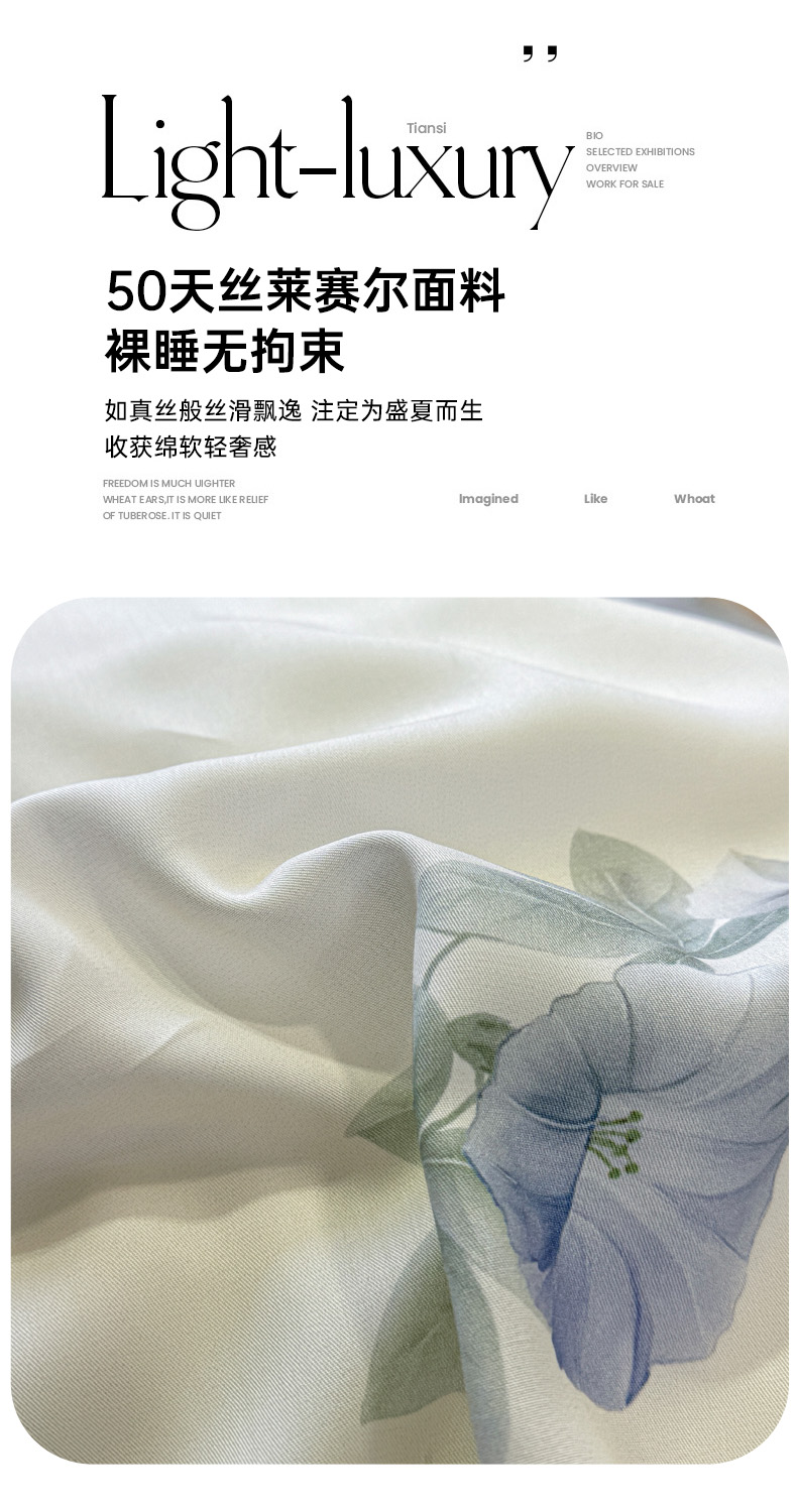 (总)芊寻家居 2025新款50支天丝数码麻绳款夏被四件套,翠影绿,蝶恋花紫,花仙子粉,华意盈香粉,静谧灰,流年兰,洛丽塔米,玫瑰雅韵,远山黛兰绿