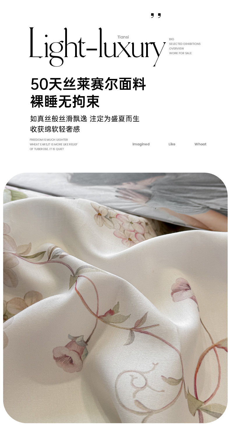 (总)洺兰家居 2026年新疆长绒棉100支天丝棉高端工艺款床单床笠四件套床上用品,淡若清香,陌上花开,羽墨