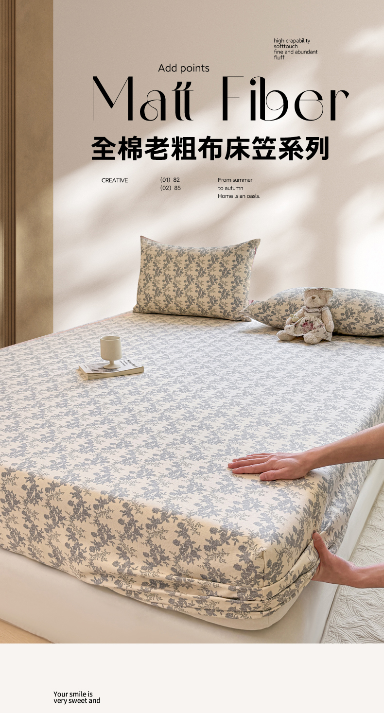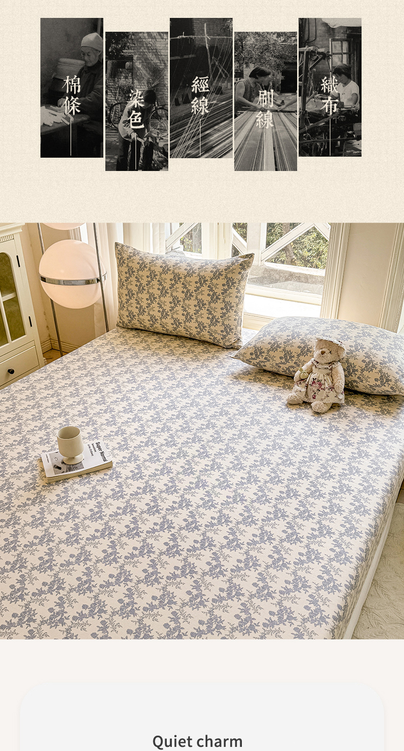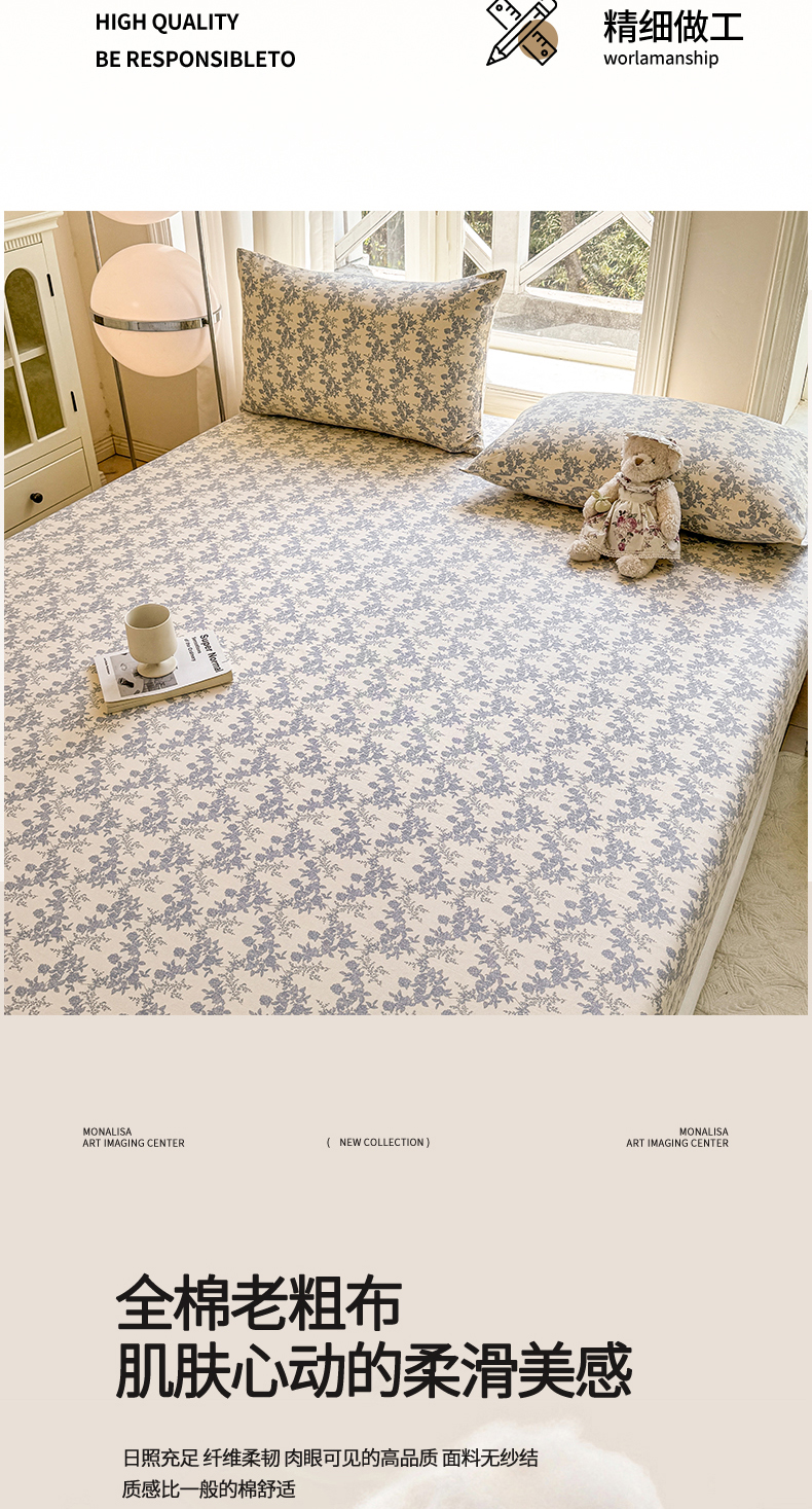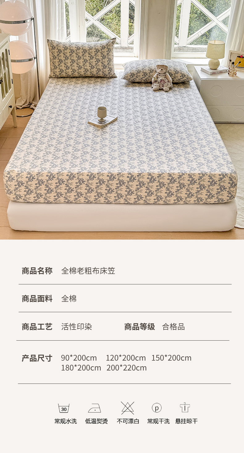 • 91家纺网 家纺一手货源 找家纺 韩巢家纺 2025新款全棉纯棉田园小清新花卉老粗布席子凉席夏季凉席席子床笠款床套 蓝莲花