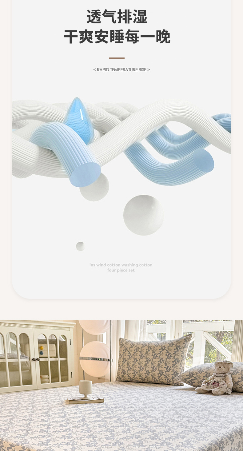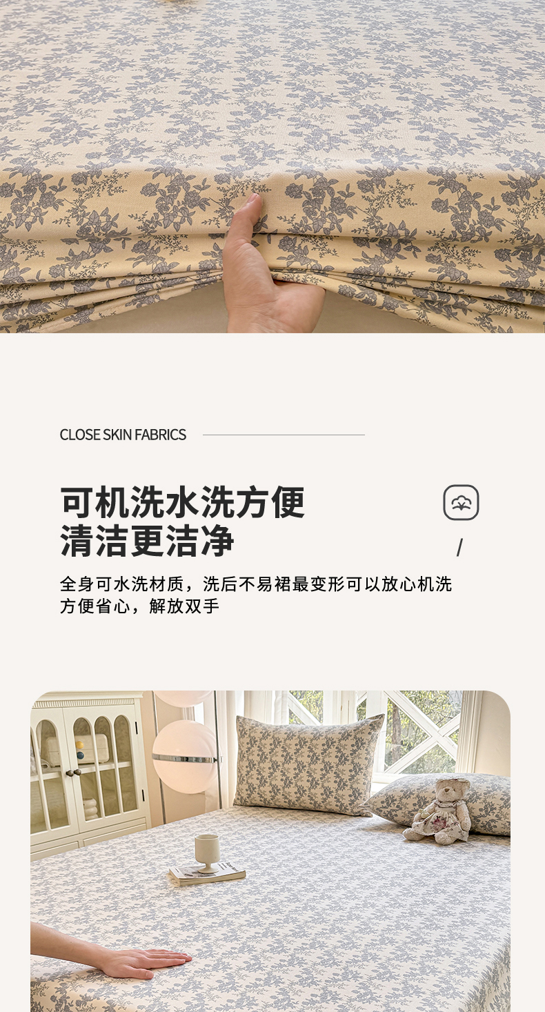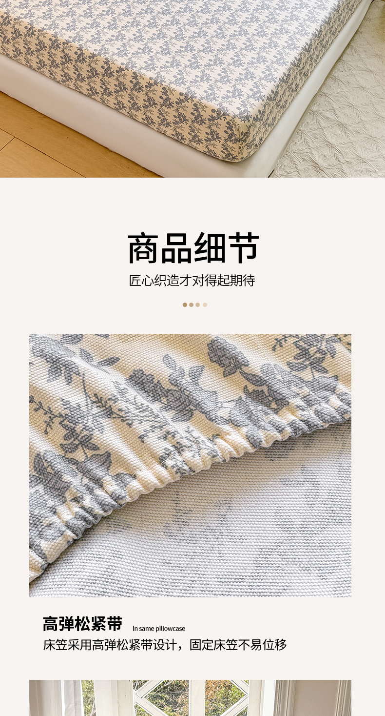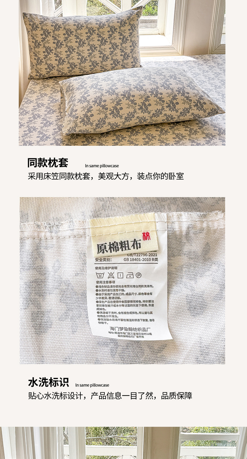 • 91家纺网 家纺一手货源 找家纺 韩巢家纺 2025新款全棉纯棉田园小清新花卉老粗布席子凉席夏季凉席席子床笠款床套 蓝莲花