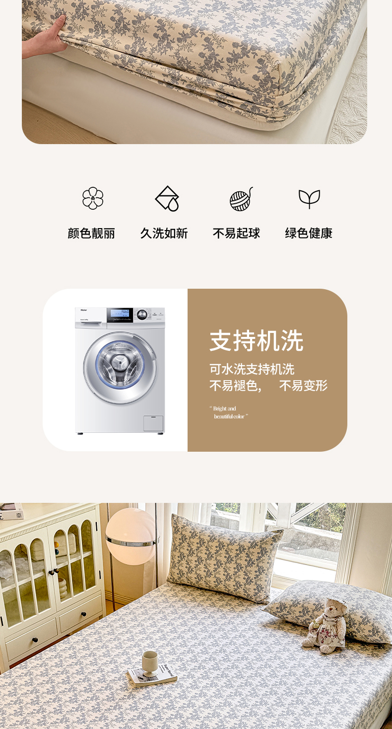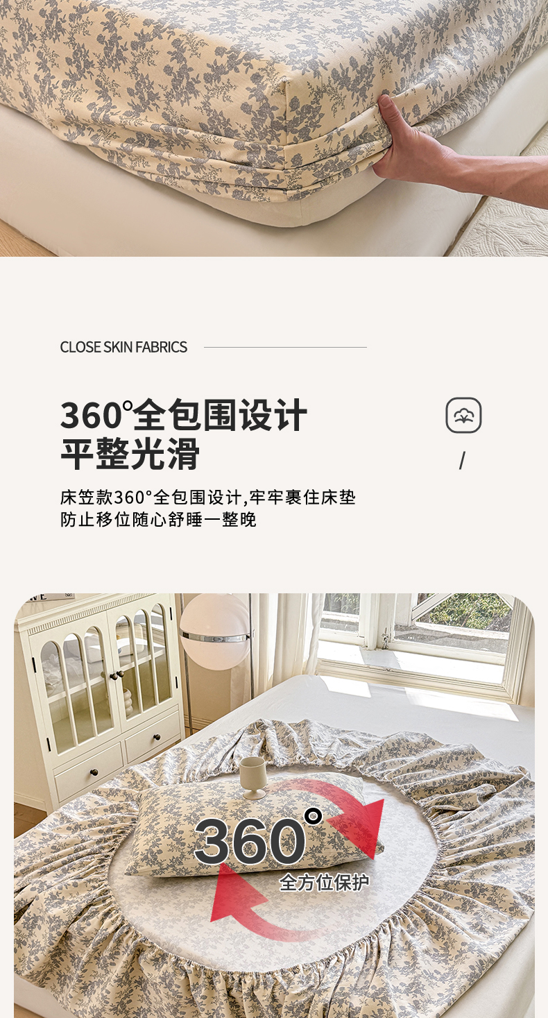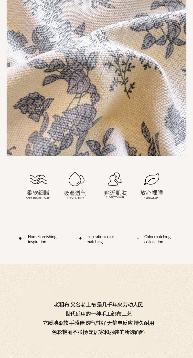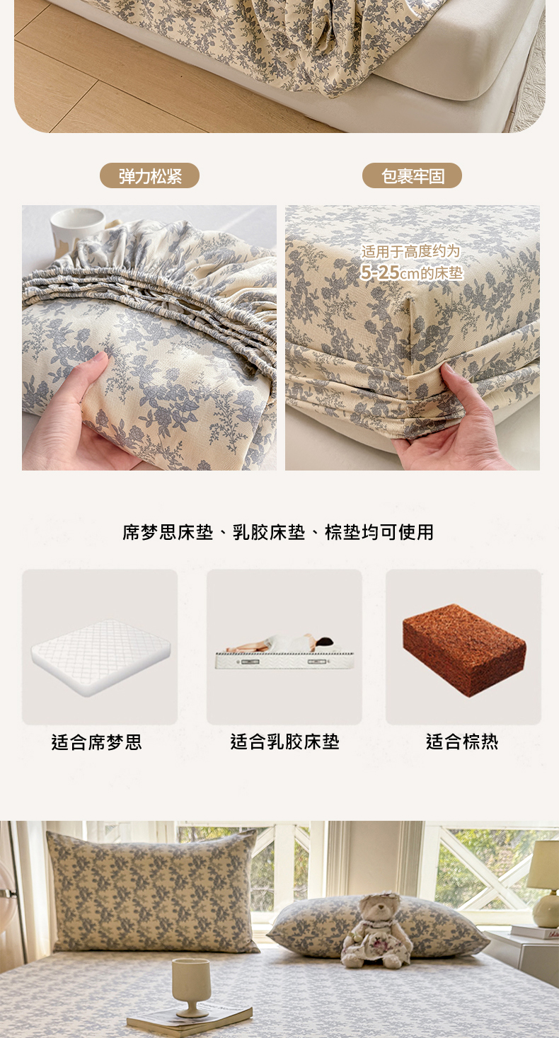 • 91家纺网 家纺一手货源 找家纺 韩巢家纺 2025新款全棉纯棉田园小清新花卉老粗布席子凉席夏季凉席席子床笠款床套 蓝莲花