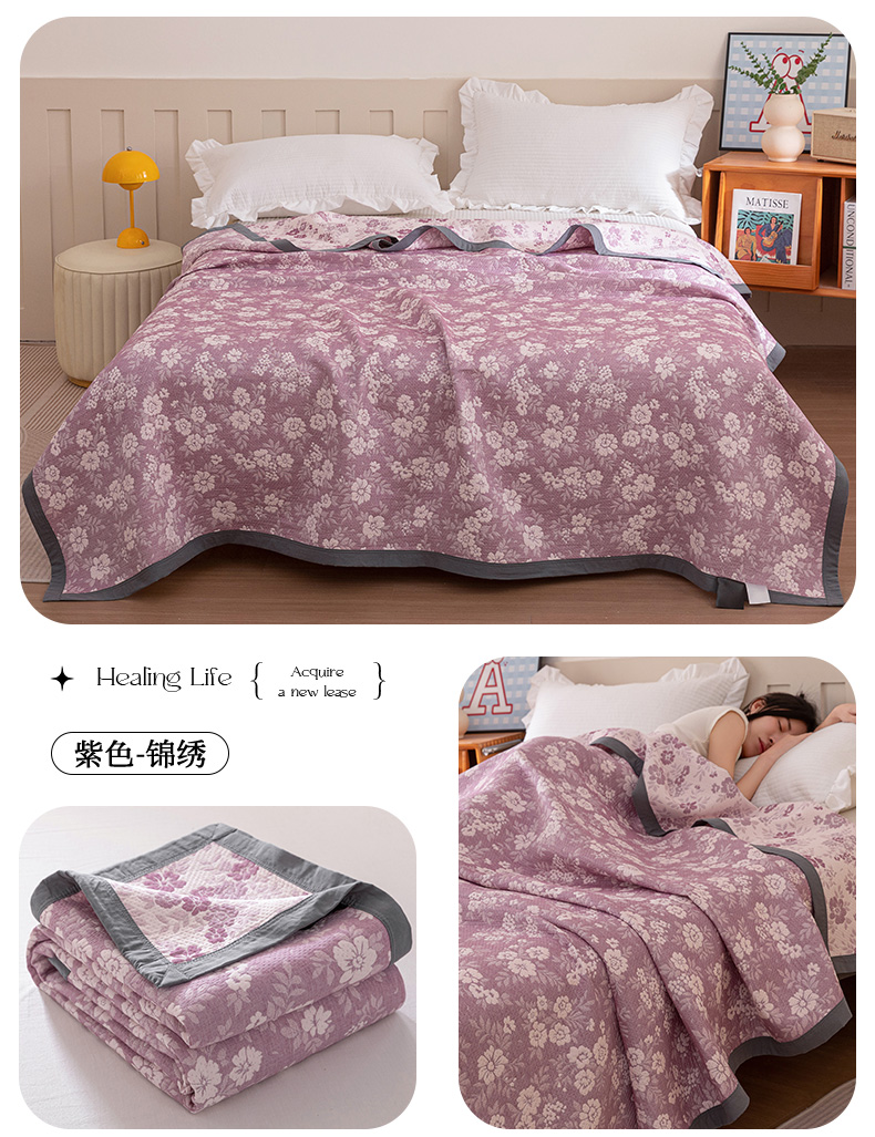 商品名称:2025新款A类纯棉针织三层纱提花多功能毯 紫色-锦绣
