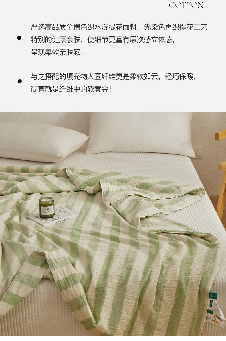 商品名称:蜜柚 2025春夏新品简韵A类全棉纯棉色织水洗提花夏被夏凉被空调被 简韵绿