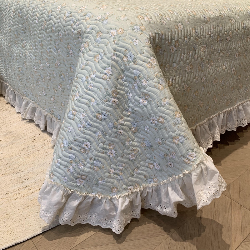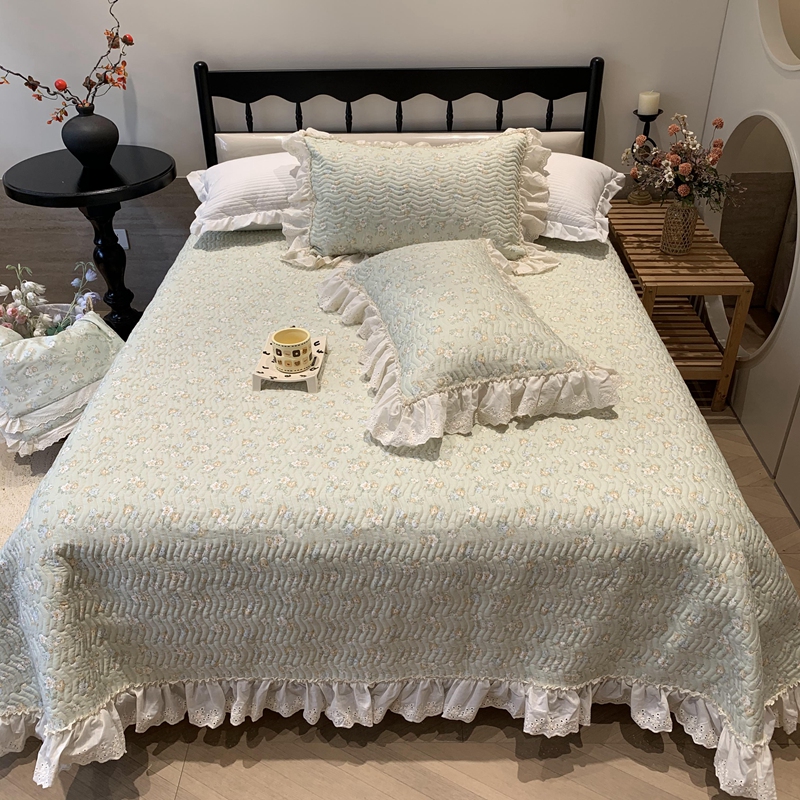 商品名称:奈萝家纺 2025春夏新款全棉纯棉蕾丝花边款床盖三件套 花语绿