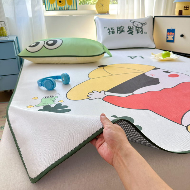 一霖家纺 2025新款大版300D冰藤席席子凉席三件套 快乐小龙