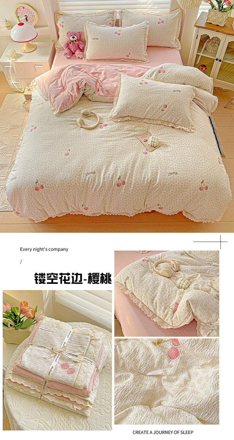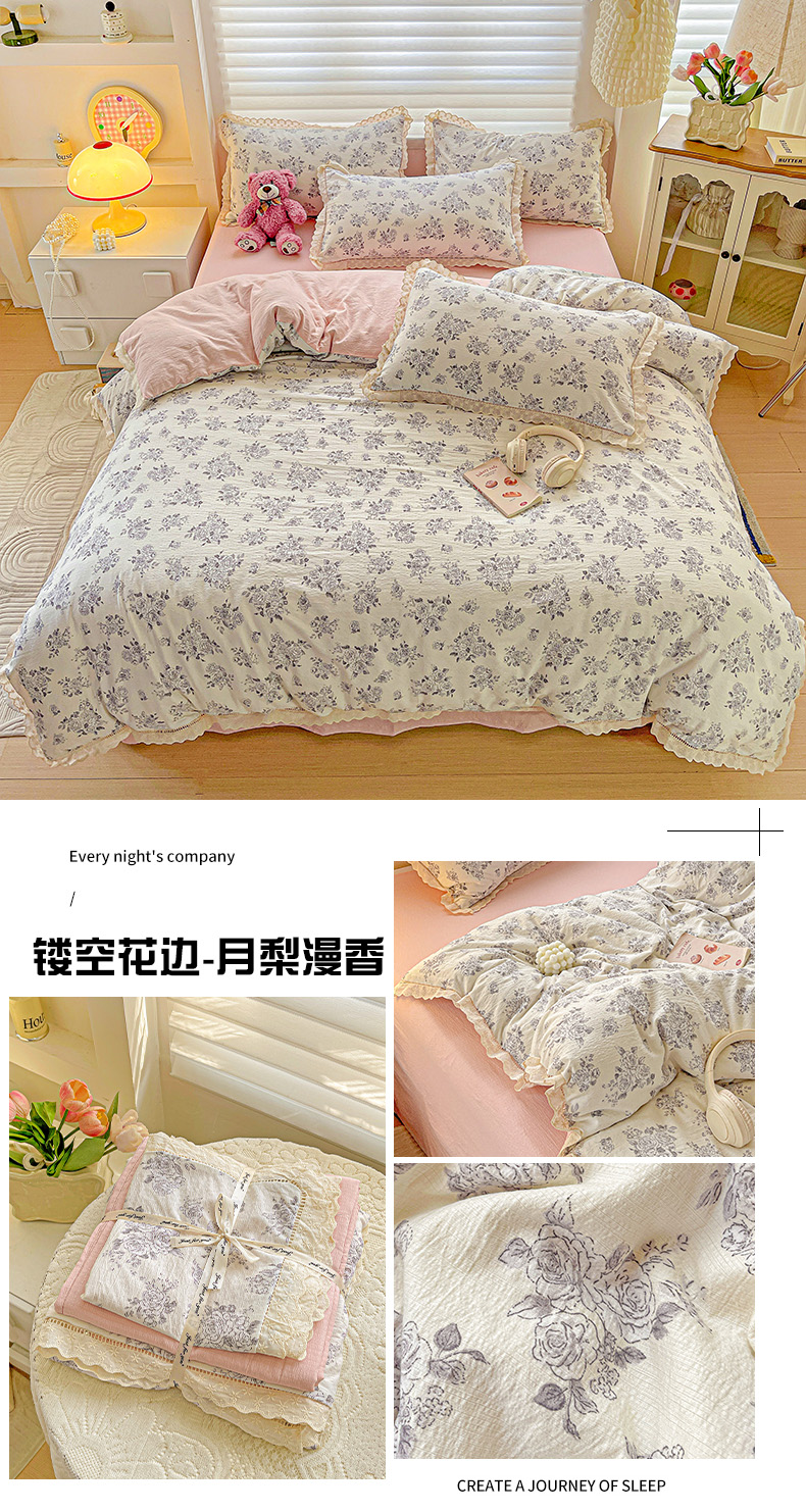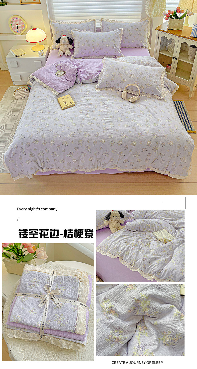 当前位置: 91家纺网 > 商品网购 > 床品套件 > 四件套 > 其它四件套 > 金梦拉家纺 2025新款提花纱布皱皱纱四件套(全棉镂空花边款) 镂空花边-咖调蝴蝶结