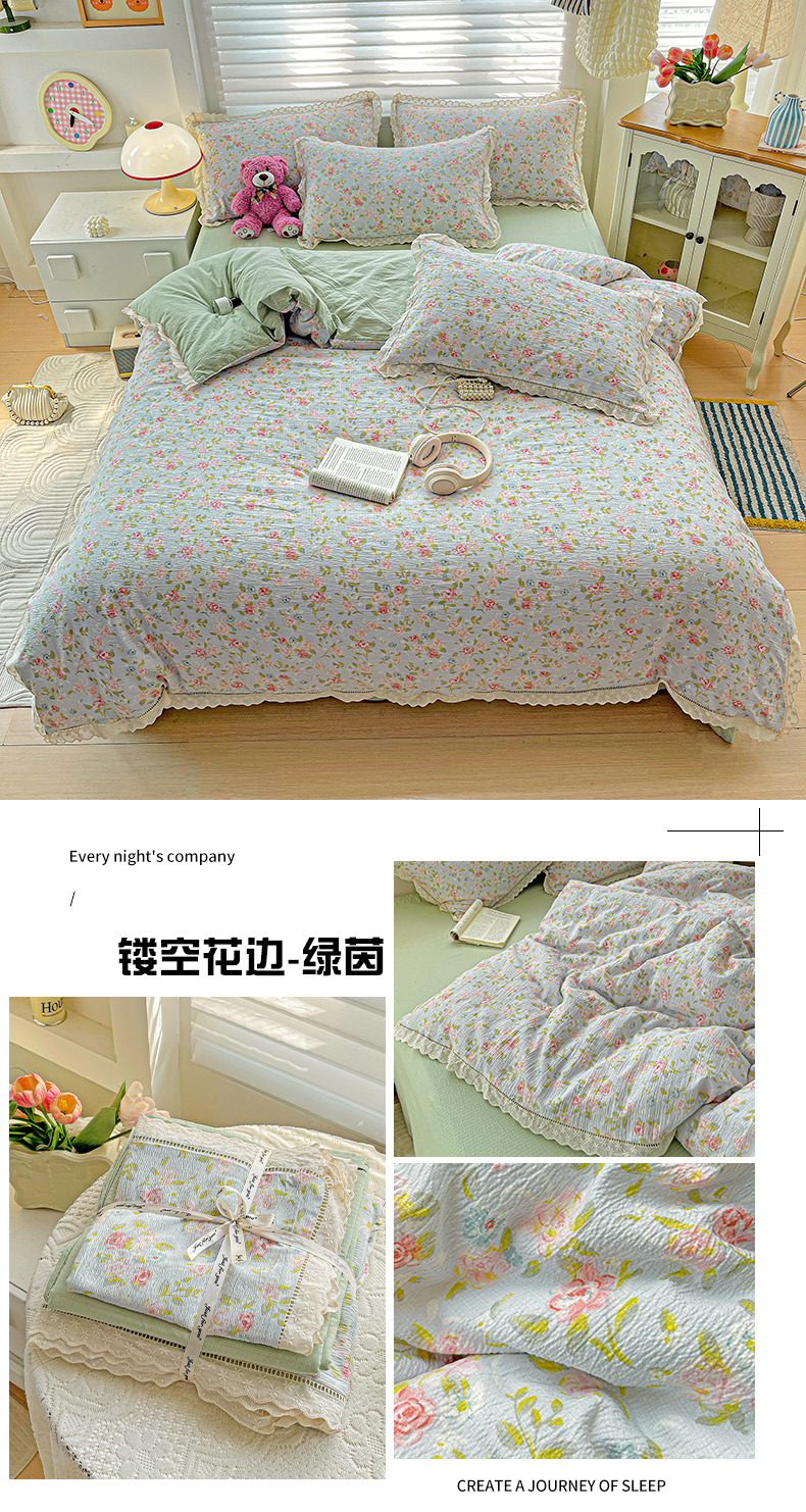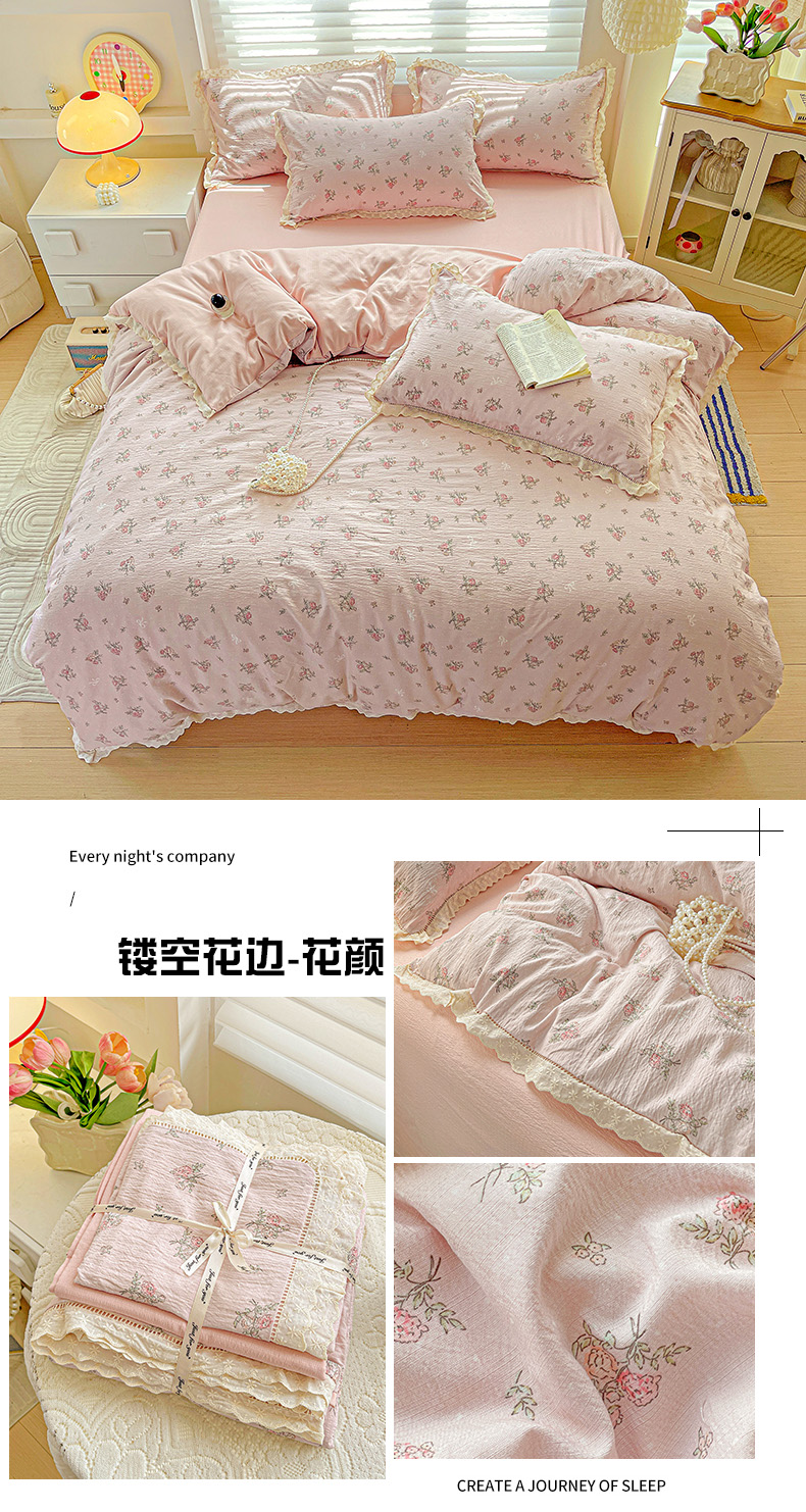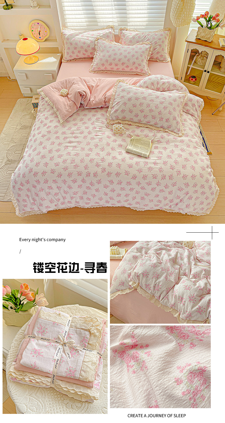 当前位置: 91家纺网 > 商品网购 > 床品套件 > 四件套 > 其它四件套 > 金梦拉家纺 2025新款提花纱布皱皱纱四件套(全棉镂空花边款) 镂空花边-咖调蝴蝶结