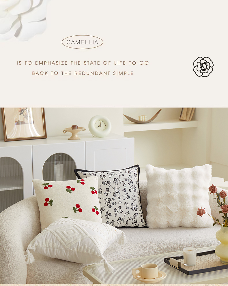 乐坊 2025新款棉麻花式抱枕 蝴蝶结米