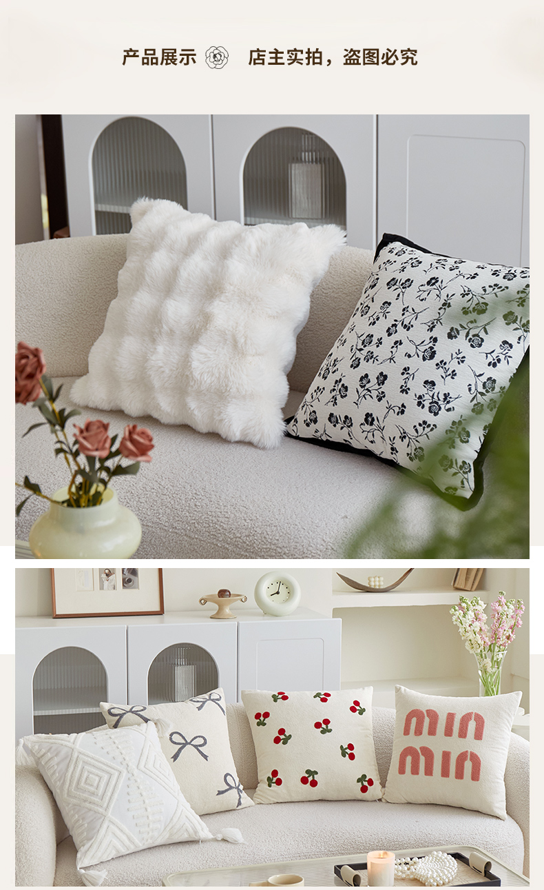 商品名称:乐坊 2025新款棉麻花式抱枕 蝴蝶结米