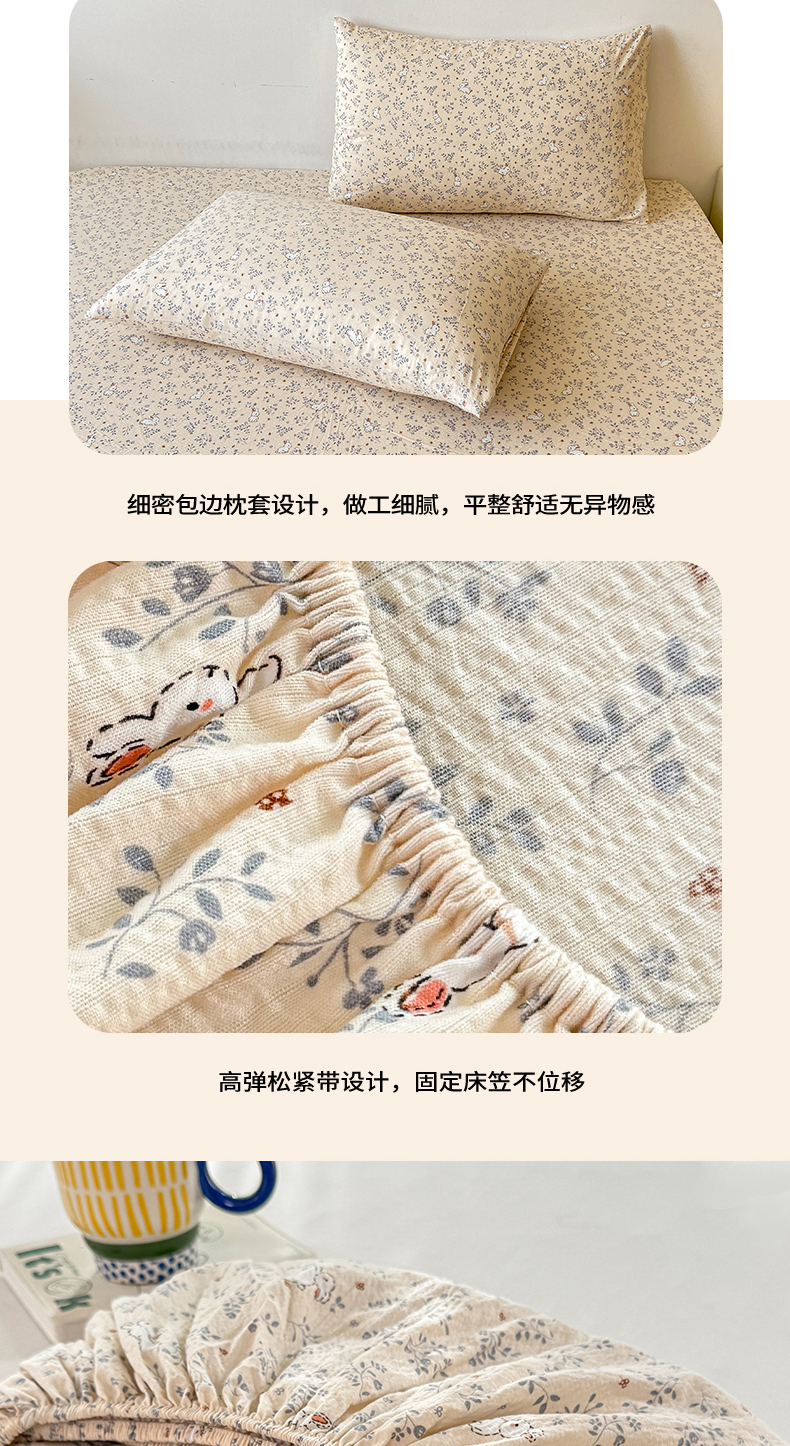 商品名称:仟网汇 2025新款云感棉双层纱床笠 花间兔