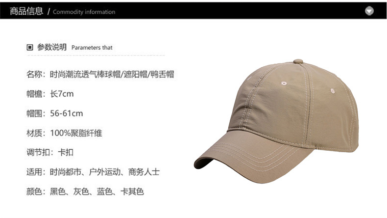 商品名称:良品汇馆 2025新款日式无印速干棒球帽良品情侣男女夏透气户外鸭舌帽防晒遮阳休闲帽 藏青色