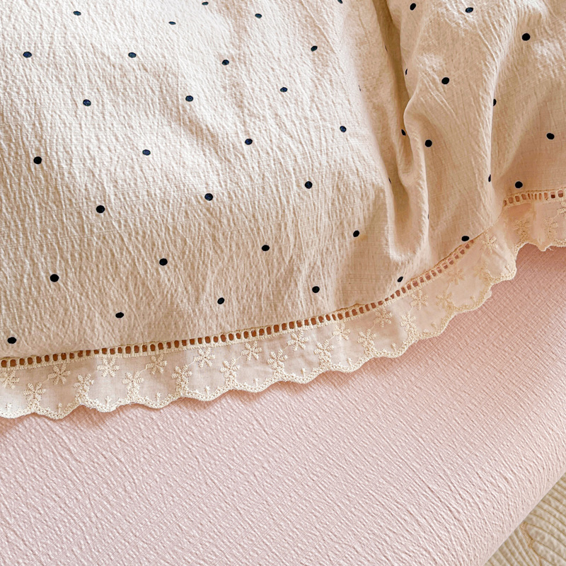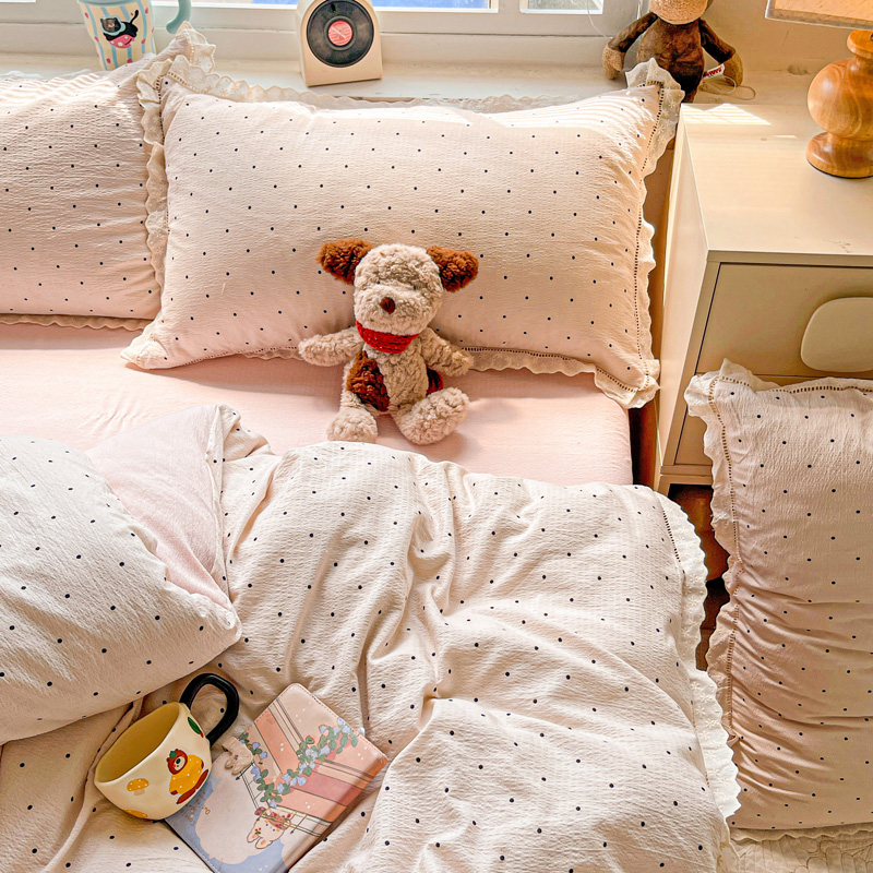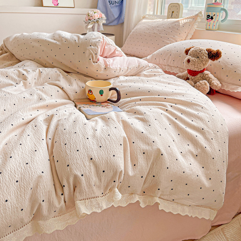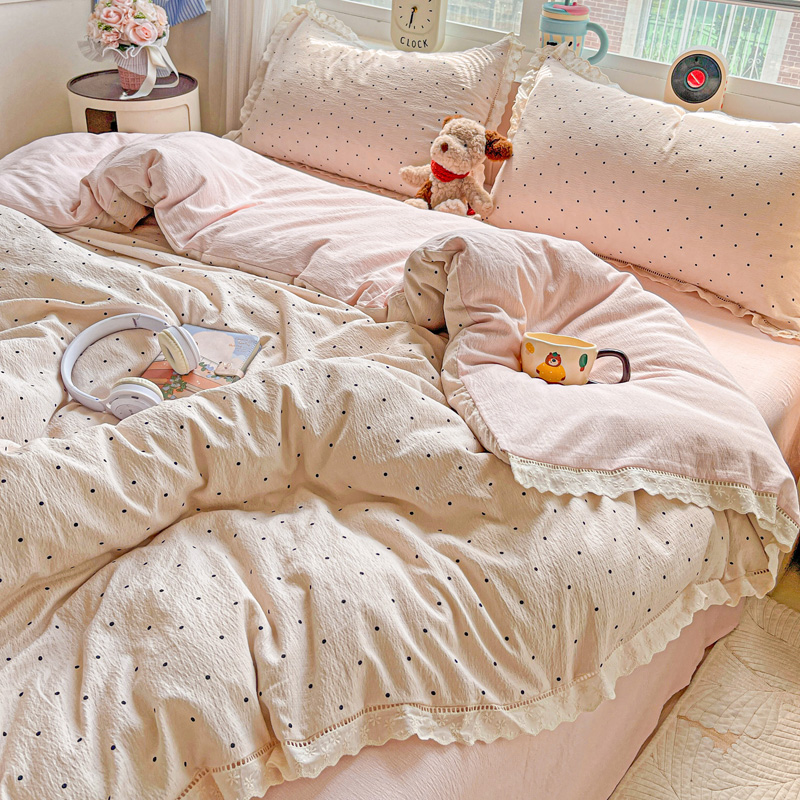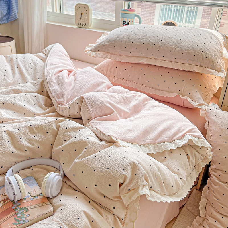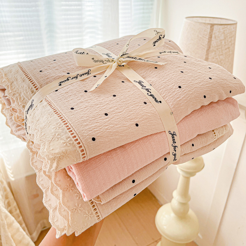 商品名称:仟网汇 2025新款云感皱皱双层纱全棉花边四件套 初恋