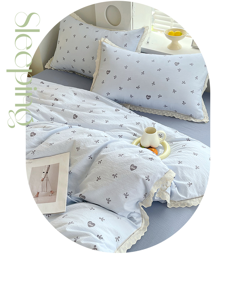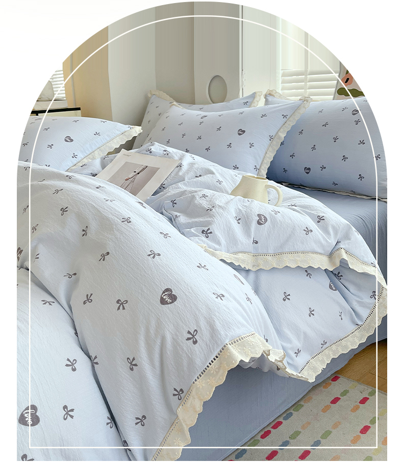 雨彤家纺 2025新款A类高克重云感皱皱双层纱全棉镂空花边款法式四件套-床拍图 悦枝