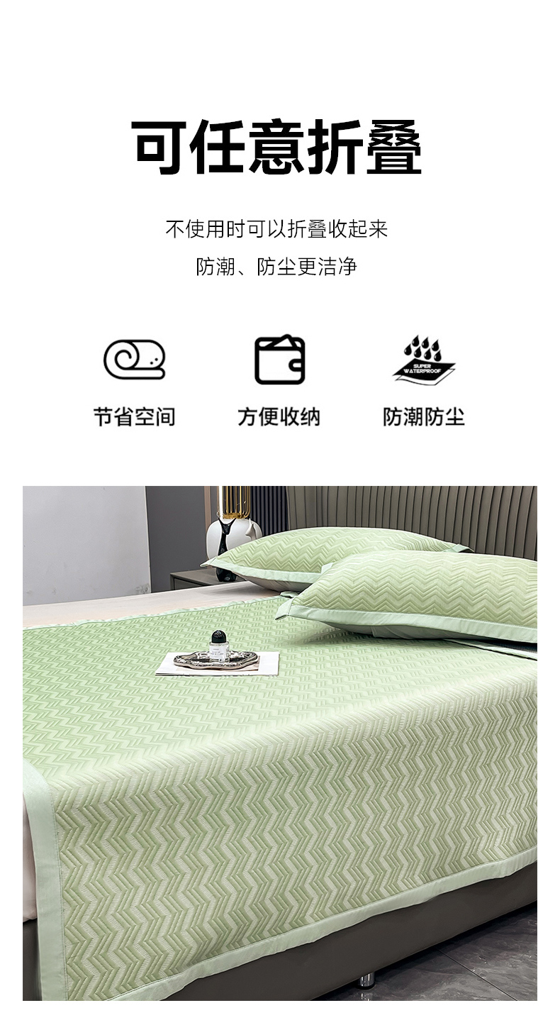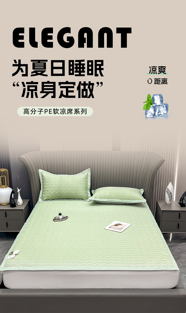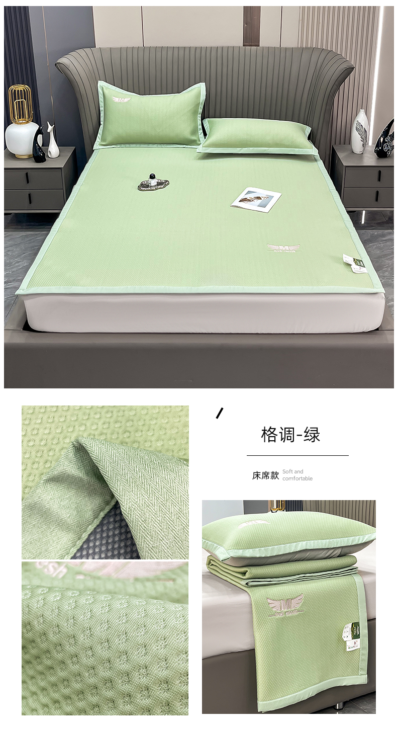 瑞兴纺 2025新款高分子PE软凉席绣花款床单款 床单款-风尚-绿
