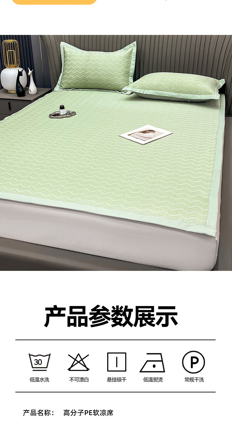 商品名称:瑞兴纺 2025新款高分子PE软凉席绣花款床单款 床单款-风尚-绿