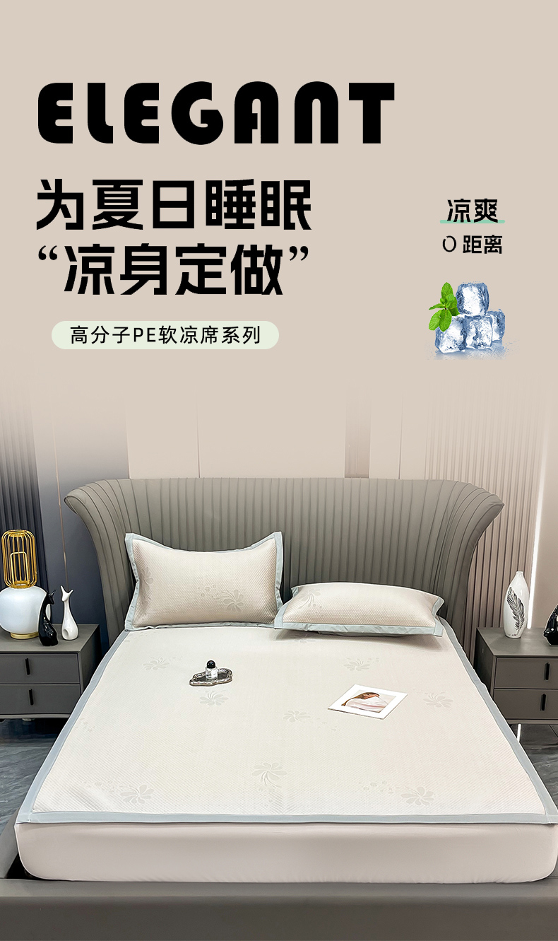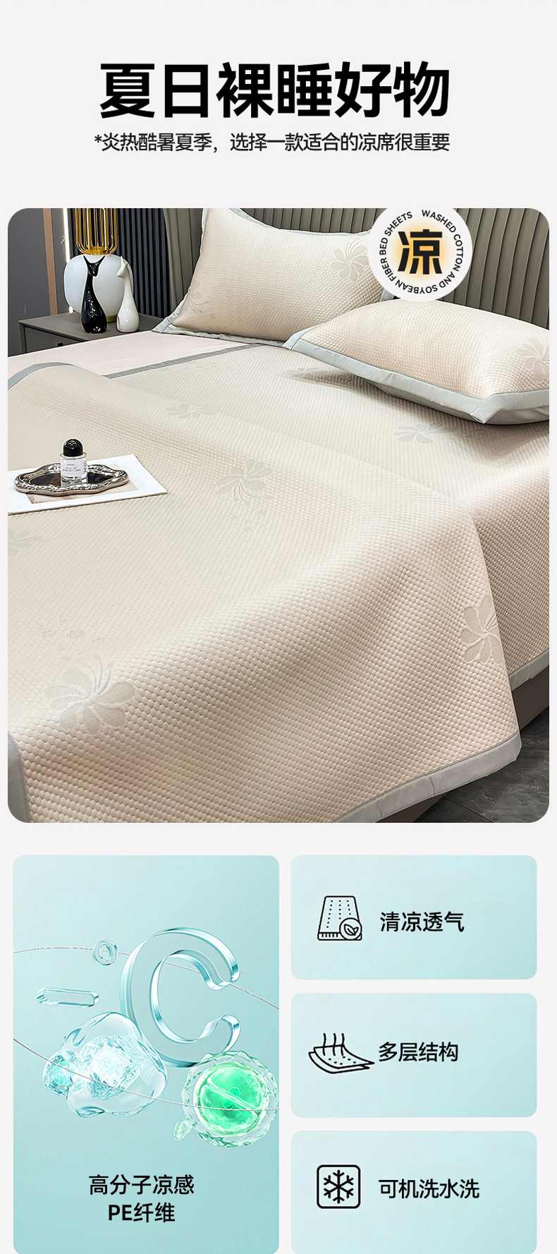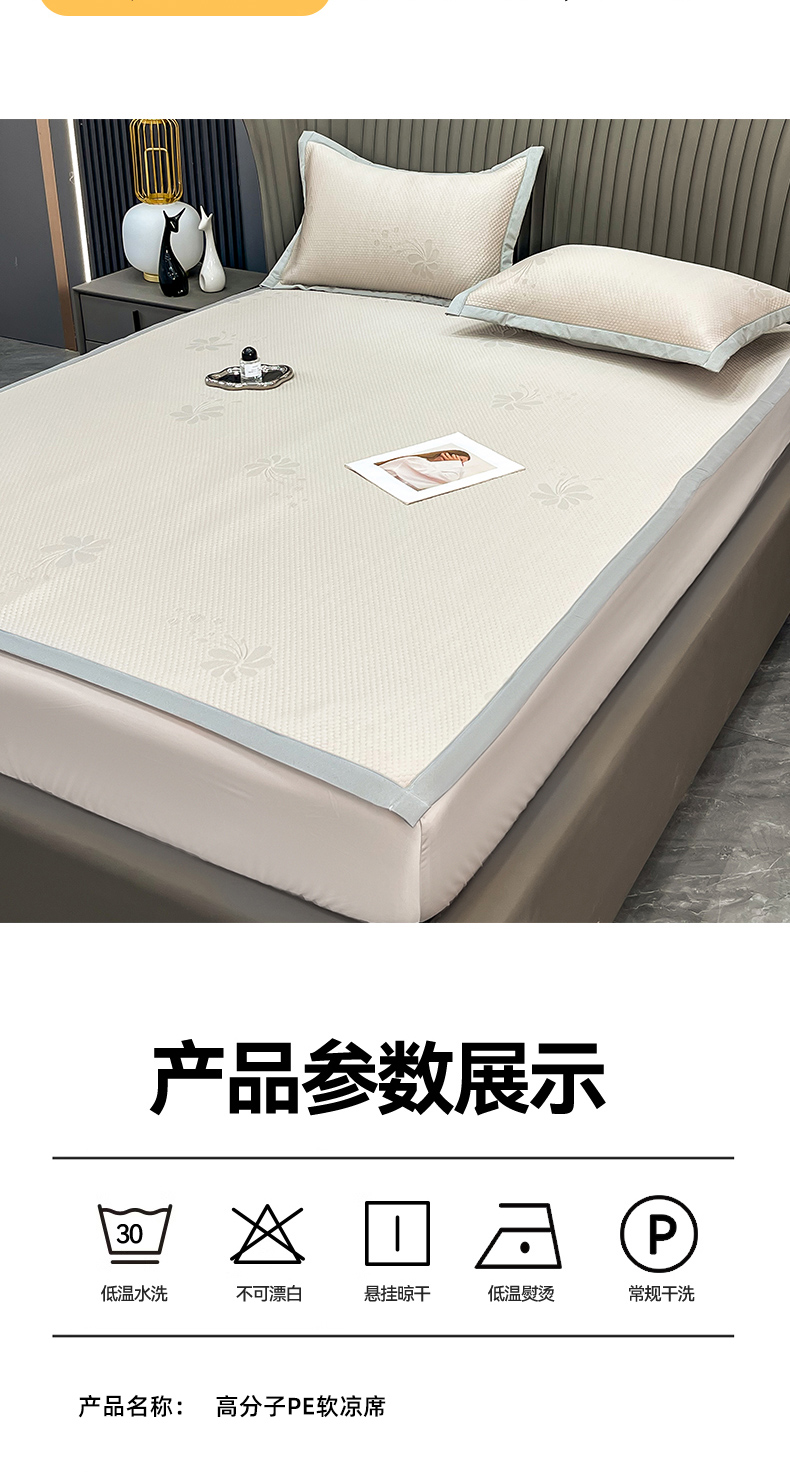 瑞兴纺 2025新款高分子PE软凉席绣花款床单款 床单款-花之语-奶白