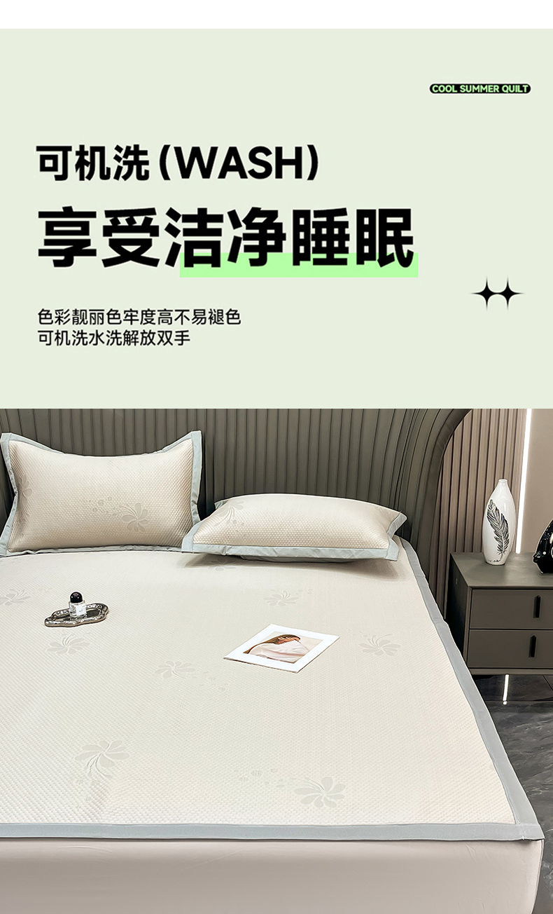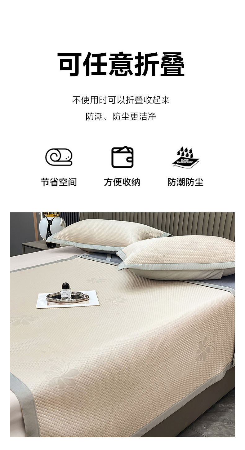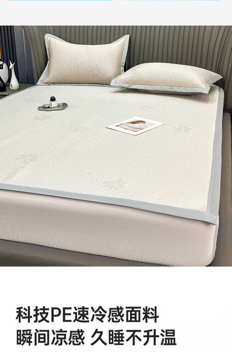 • 91家纺网 家纺一手货源 找家纺 瑞兴纺 2025新款高分子PE软凉席绣花款床单款 床单款-花之语-奶白